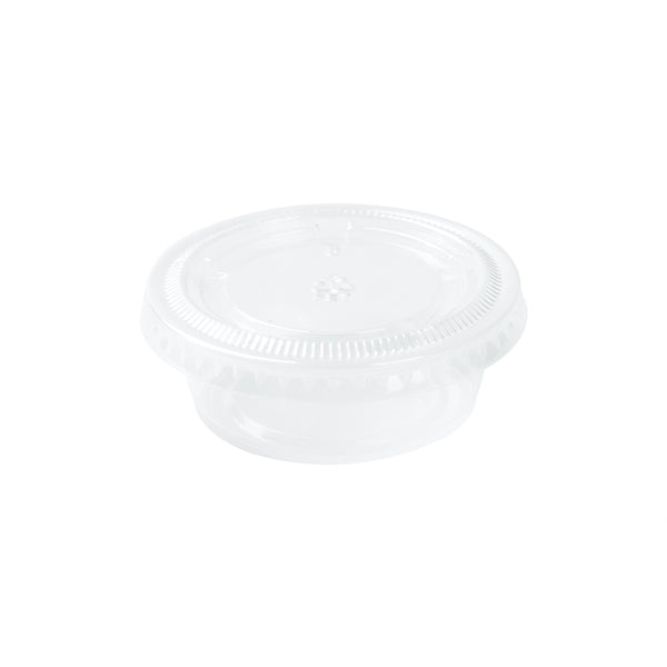 ROUND CLEAR PLASTIC PORTION CUP LID - FITS 1.5, 2, AND 2.5 OZ