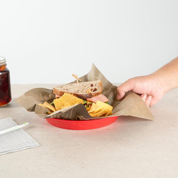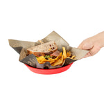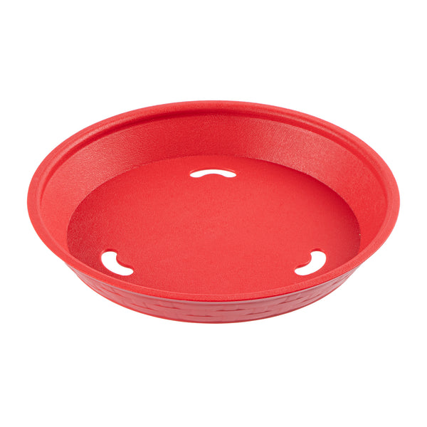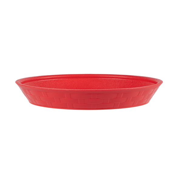 Elevate your food presentation with our Chef 101 Round Red Plastic Diner Platters, seamless for showcasing everything from fried foods to appetizers with style. These versatile food platters are made from durable plastic, providing a lightweight yet sturdy option for serving wings, sandwiches, and more. Featuring built-in drain holes, these serving trays ensure efficient post-wash drying by avoiding water pooling. With their microwave-secure construction, these reusable platters allow for quick reheating of meals without transferring to another dish. Their dishwasher-secure design offers a time-saving cleanup process, making these plastic platters apt for busy foodservice settings. Thanks to their stackable nature, these diner platters offer space-saving storage and easy portability, enhancing convenience in any kitchen setup. Measuring 8.94 inches in diameter by 1.18 inches in height, each platter is perfectly sized for various dishes. Sold in a 10 count box.