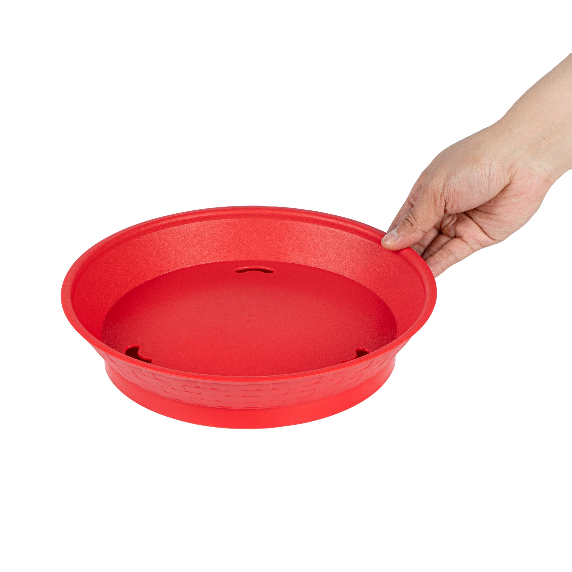 ROUND RED PLASTIC DINER PLATTER - WITH BASE