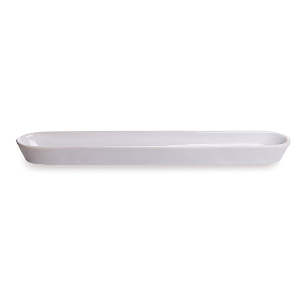Put together an unforgettable appetizer platter with this minimalist-inspired Chef 101 Porcelain Siluro Olive Plate. Featuring a uniquely narrow shape with sleek, raised sides, this olive tray adds a touch of modern elegance to any setting. This bright white porcelain plate instantly enhances the presentation of marinated olives, aged cheeses, herbed mushrooms, and other antipasti options. Constructed from premium porcelain, this olive appetizer tray is built to be long-lasting, chip-resistant, and easy to clean. Each 10 oz olive plate measures 12 inches in length by 1.5 inches in width. Shipped in a 1 count box.