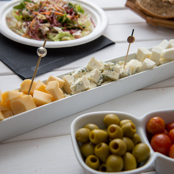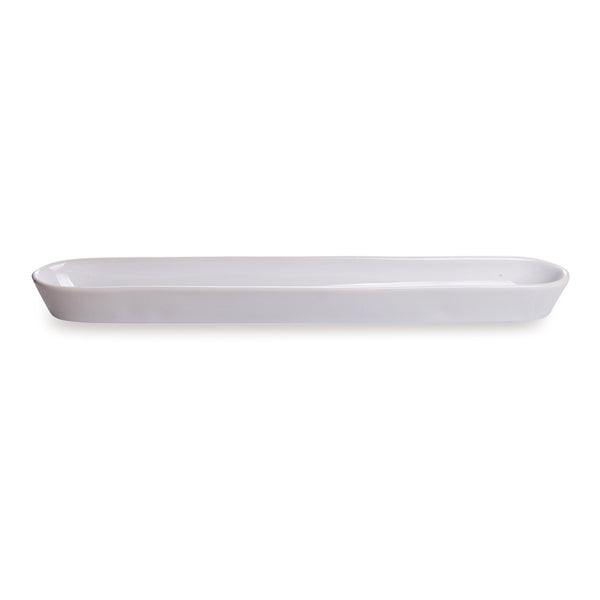 Bring a touch of modern elegance to your appetizer trays with our Chef 101 best-selling Porcelain Siluro Olive Plate. Featuring a uniquely narrow shape with a sleek, rounded design, this olive serving dish is ideal for presenting herbed olives, marinated artichoke hearts, aged cheeses, and other antipasti. The bright white porcelain finish provides a striking contrast against your ingredients, while the raised sides ensure easy and mess-free service. Crafted from premium porcelain, this olive dish is built to be long-lasting, chip-resistant, and easy to clean. Each of these unique 14-ounce olive plates measures 16.3 inches in length by 2.2 inches in width. Shipped in a 1 count box.