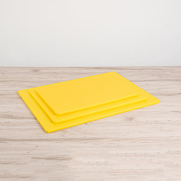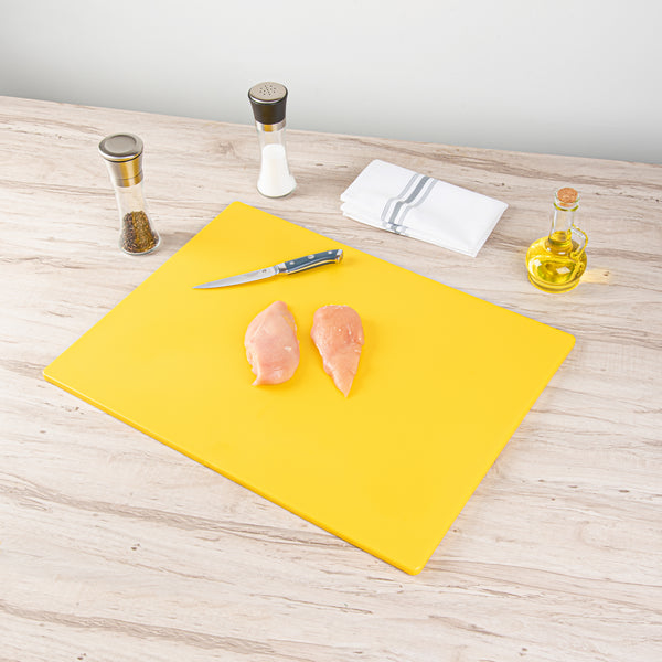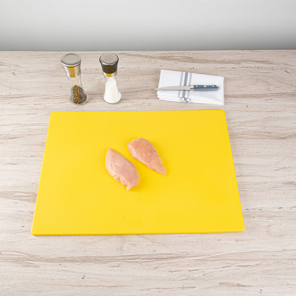 These color-coded cutting boards establish a system of assigning red to raw meats, green to fruits and vegetables, and yellow to poultry significantly increases cleanliness and enables the kitchen staff to quickly identify and use the correct board for each food type. These cutting boards come in different colors to comply with the HACCP standards.