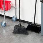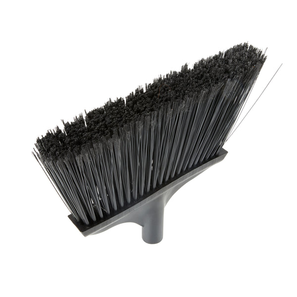 Effortlessly maintain cleanliness in your commercial space with our Clean Tek Profesional 13 3/4-inch Black Plastic Wide Angled Broom Head. Designed with a wide angled head, this push broom head allows for efficient sweeping of large areas while easily maneuvering around obstacles and corners. Pair this black broom head with compatible handle (SKU: RWT1883B) for an enhanced cleaning performance. This heavy-duty push broom head is equipped with flagged bristles that effectively capture fine dust and debris, ensuring a thorough clean on both smooth and textured surfaces. The plastic block of this broom head is crafted for durability and stability, securely holding the bristles and enhancing the broom's overall performance. Ideal for use in commercial and foodservice environments, this versatile dust broom head provides unmatched coverage and cleaning efficiency. Measuring 13.78 inches in length by 9.65 inches in width by 1.58 inches in height, this angled broom head is perfect for any heavy-duty cleaning task. Sold in a 1 count box. Handle is available and sold separately.