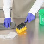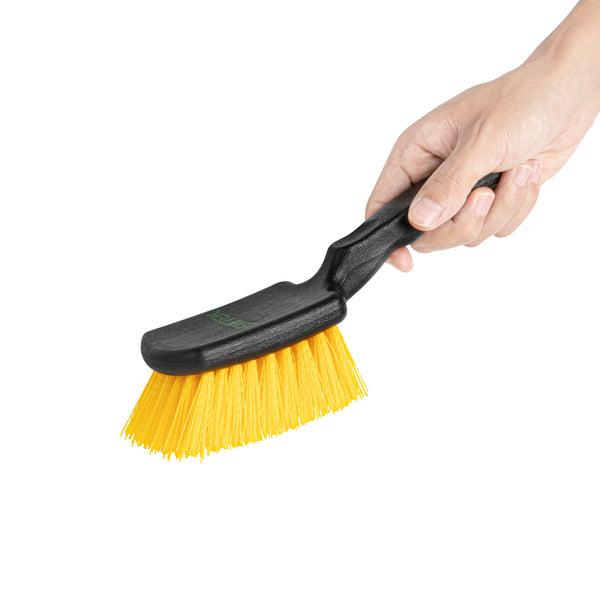 Enhance your cleaning routine with our Clean Tek Professional 10 1/4-inch Black Plastic Utility Scrub Brush. This versatile scrub brush features plastic bristles that effectively clean tires, trash cans, buckets, siding, and window frames, making it an essential tool for any car cleaning brush collection. For added comfort, the ergonomic handle of this cleaning brush provides a comfortable grip, significantly reducing hand fatigue during extended use. With a hanging hole, this car brush facilitates convenient storage, keeping your space organized and the brush easily accessible. The durable plastic body of this wheel brush ensures long-lasting performance, even with frequent use. With a striking contrast between the yellow bristles and black body, this car cleaning brush enhances visibility, allowing you to easily see and target dirt and grime on your car's surfaces. Measuring 10.24 inches in length by 3.15 inches in width by 2.56 inches in height, this brush is designed for efficiency and precision in your cleaning tasks. Sold in a 1 count box.