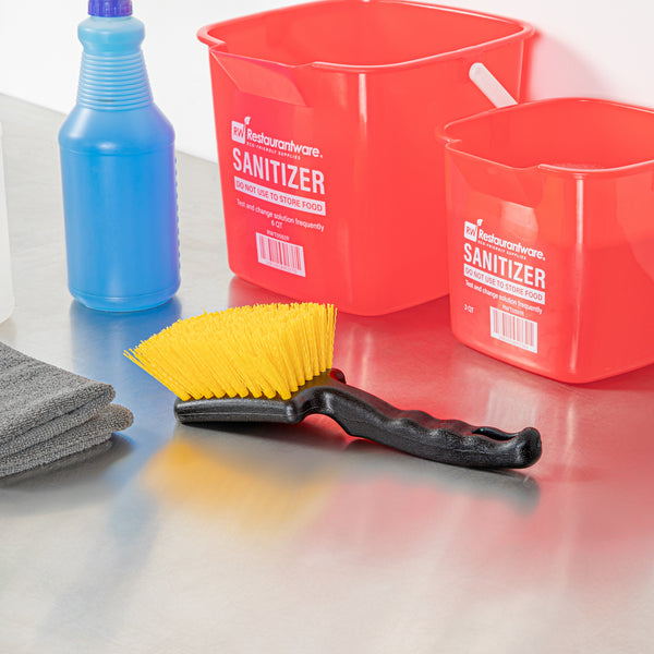 10 1/4" BLACK PLASTIC UTILITY SCRUB BRUSH - WITH YELLOW BRISTLES