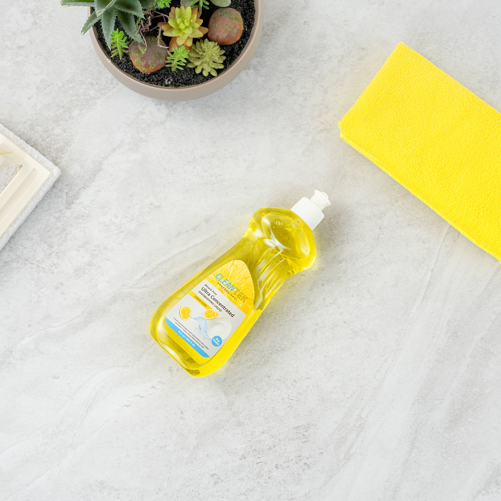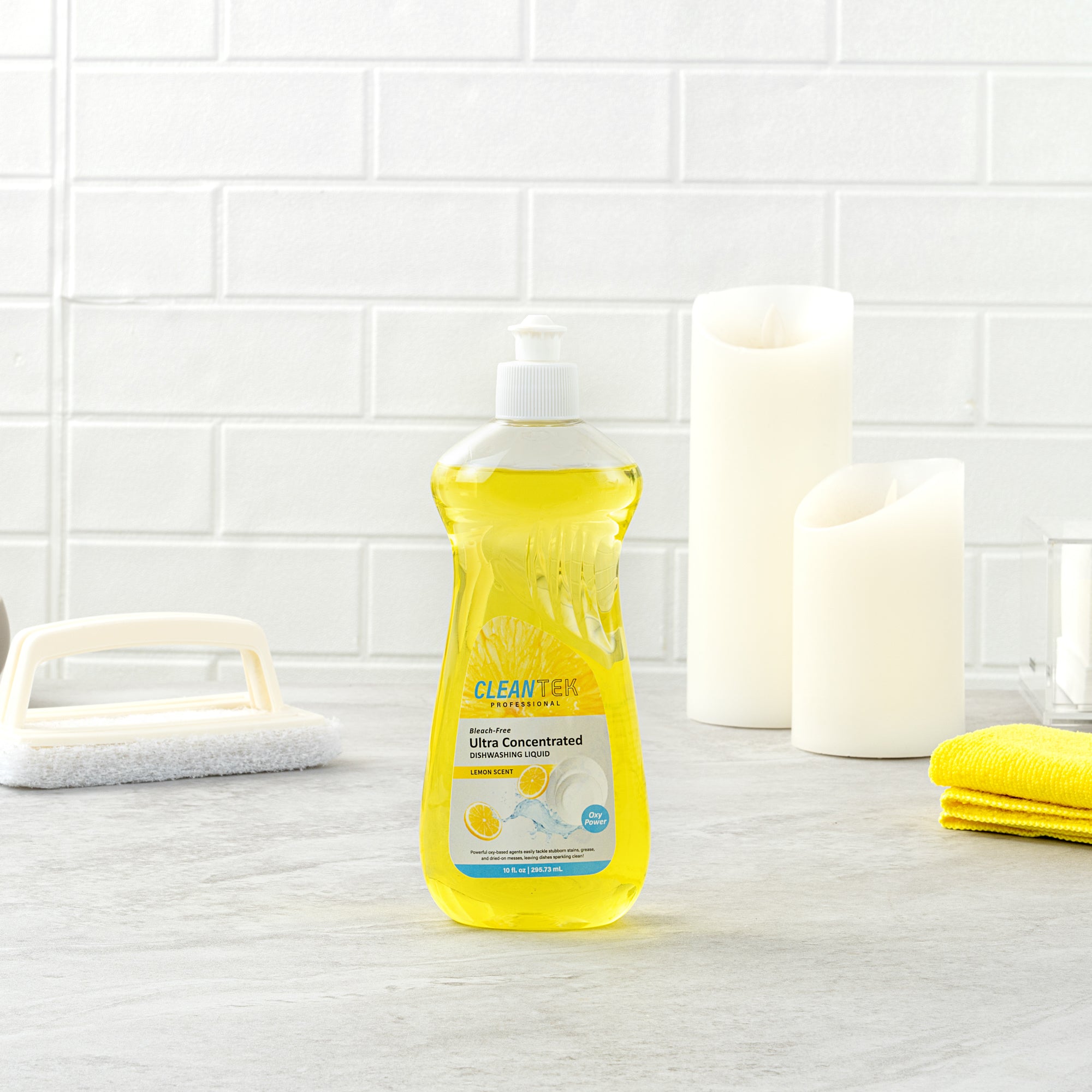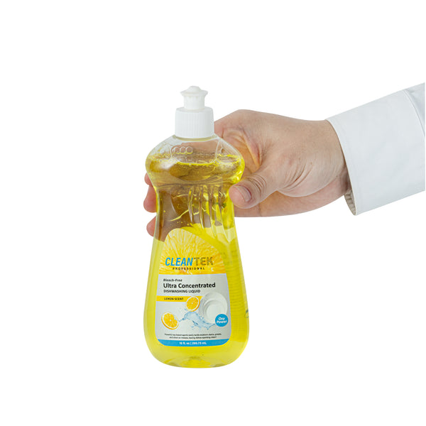 Ensure spotless dishes with every wash. Clean Tek Ultra-Concentrated Dish Soap harnesses a powerful formula that minimizes dish soap usage while maximizing cleaning efficiency, resulting in significant cost savings for foodservice operations. The OXY Power Technology embedded in the liquid dishwashing detergent efficiently breaks down stubborn grease and stains, ensuring that your kitchenware gleams after each use. Infused with a refreshing lemon scent, this lemon scented dish soap leaves dishes with a pleasant aroma, enhancing the overall dining experience for your patrons. Packaged in compact 10-fluid-ounce bottles, each soap measures 2.8 inches in length, 1.6 inches in width, and 7.7 inches in height, making it ideal for easy storage. With quick rinsing capabilities, this cleaning solution accelerates dishwashing processes in bustling kitchens, allowing for smooth and uninterrupted service. Each order includes 1 Clean Tek Ultra-Concentrated Dish Soap.