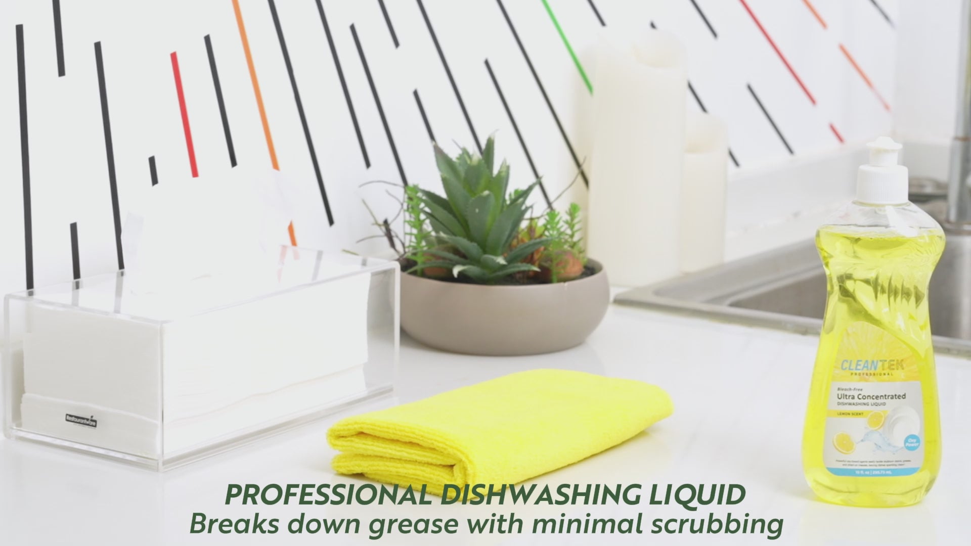 - Quick rinsing formula speeds up kitchen cleanup