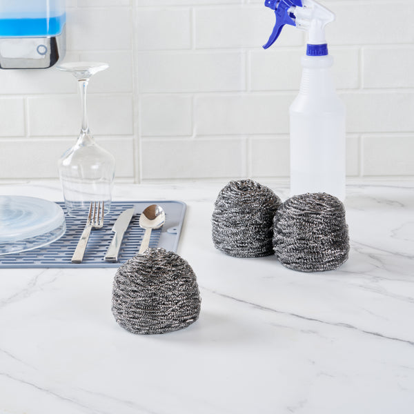 Maintain pristine cookware with minimal effort using our Clean Tek Professional Heavy-Duty Stainless Steel Scrubber. Constructed from stainless steel, this scrubber's rust-resistant design ensures long-lasting durability in professional kitchens. Measuring 3.5 inches in diameter and 2.4 inches in height, this stainless steel scrubber delivers exceptional performance in removing baked-on food from cookware without leaving scratches. Its secure grip design improves efficiency during heavy scrubbing tasks, making it an essential metal cleaning pad for demanding kitchen environments. With a robust 100-gram weight, it withstands hot water and cleaning chemicals, allowing reliable use in high-volume settings. Ideal for cleaning pots, pans, grills, and ovens, it supports commercial kitchen operations by enhancing overall hygiene. Sold in a 10 count box.
