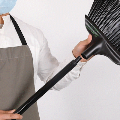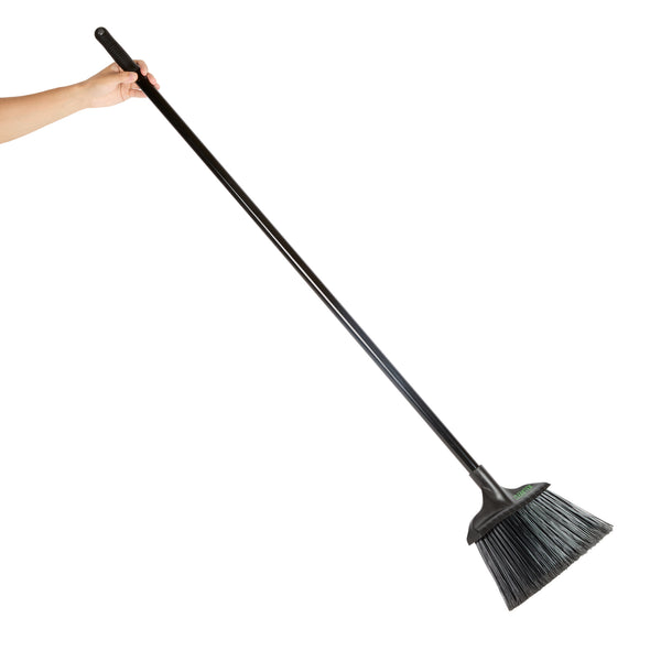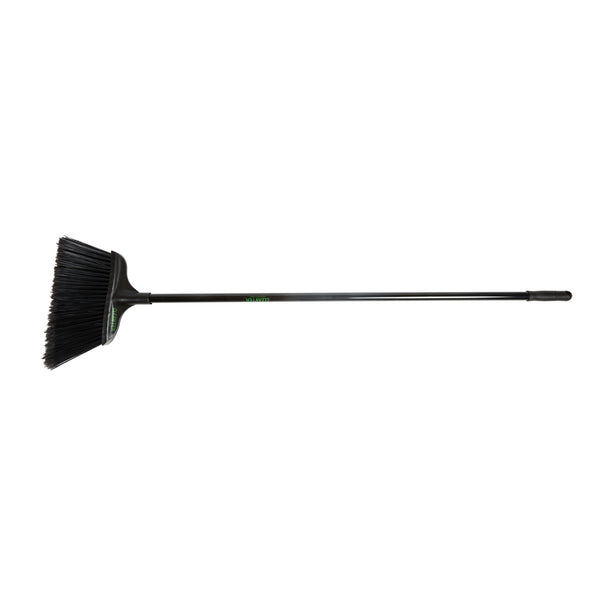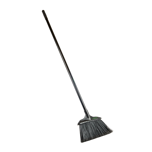 13 3/4" BLACK PLASTIC WIDE ANGLED BROOM - FLAGGED BRISTLES, 48" HANDLE