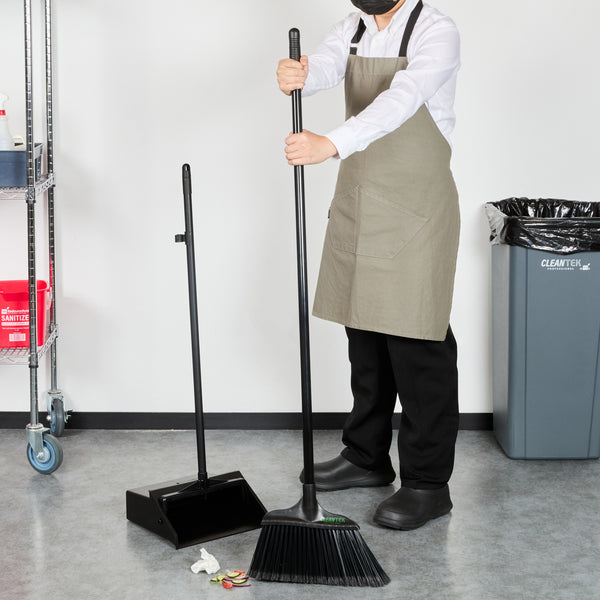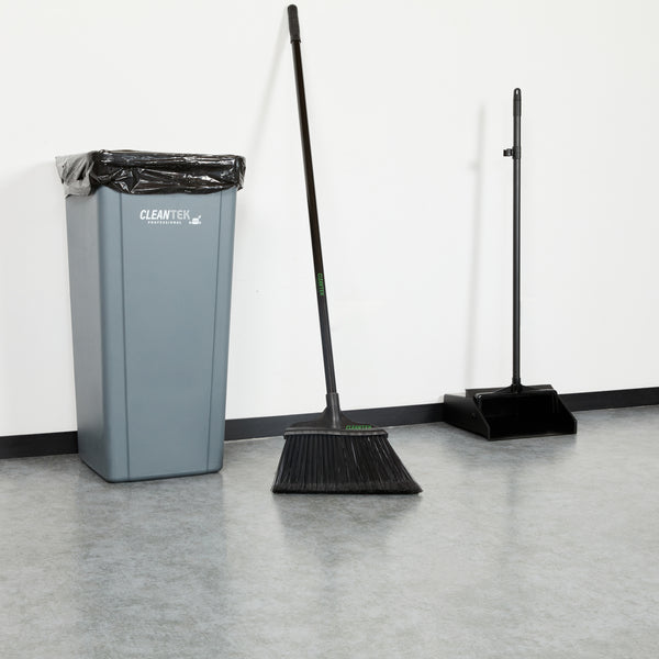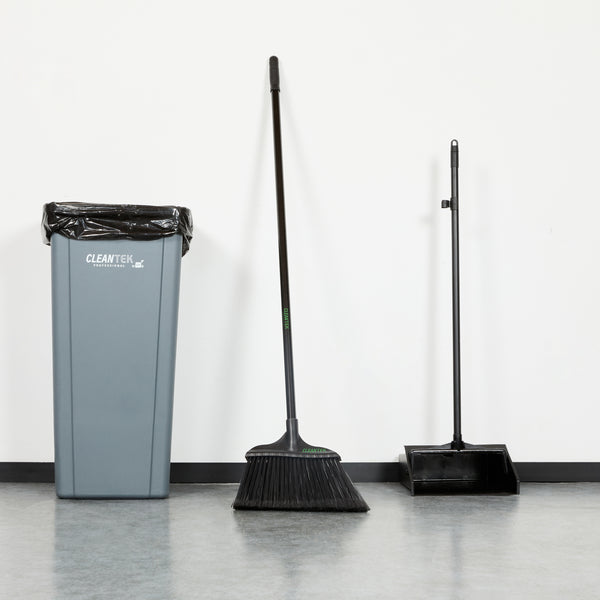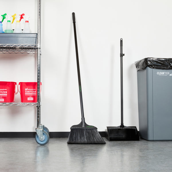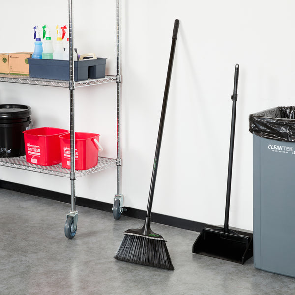 Elevate your cleaning routine with our Clean Tek Professional 13 3/4-inch Black Plastic Wide Angled Broom. This commercial broom features a wide angled head, enabling efficient sweeping of large areas while easily maneuvering around obstacles and corners. Equipped with flagged bristles, this sweeping broom captures fine dust and debris effectively, ensuring a thorough clean on both smooth and textured surfaces. The 48-inch metal handle of this angled broom offers durability and a comfortable grip, providing effective control and ease of use during sweeping tasks. Designed for durability and stability, the plastic block of this push broom securely holds the bristles, enhancing the broom's overall performance. This industrial broom is versatile and makes it ideal for use in commercial and foodservice environments, offering both reliability and efficiency. Measuring 56.69 inches in length by 13.78 inches in width by 1.58 inches in height, these push brooms are perfect for tackling various cleaning tasks. Sold in a 1 count box.