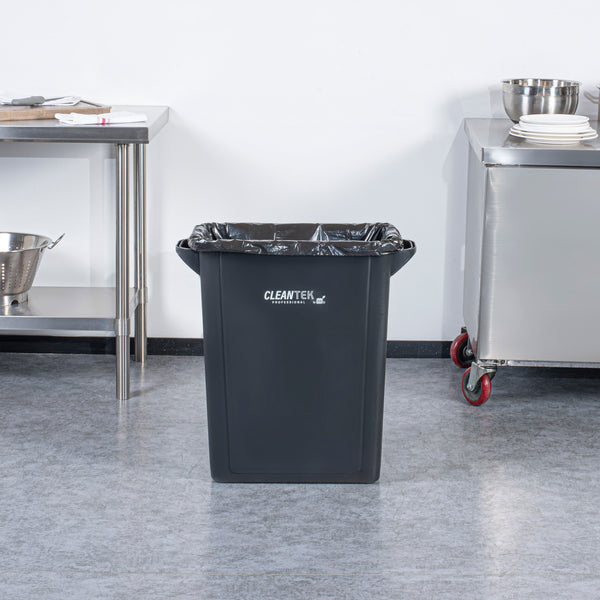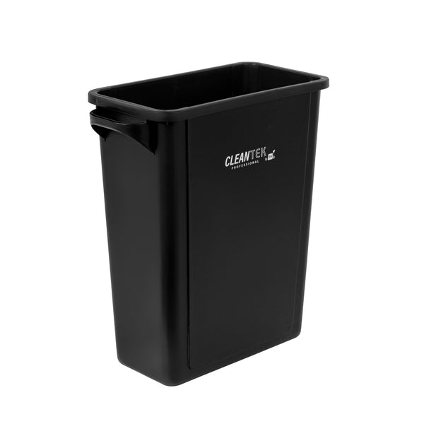 Elevate waste management at your establishment with our Clean Tek Professional 15-gallon Rectangle Black Plastic Slim Trash Can. This plastic bin features built-in side handles for easy lifting and maneuverability during waste disposal. Slim by design, this trash can fits seamlessly between furniture or equipment, making it perfect for high-traffic areas with limited space. Created from premium plastic, this garbage bin is durable and withstands heavy-duty use in any foodservice setting. With a 15-gallon capacity, this garbage can provides ample room for everyday waste while still being compact enough for smaller spaces. The classic black color of this outdoor trash can blends effortlessly with most decor styles. Measuring 24.02 inches in length by 10.75 inches in width by 24.72 inches in height, this trash bin can hold up to 15 gallons and is designed to maximize space efficiency. Sold in a 1 count box.