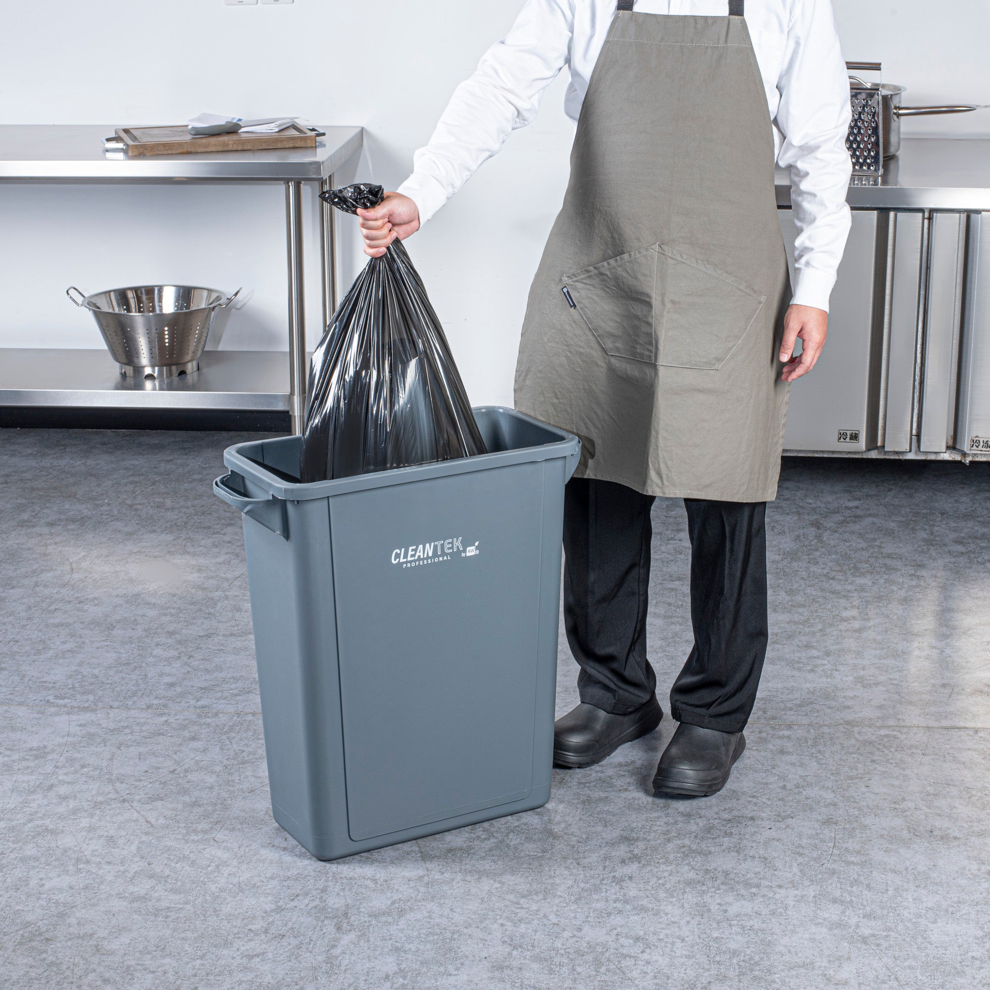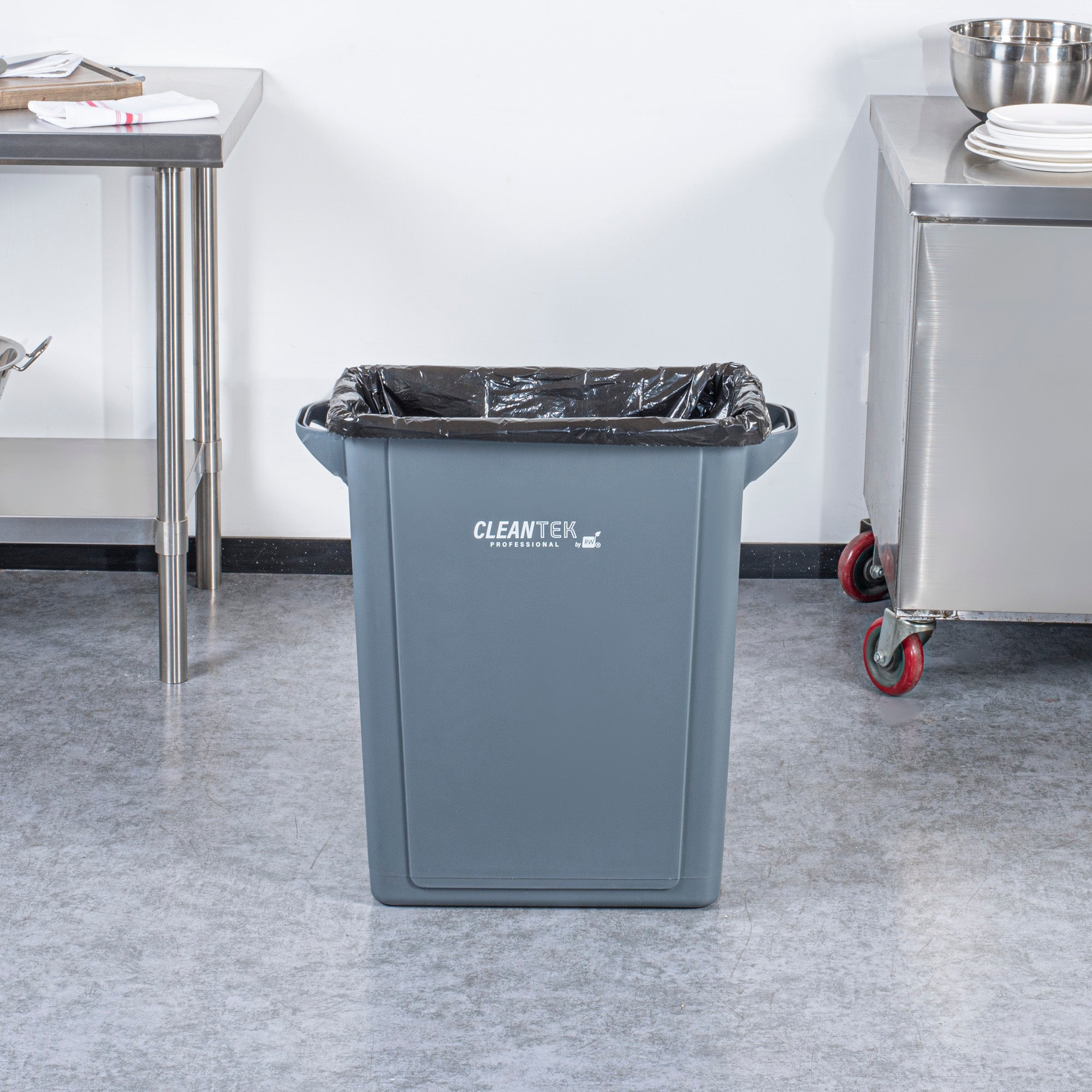 Optimize your waste management with our Clean Tek Professional 15-gallon Rectangle Gray Plastic Slim Trash Can. Featuring built-in side handles, this plastic bin ensures easy lifting and maneuverability for convenient waste disposal. With its slim design, this plastic trash can fits effortlessly between furniture or equipment, making it perfect for high-traffic areas with limited space. Crafted from premium plastic, this trash can is durable and withstands heavy-duty use at your foodservice establishment. Boasting a 15-gallon capacity, this garbage can provides ample room for everyday waste while remaining compact enough for smaller spaces. The classic gray color of this garbage bin blends seamlessly with most decor, enhancing the aesthetics of your environment. Measuring 24.02 inches in length by 10.75 inches in width by 24.72 inches in height, this outdoor trash can has a capacity of 15 gallons and is designed to maximize space efficiency. Sold in a 1 count box.