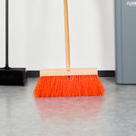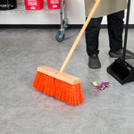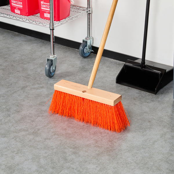 Enjoy robust cleaning power with our Clean Tek Professional 16-inch Hardwood Street / Push Broom Head. Equipped with unflagged bristles, this heavy-duty push broom head is perfect for sweeping up large debris and tough grime from rough surfaces. Pair this broom head with compatible handle (SKU: RWT1864T) for a robust cleaning performance. The plastic block of this push broom head includes two handle attachments, allowing you to easily swap sides if the bristles wear unevenly. Ideal for both wet and dry cleaning, this wide broom head efficiently handles a variety of debris and liquids with its versatile bristle design. Measuring 15.95 inches in length by 3.54 inches in width by 7.28 inches in height, this dust broom head is perfectly sized for all your sweeping needs. Sold in a 1 count box. Handle is available and sold separately.