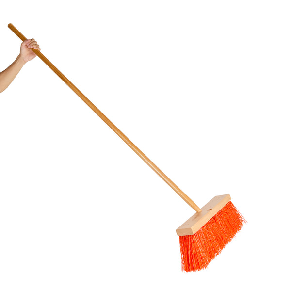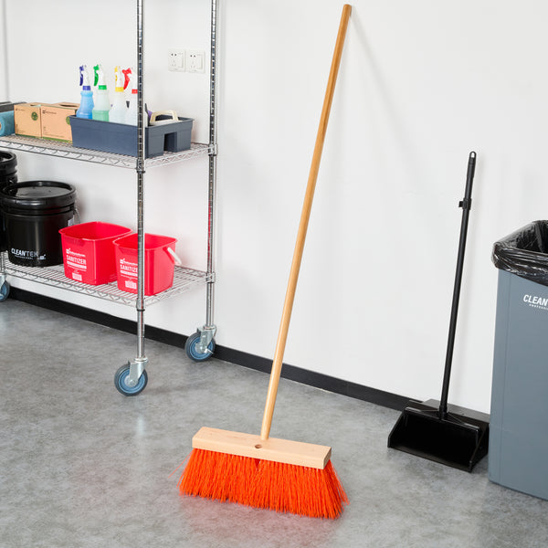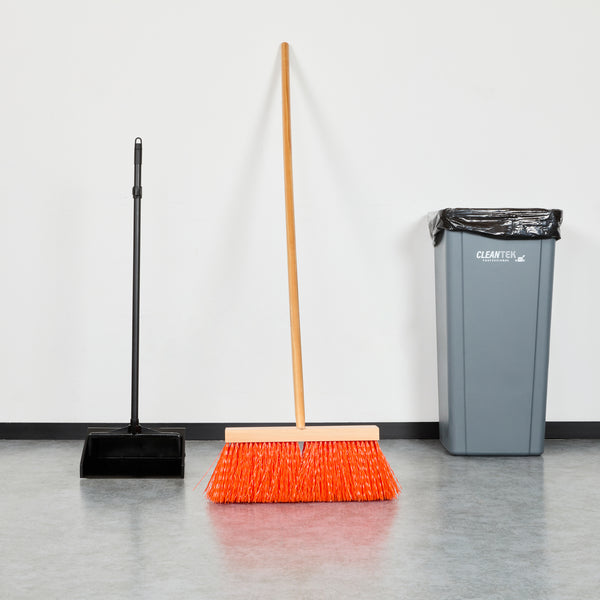 Elevate your cleaning efficiency with our Clean Tek Professional 16-inch Street / Push Broom, designed for rigorous outdoor use. This heavy-duty broom features unflagged bristles that tackle large debris and tough grime on rough surfaces. Equipped with a plastic block, this street broom includes two handle attachments, allowing you to swap sides if bristles wear unevenly. The 60-inch wooden handle of this cleaning broom offers extended reach and maneuverability, making it easy to access and clean large or hard-to-reach areas. With an ergonomic design, this push broom reduces hand fatigue during prolonged use, ensuring a comfortable sweeping experience. Built with a robust wood block, this sweeper broom provides a stable base for the bristles and ensures long-lasting performance. Ideal for both wet and dry cleaning, the versatile bristle design of this broomstick efficiently handles various types of debris and liquids. Measuring 64.96 inches in length by 15.95 inches in width by 3.54 inches in height, this dust broom is perfect for large-scale cleaning tasks. Sold in a 1 count box.