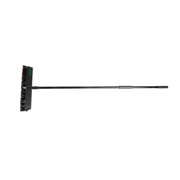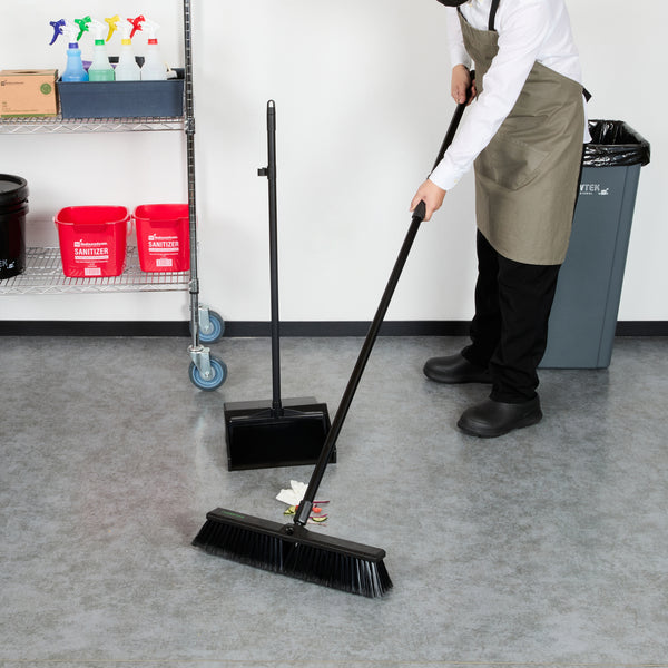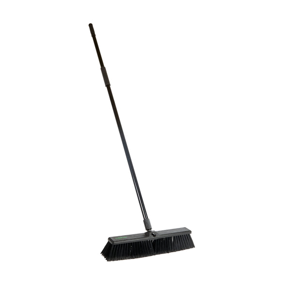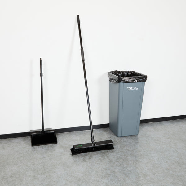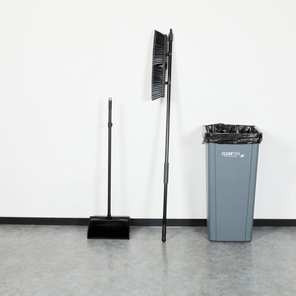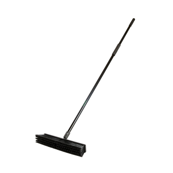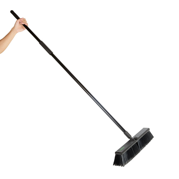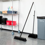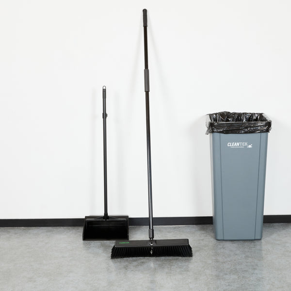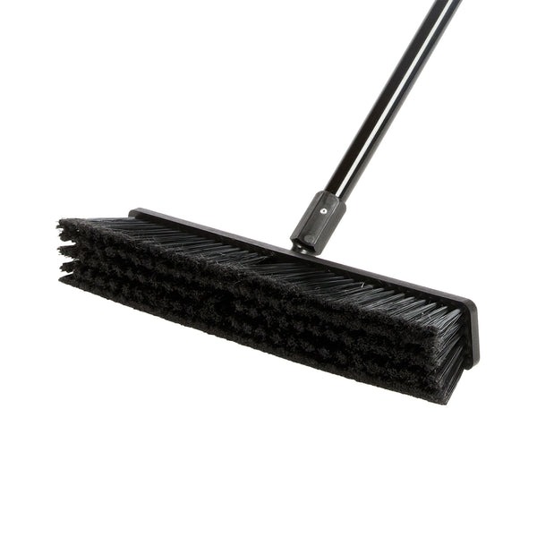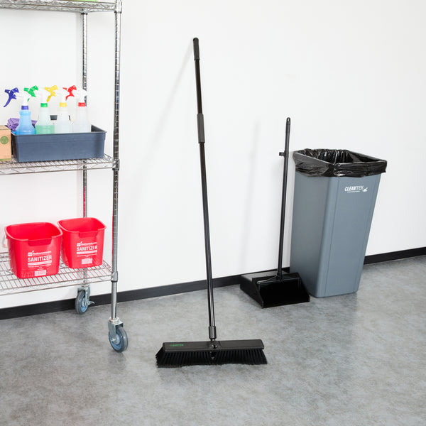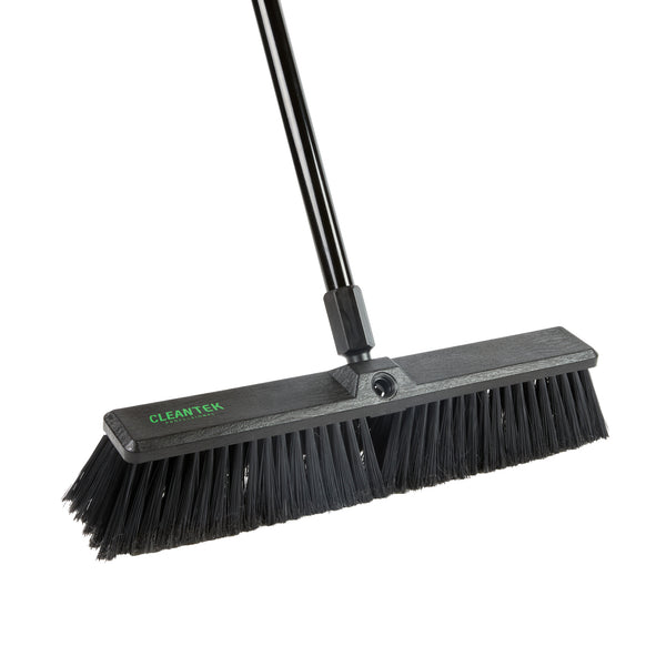 Effortlessly tackle tough cleaning tasks with our Clean Tek Professional 17 1/4-inch Black Plastic Push Broom. Equipped with fine flagged bristles, this heavy-duty push broom effectively captures and sweeps up dust and debris from various surfaces, providing thorough and efficient cleaning. The durable bristles of this sweeper broom ensure long-lasting performance on both indoor and outdoor surfaces. Featuring a plastic block, this push broom includes two handle attachments, allowing you to swap sides if the bristles wear unevenly. With a 59-inch steel handle, this dust broom offers a long reach and maneuverability, making it easy to clean large or hard-to-reach areas. The ergonomic design of this broomstick reduces hand fatigue during prolonged use, increasing your comfort and productivity. Measuring 62.21 inches in length by 17.13 inches in width by 2.36 inches in height, this garage broom is perfectly sized for all your sweeping needs. Sold in a 1 count box.