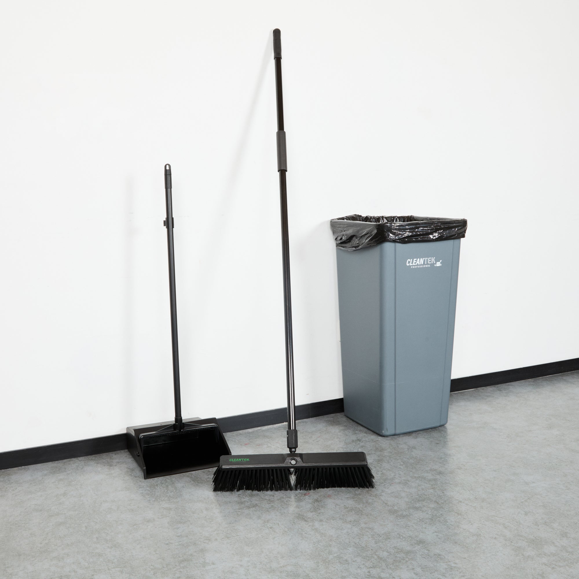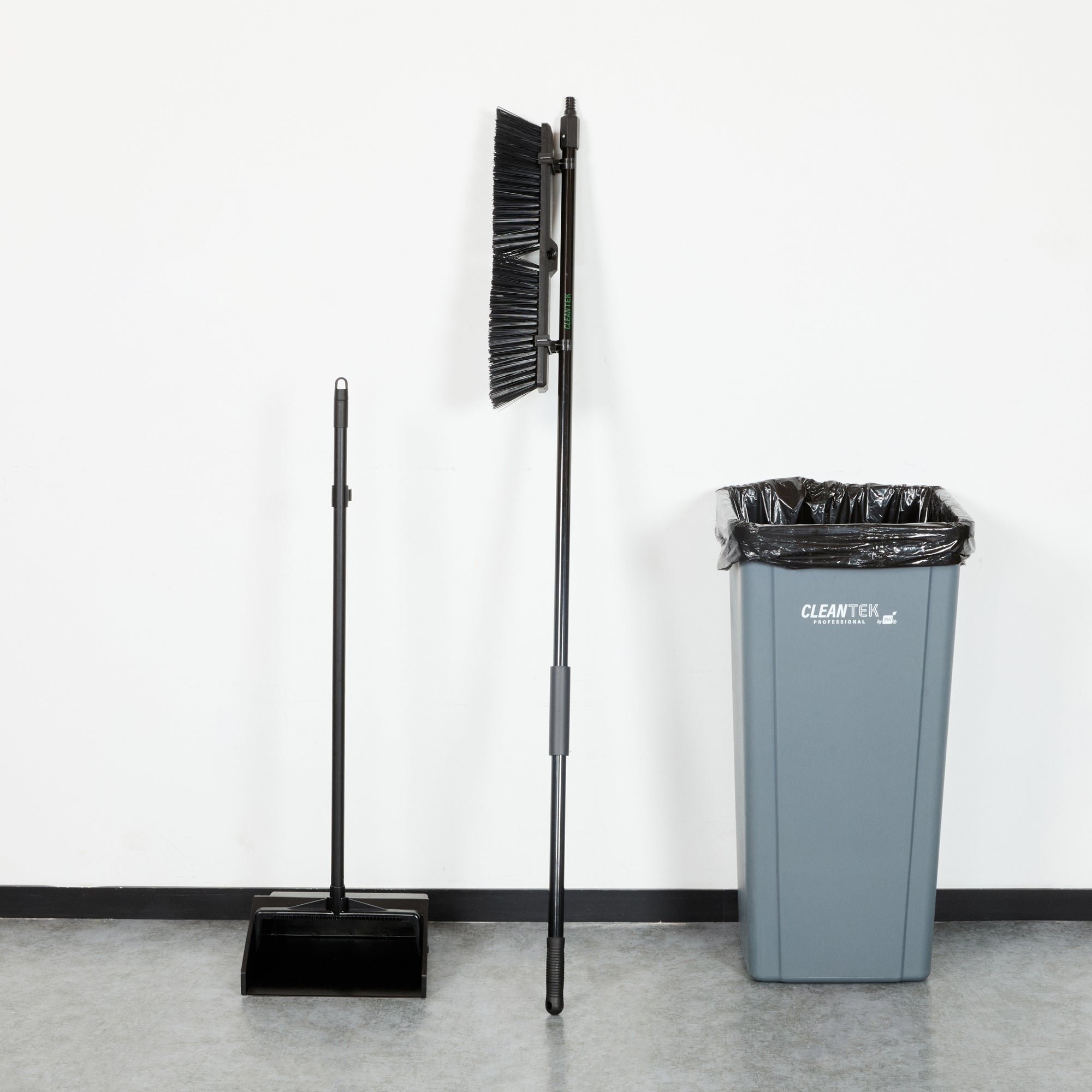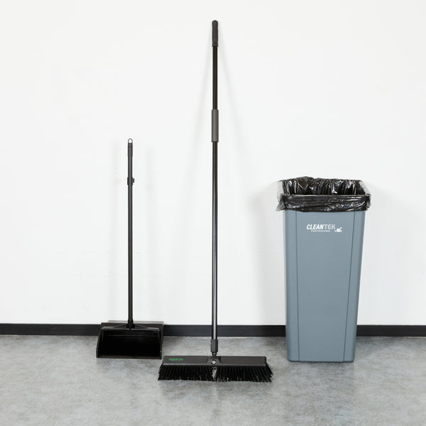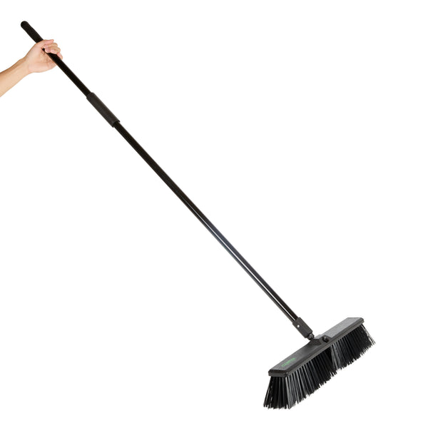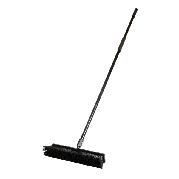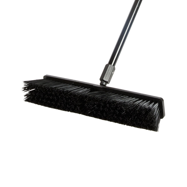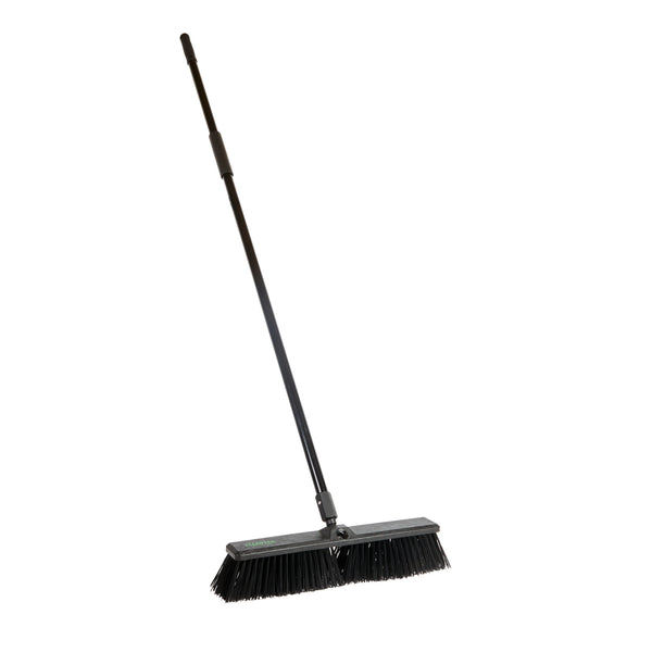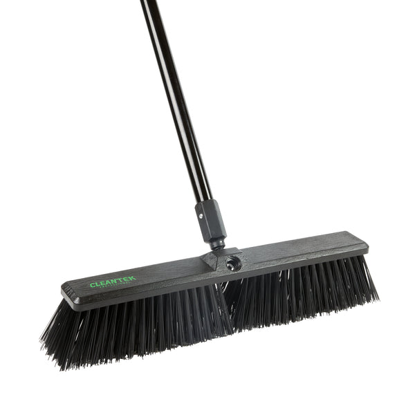 Effortlessly tackle your toughest cleaning jobs with our Clean Tek Professional 17 1/4-inch Black Plastic Push Broom. Equipped with heavy unflagged bristles, this heavy-duty push broom is designed for robust sweeping, efficiently handling large debris and rough surfaces. Ideal for both indoor and outdoor use, the plastic bristles of this push broom provide long-lasting performance for any industrial or residential setting. Featuring a plastic block with two handle attachments, this garage broom allows you to swap the broom handle sides to avoid uneven bristle wear. The 59-inch steel handle of this sweeper broom offers a long reach and added maneuverability, making it perfect for accessing and cleaning large or hard-to-reach areas. Plus, the ergonomic design of this dust broom reduces hand fatigue during prolonged use, ensuring comfort and efficiency. Measuring 62.21 inches in length by 17.13 inches in width by 2.36 inches in height, this broomstick is built for maximum coverage and effectiveness. Sold in a 1 count box.
