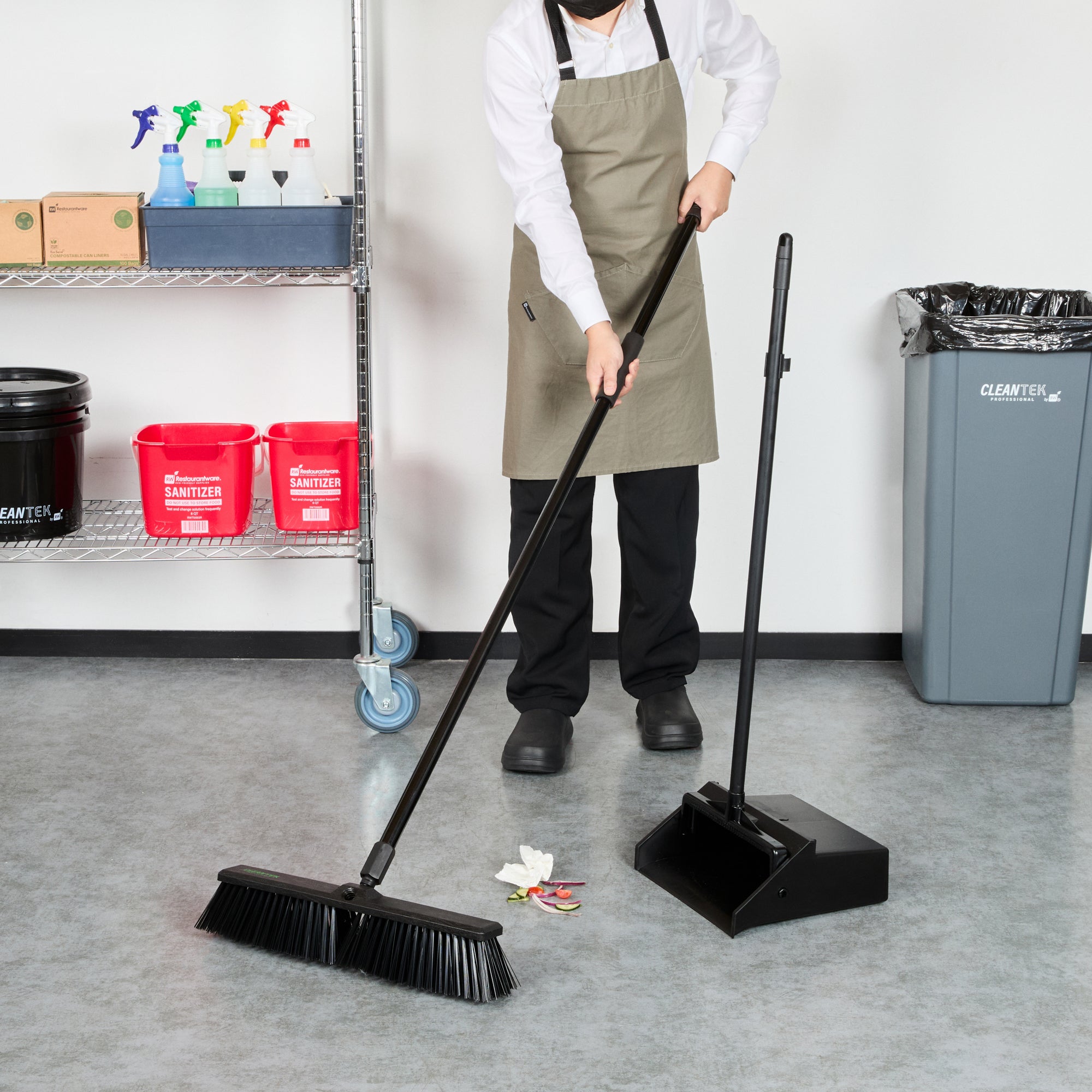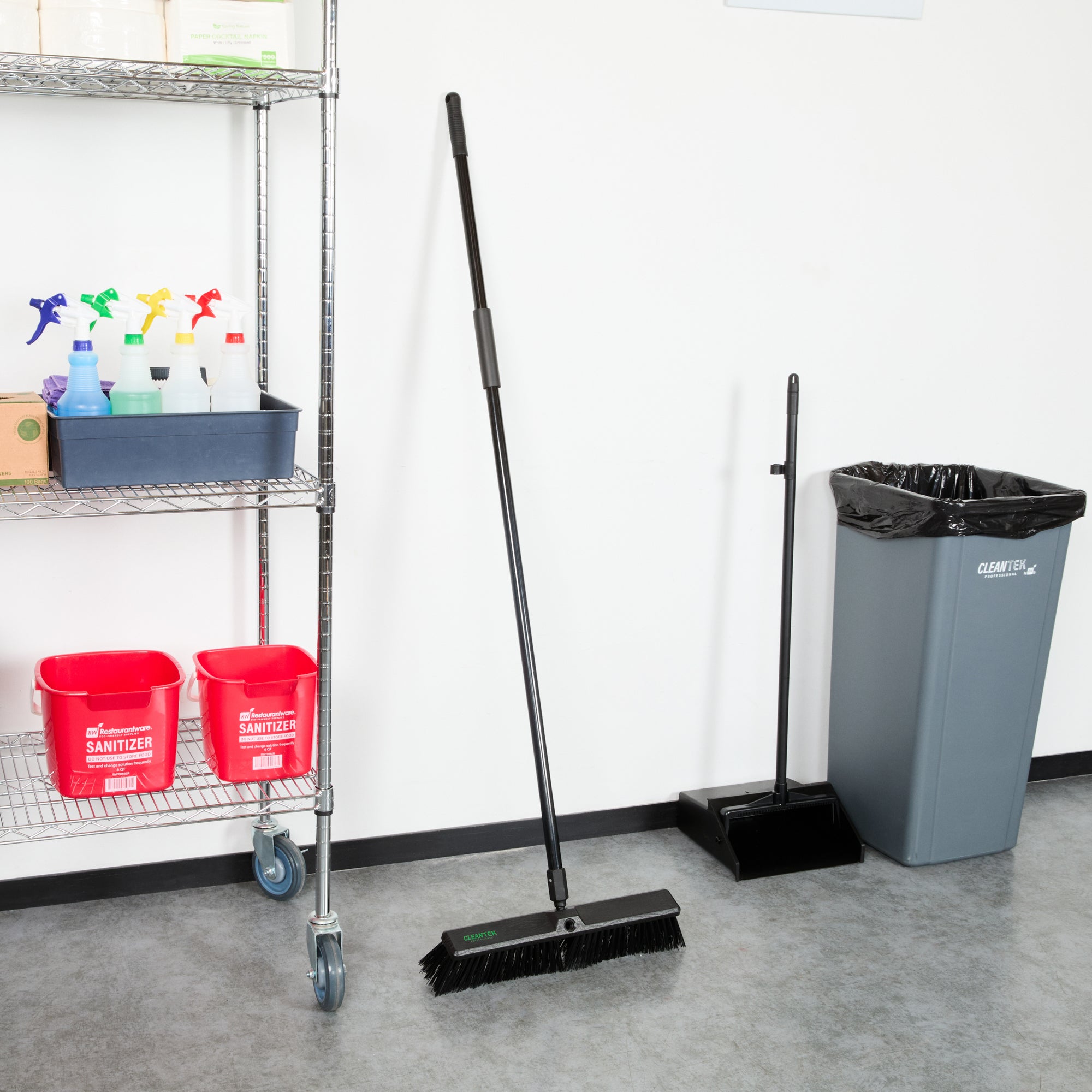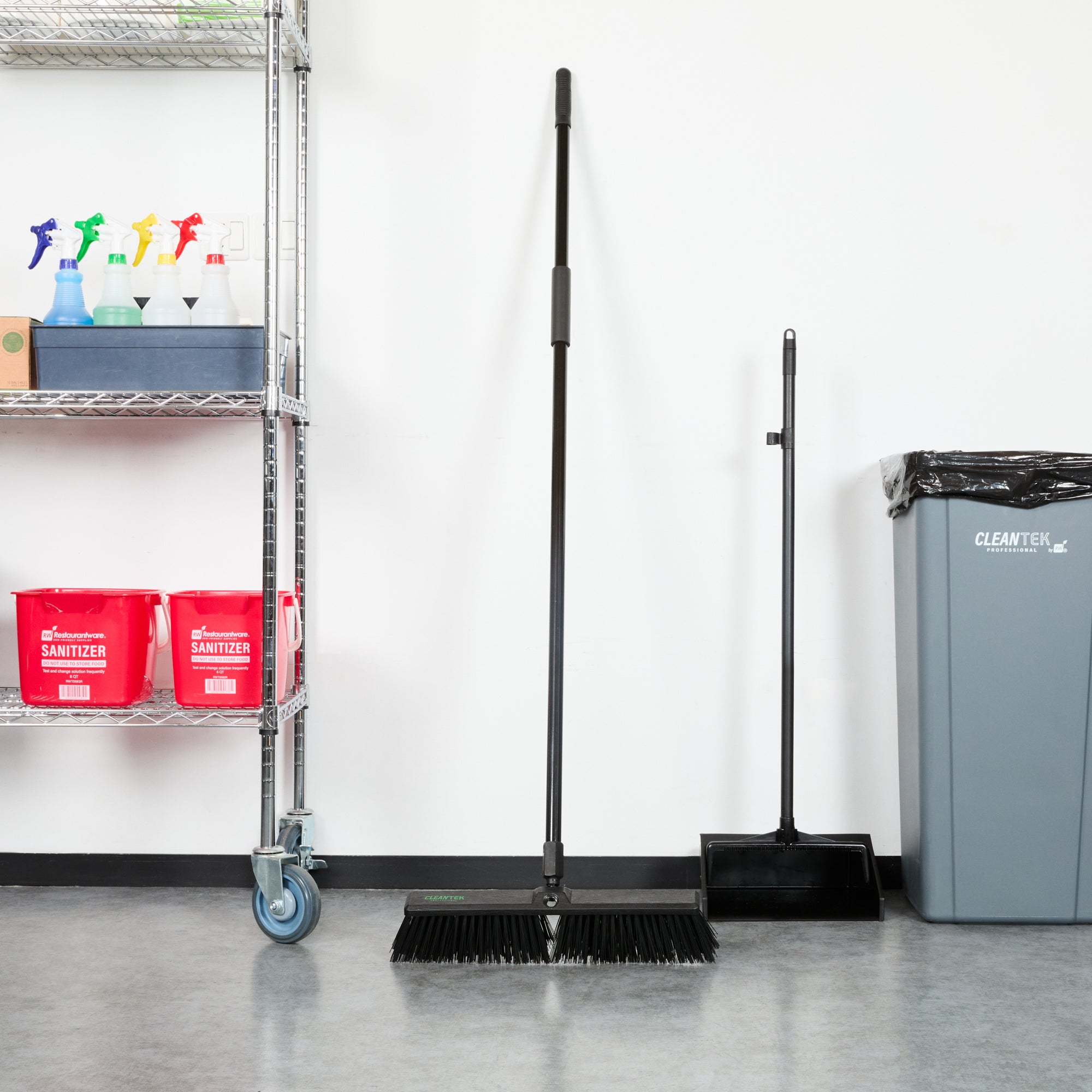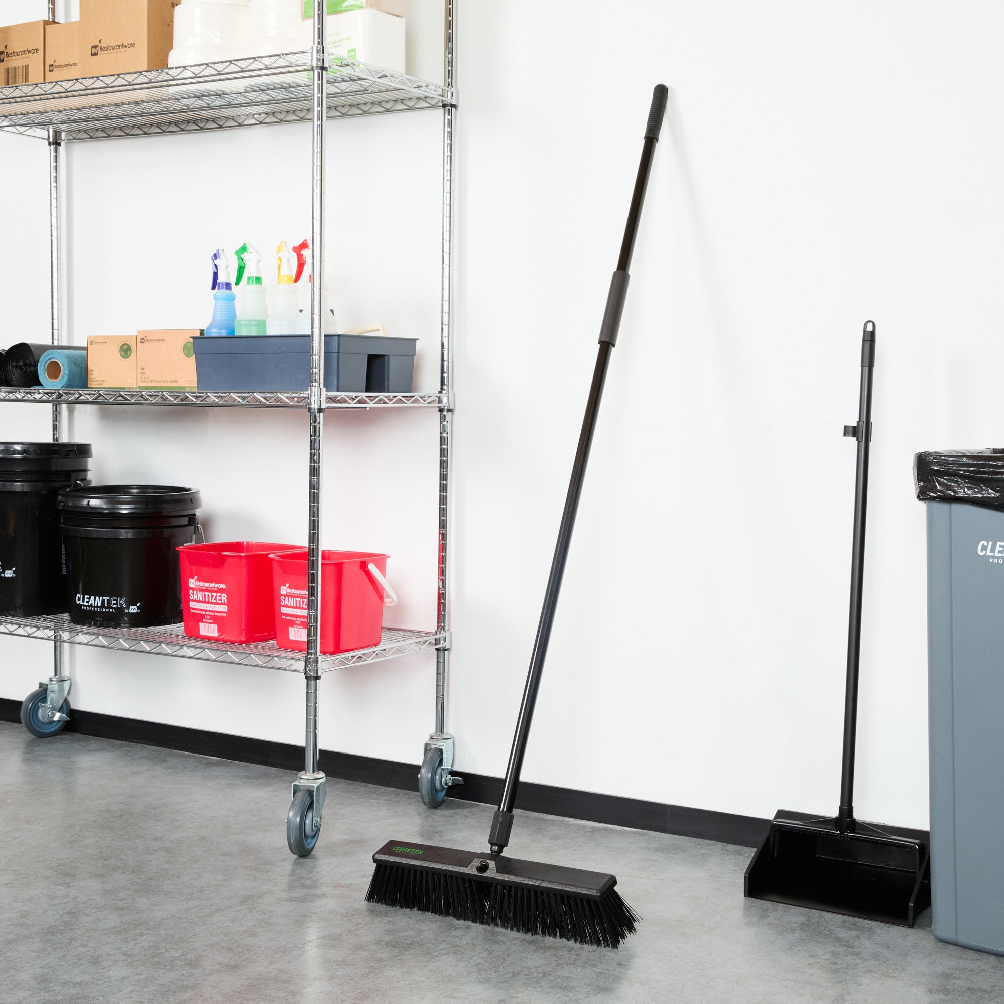 Effortlessly tackle your toughest cleaning jobs with our Clean Tek Professional 17 1/4-inch Black Plastic Push Broom. Equipped with heavy unflagged bristles, this heavy-duty push broom is designed for robust sweeping, efficiently handling large debris and rough surfaces. Ideal for both indoor and outdoor use, the plastic bristles of this push broom provide long-lasting performance for any industrial or residential setting. Featuring a plastic block with two handle attachments, this garage broom allows you to swap the broom handle sides to avoid uneven bristle wear. The 59-inch steel handle of this sweeper broom offers a long reach and added maneuverability, making it perfect for accessing and cleaning large or hard-to-reach areas. Plus, the ergonomic design of this dust broom reduces hand fatigue during prolonged use, ensuring comfort and efficiency. Measuring 62.21 inches in length by 17.13 inches in width by 2.36 inches in height, this broomstick is built for maximum coverage and effectiveness. Sold in a 1 count box.