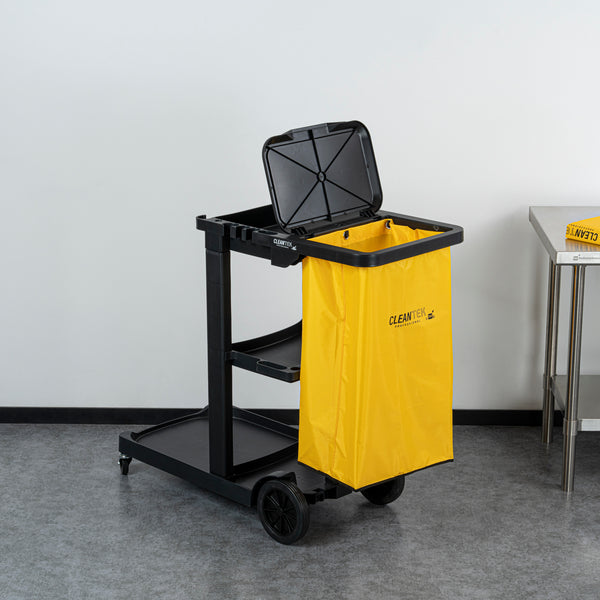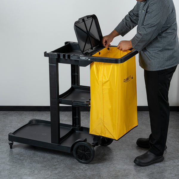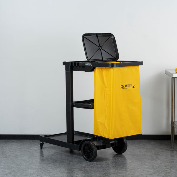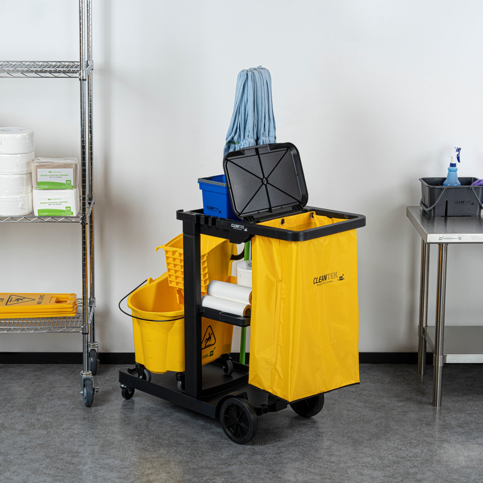 Enhance your waste management system with our Clean Tek Professional 18-gallon Yellow Plastic Bag. This laundry bag is compatible with our collection of compatible Clean Tek Professional janitor carts for efficient waste collection and management. Featuring metal-reinforced hanging holes, this plastic bag prevents the hanging holes from tearing, ensuring that the bag can support heavier items without compromising its integrity. This large plastic bag is easy to install and remove from your janitorial cart, allowing for quick and hassle-free bag changes. With a yellow finish, this janitor cart bag supports color-coded waste segregation, enhancing visibility and making it easy to identify and manage different types of waste. Measuring 14.96 inches in length by 10.63 inches in width by 27.17 inches in height, this heavy-duty plastic bag has a capacity of 18 gallons and is designed for versatile use in various environments. Sold in a 1 count box. Janitor carts are available and sold separately.