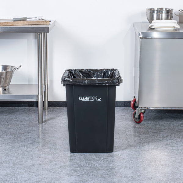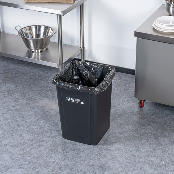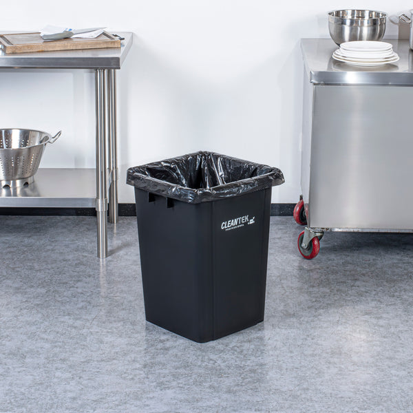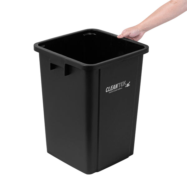 Optimize waste management with our Clean Tek Professional 19-gallon Square Black Plastic Trash Can, designed to elevate efficiency in your foodservice establishment. Made from premium HDPE plastic, this durable trash bin withstands heavy-duty use, ensuring longevity. The square design of this trash can ensures it fits neatly into tight corners, maximizing space efficiency in any room. Providing ample space for high-volume waste disposal, this garbage bin boasts a 19-gallon capacity. Pair this garbage can with a compatible lid (SKU: RWT2018B) to keep contents securely enclosed, preventing spills and containing odors. The classic black color of this outdoor trash can blends in seamlessly with most decor, enhancing the aesthetic appeal of your environment. Measuring 15.95 inches in length by 16.06 inches in width by 21.26 inches in height, this plastic bin accommodates up to 19 gallons. Sold in a 1 count box. Lid is available and sold separately.