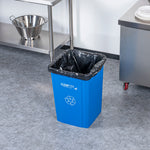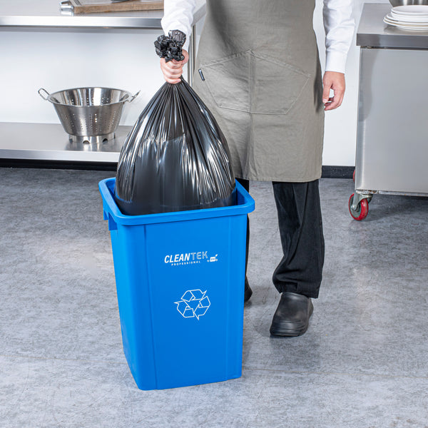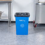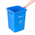 Streamline your waste management with our Clean Tek Professional 19-gallon Square Blue Plastic Recycling Bin. Made from premium HDPE plastic, this durable trash can withstands heavy-duty use at your foodservice establishment. The square design of this plastic bin ensures they fit neatly into tight corners, maximizing space efficiency in any room. Boasting a 19-gallon capacity, this garbage can provides ample space for high-volume waste disposal. Pair this trash bin with a compatible lid (SKU: RWT2018BL) to keep contents securely enclosed, preventing spills and containing odors. The bright blue coloring and universal "recycling" symbol on this outdoor trash can help promote proper waste disposal and encourage recycling efforts. Measuring 15.95 inches in length by 16.06 inches in width by 21.26 inches in height, this garbage bin can hold up to 19 gallons. Sold in a 1 count box. Lid is available and sold separately.