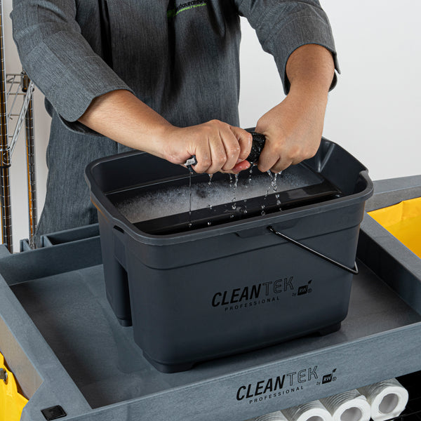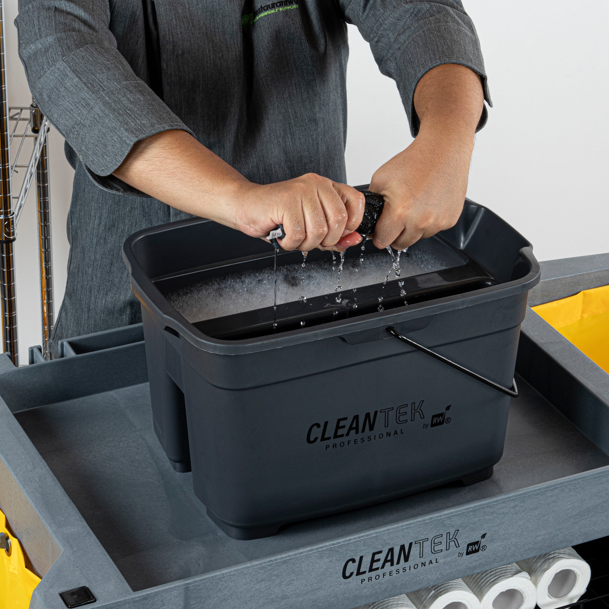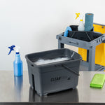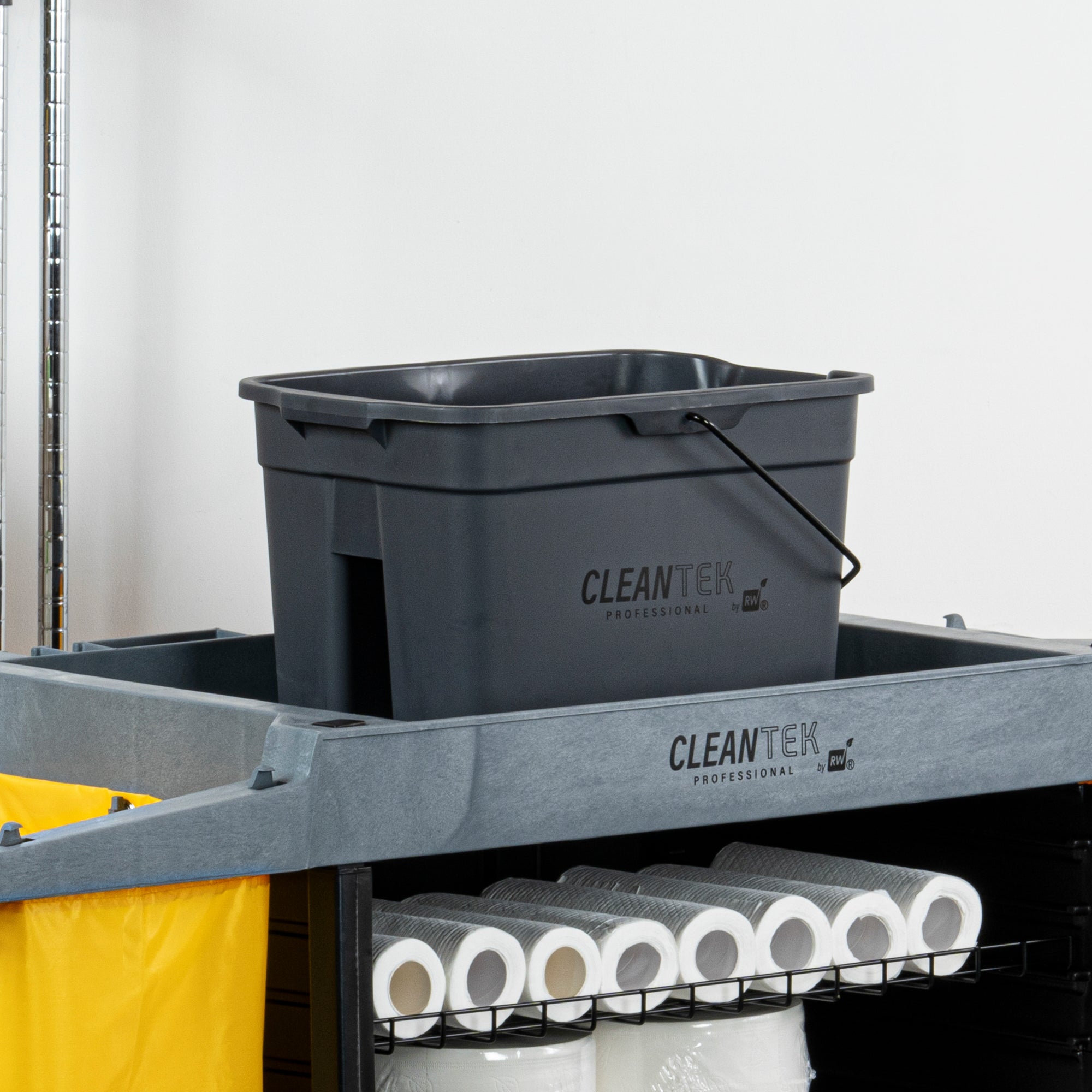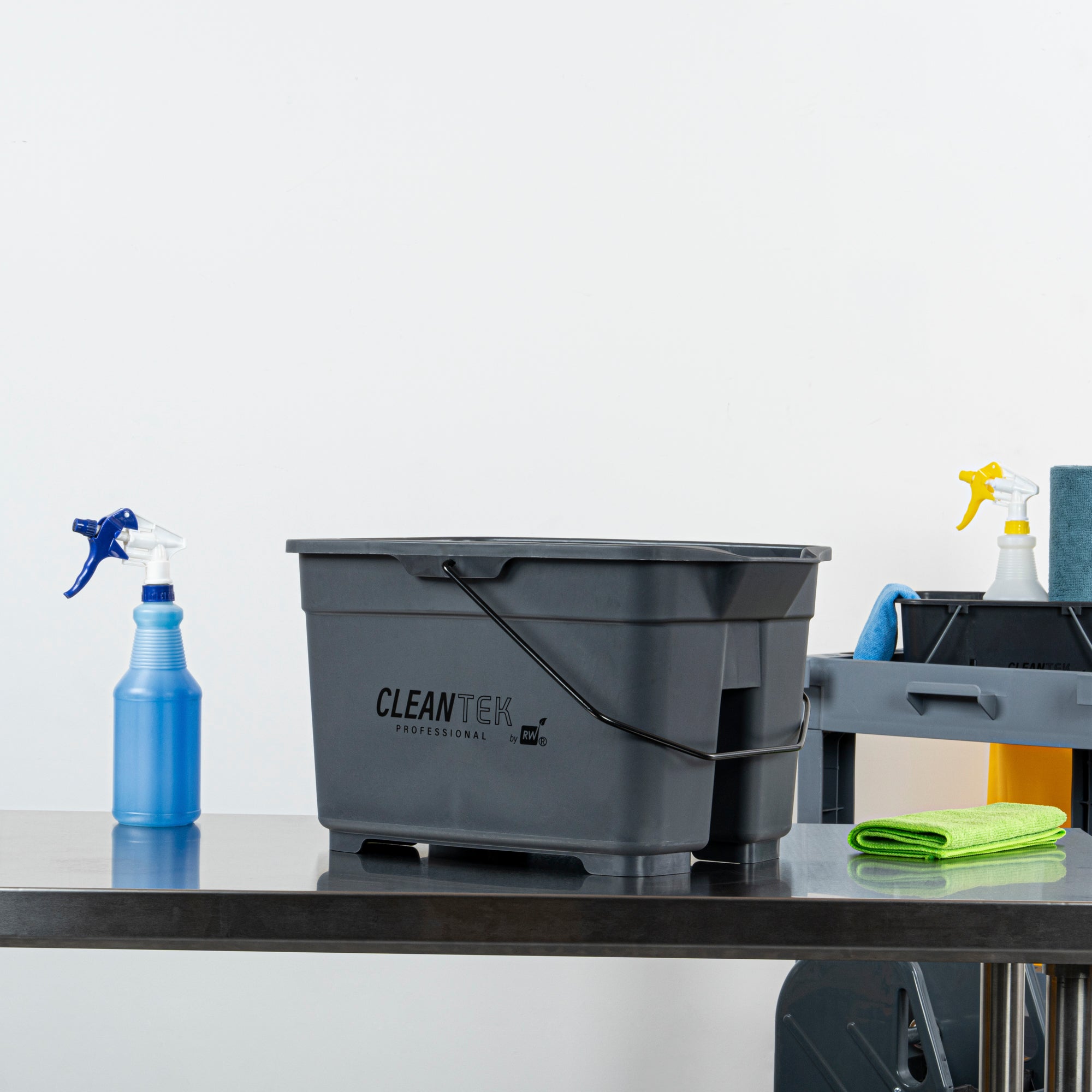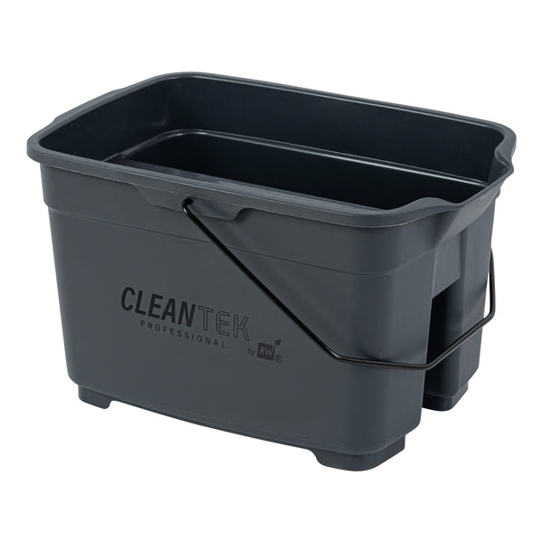 Enhance your cleaning routine with our Clean Tek Professional 19-quart Gray Divided Bucket / Caddy. Designed with 2 separate compartments, this cleaning bucket allows you to fill one side with cleaning solution and the other with rinse water. Equipped with a wide pour spout, this plastic bucket ensures easy disposal of liquids when the job is done. The handle on this cleaning caddy provides a firm, reliable grip for effortless transportation from room to room. Crafted from heavy-duty plastic, this plastic bucket with handle ensures long-lasting durability for your janitorial needs. With a 19 quarts, this cleaning supply caddy measures 18.11 inches in length by 12.99 inches in width by 11.02 inches in height and comfortably into your cleaning arsenal. Sold in a 1 count box.