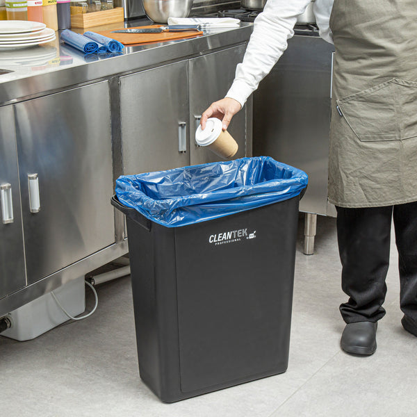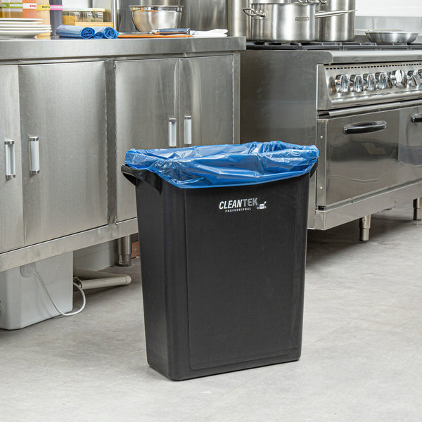Effortlessly manage waste disposal with leakproof trash liners. The Clean Tek Professional Blue Plastic Recycling Trash Liner features a robust build ideal for busy kitchens or catering events. Its linear low-density material efficiently handles rough objects without tearing, ensuring it's a top choice for recycling trash liner needs. With dimensions of 30 inches in length and 36 inches in width, these liners snugly fit various trash cans, providing ample coverage for up to 20 gallons of waste. The heavy-duty trash liners boast a star seal bottom that supports wet waste and prevents spills, maintaining cleanliness in your workspace. Plus, the tear-resistant construction secures both paper and non-rough items, making them reliable plastic recycling bags for high-volume use. Choose these trash liners for hassle-free waste management and enhance your kitchen's efficiency. Each order includes 250 Clean Tek Professional Blue Plastic Recycling Trash Liner.
