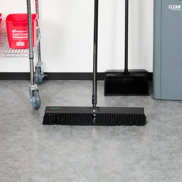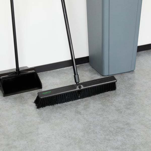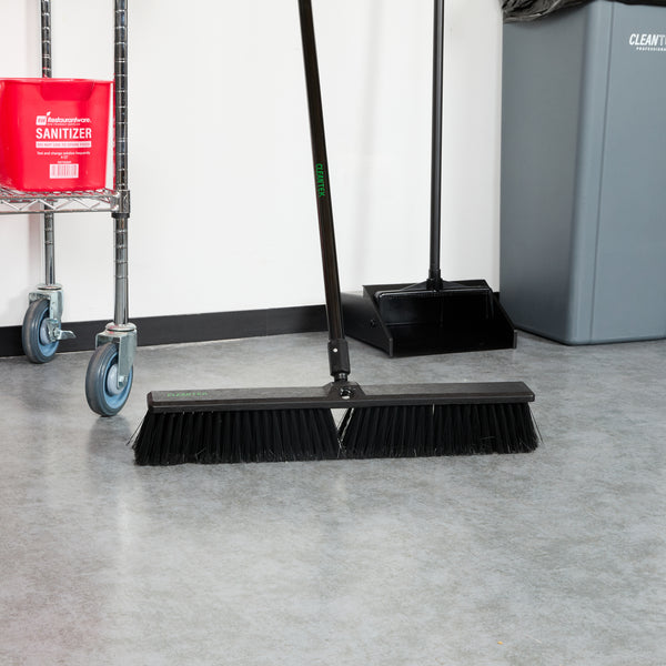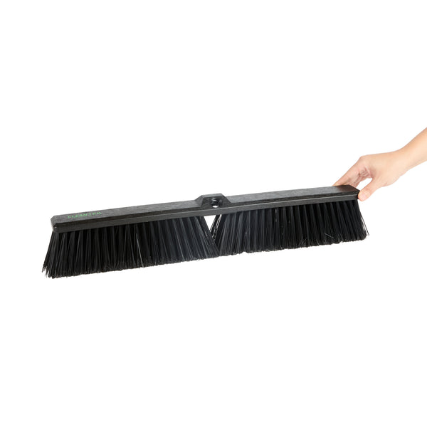 Clean your establishments with our Clean Tek Professional 23 1/2-inch Black Plastic Push Broom Head. Equipped with heavy unflagged bristles, this broom head is designed to tackle large debris and rough surfaces effortlessly. Pair this wide broom head with compatible handle (SKU: RWT1877B) for an enhanced cleaning performance. The durable plastic bristles on this dust broom head provide long-lasting performance on both indoor and outdoor surfaces, making them perfect for various environments. Featuring a plastic block with two handle attachments, this push broom head allows you to swap the handle sides to ensure even wear of the bristles. Measuring 23.62 inches in length by 2.36 inches in width by 3.35 inches in height, this heavy-duty push broom head is ideal for extensive cleaning tasks. Sold in a 1 count box. Handle is available and sold separately.