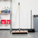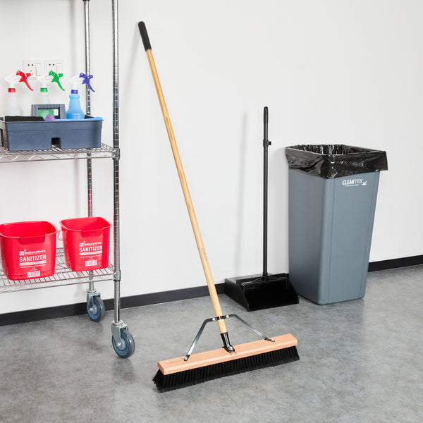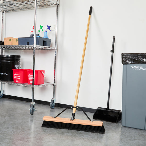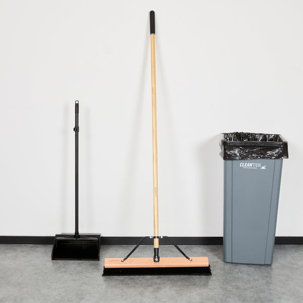 Sweep floors with our Clean Tek Professional 24-inch Contractor / Push Broom. Equipped with fine flagged plastic bristles, this push broom effectively captures and sweeps up dust and debris from a variety of surfaces, providing a thorough cleaning. This heavy-duty broom features a 60-inch wood handle that offers extended reach and allows for easy sweeping of hard-to-reach areas while minimizing bending. With an ergonomic design, this dust broom provides a comfortable grip for extended use. The 24-inch long broom head of this contractor broom covers a large surface area, making it ideal for efficiently sweeping wide spaces. This sweeper broom has metal braces and prevents unthreading, ensuring a secure and stable connection between the handle and bristles for reliable performance. With total dimensions measuring 64.17 inches in length by 25.59 inches in width by 3.15 inches in height, this broomstick is the perfect tool for large-scale cleaning tasks. Sold in a 1 count box.