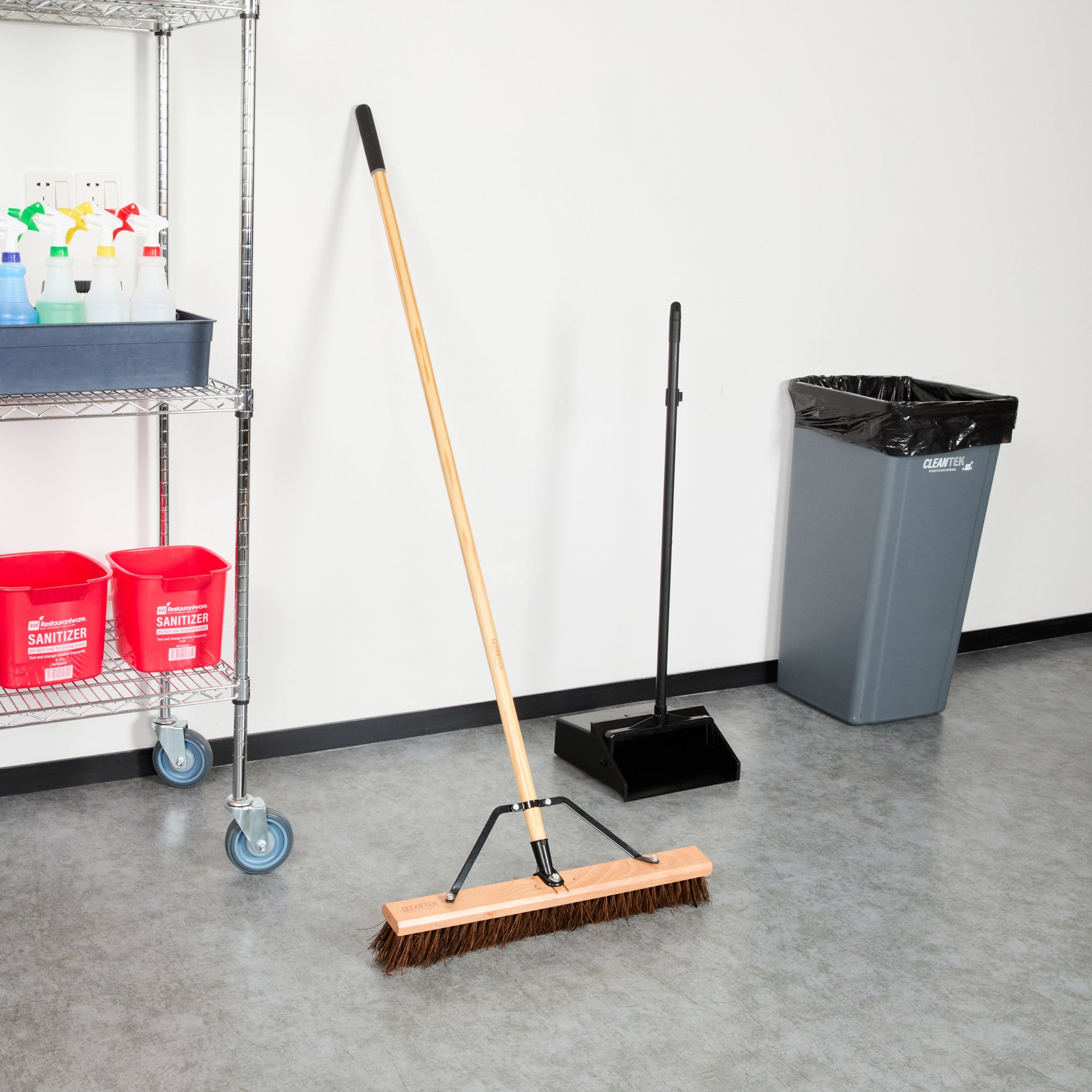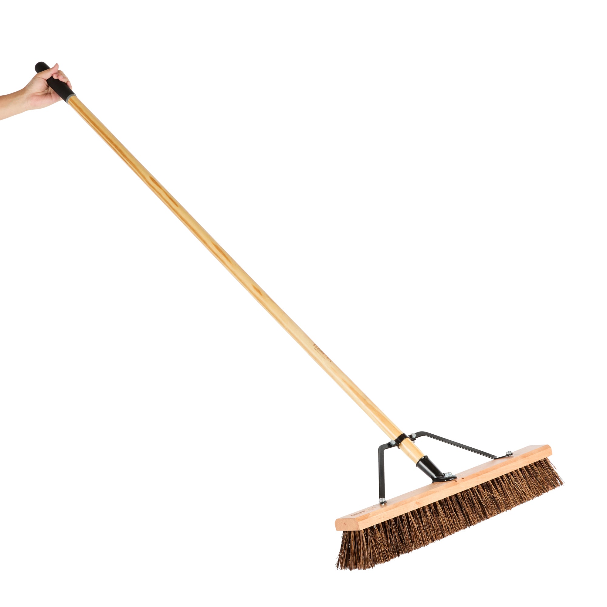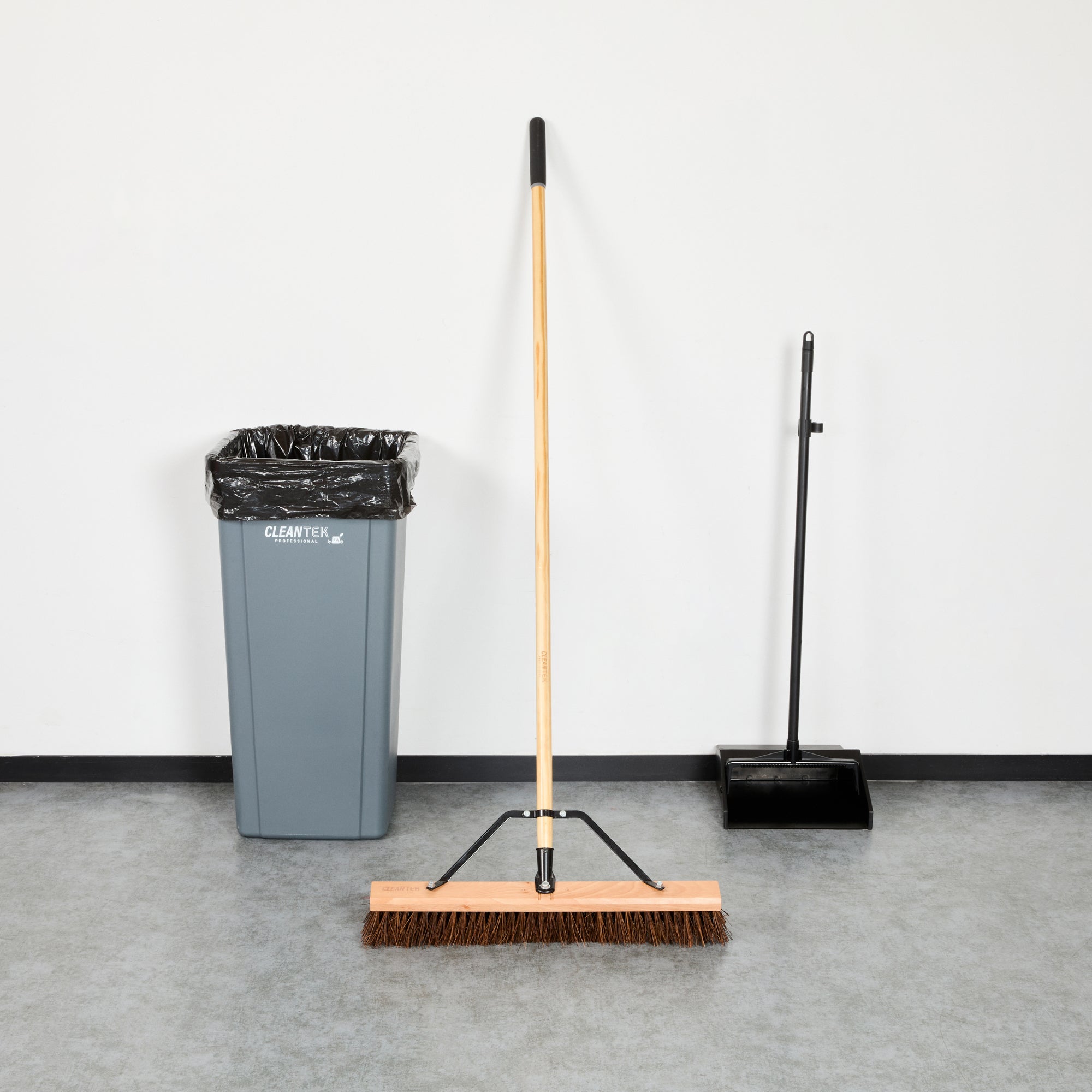Sweep away your toughest messes with our Clean Tek Professional 24-inch Garage / Push Broom. This heavy-duty broom is equipped with Palmyra unflagged bristles, designed for effective wet and dry debris sweeping. The 60-inch wood handle of this push broom provides extended reach, allowing for easy sweeping of hard-to-reach areas while minimizing bending. Ergonomically designed, this broomstick offers a comfortable grip and reduces hand fatigue during prolonged sweeping sessions. Featuring a 24-inch wide head, this sweeper broom covers large areas quickly, making it ideal for garages, driveways, sidewalks, and patios. This dust broom is perfect for tackling rough outdoor surfaces, effectively handling wet leaves, dirt, gravel, and tough debris. With total dimensions measuring 64.17 inches in length by 25.59 inches in width by 3.15 inches in height, this broom is built for efficiency and durability. Sold in a 1 count box.