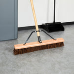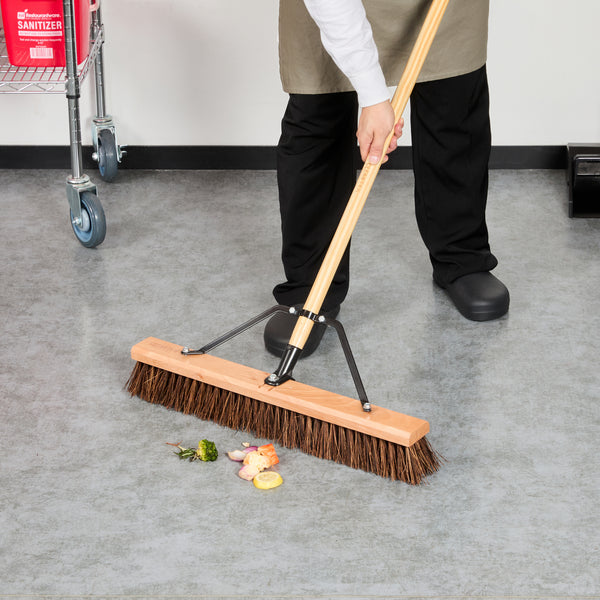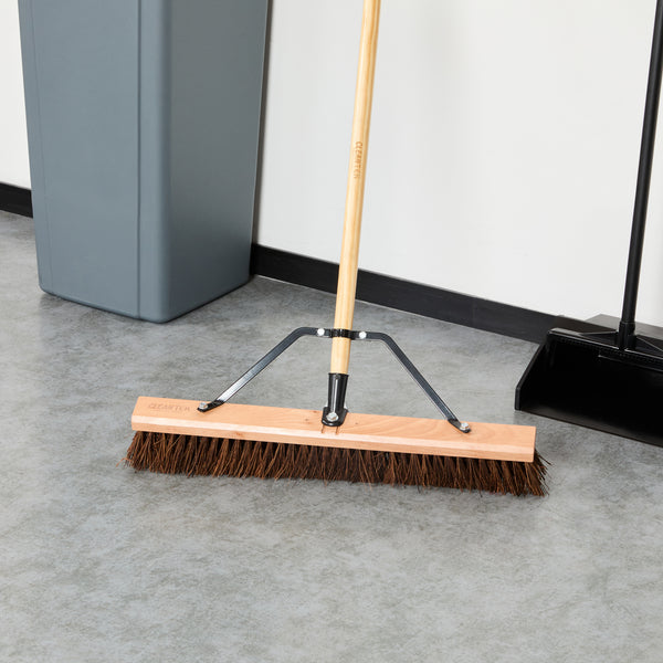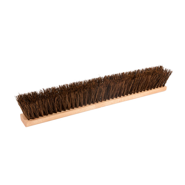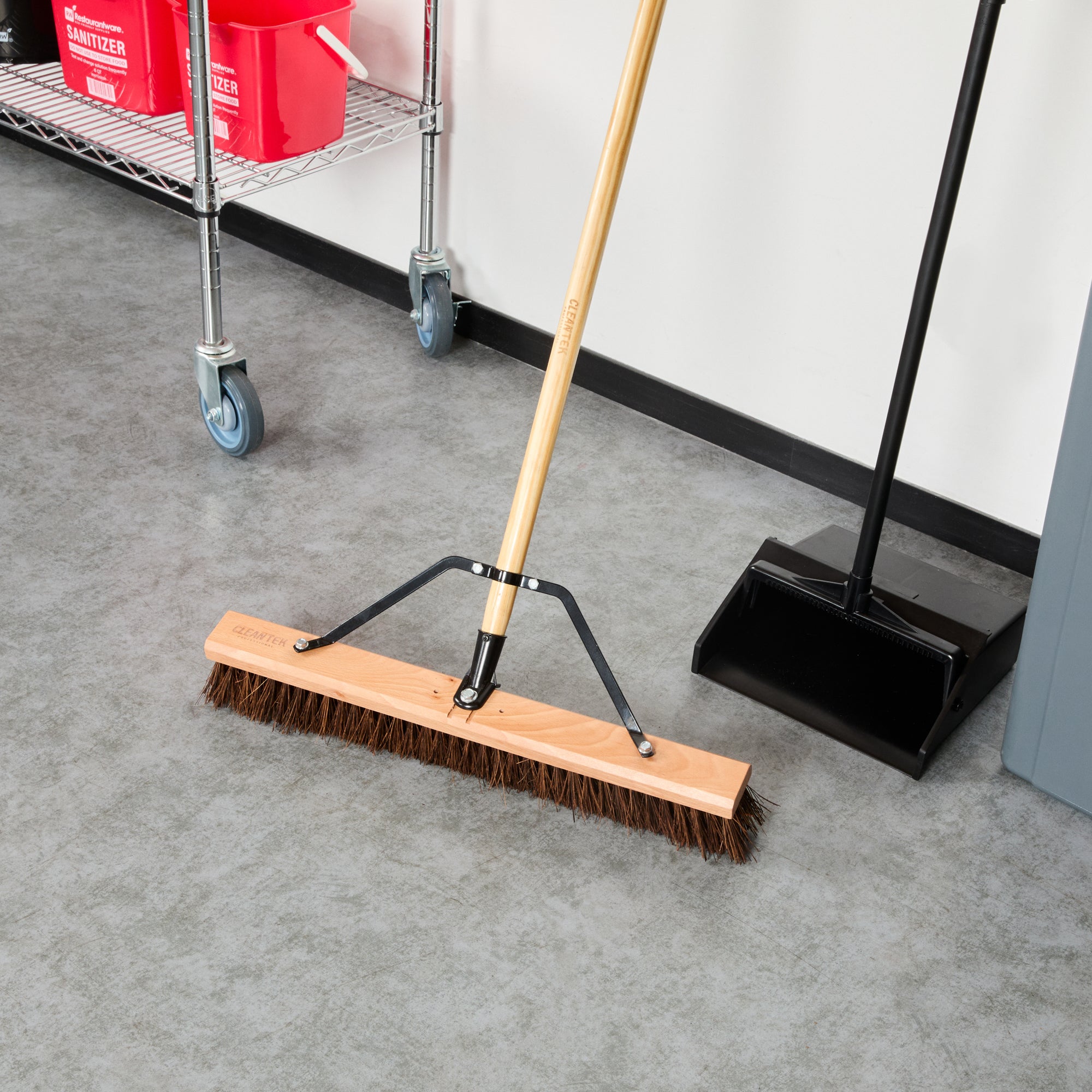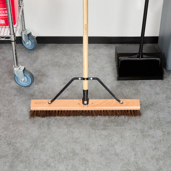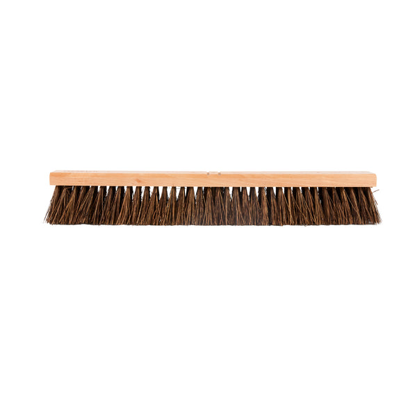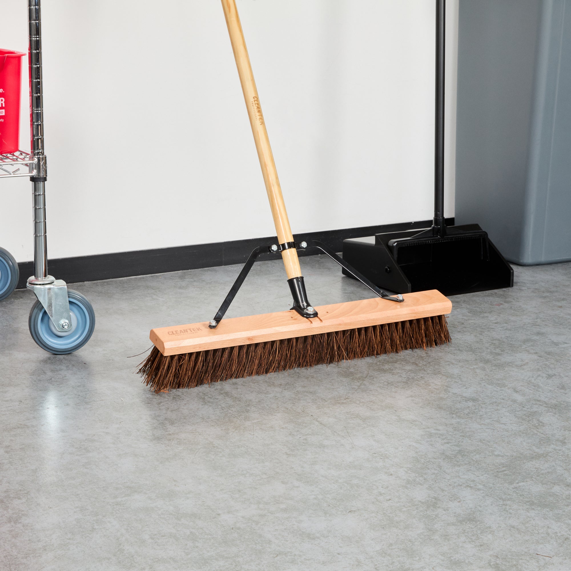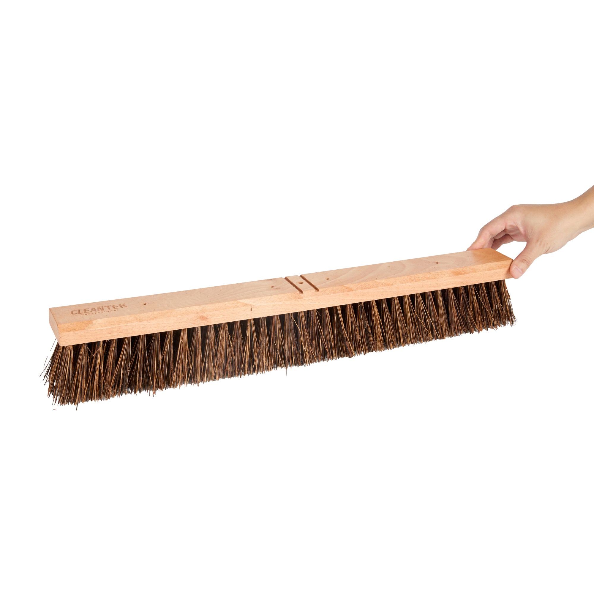 Tackle tough cleaning jobs with our Clean Tek Professional 24-inch Hardwood Garage / Push Broom Head. Equipped with Palmyra unflagged bristles, this heavy-duty push broom head are designed for effective wet and dry debris sweeping. Pair this wide broom head with a compatible handle (SKU: RWT1860B) and brace (SKU: RWT1861B) for a streamlined cleaning experience. The durable bristles on this broom head provide long-lasting performance. Featuring a non-absorbent wood block, this push broom head ensures durability and longevity with consistent use. Measuring 23.62 inches in length by 2.48 inches in width by 3.86 inches in height, this dust broom head is perfectly sized for efficient cleaning. Sold in a 1 count box. Handle and broom brace are available and sold separately.