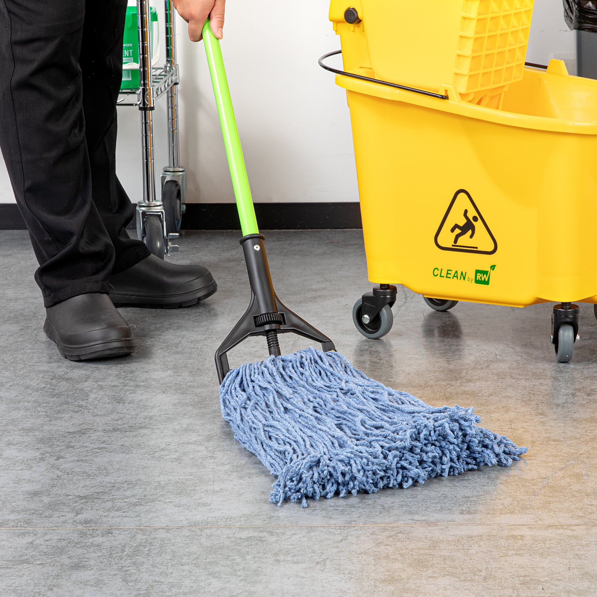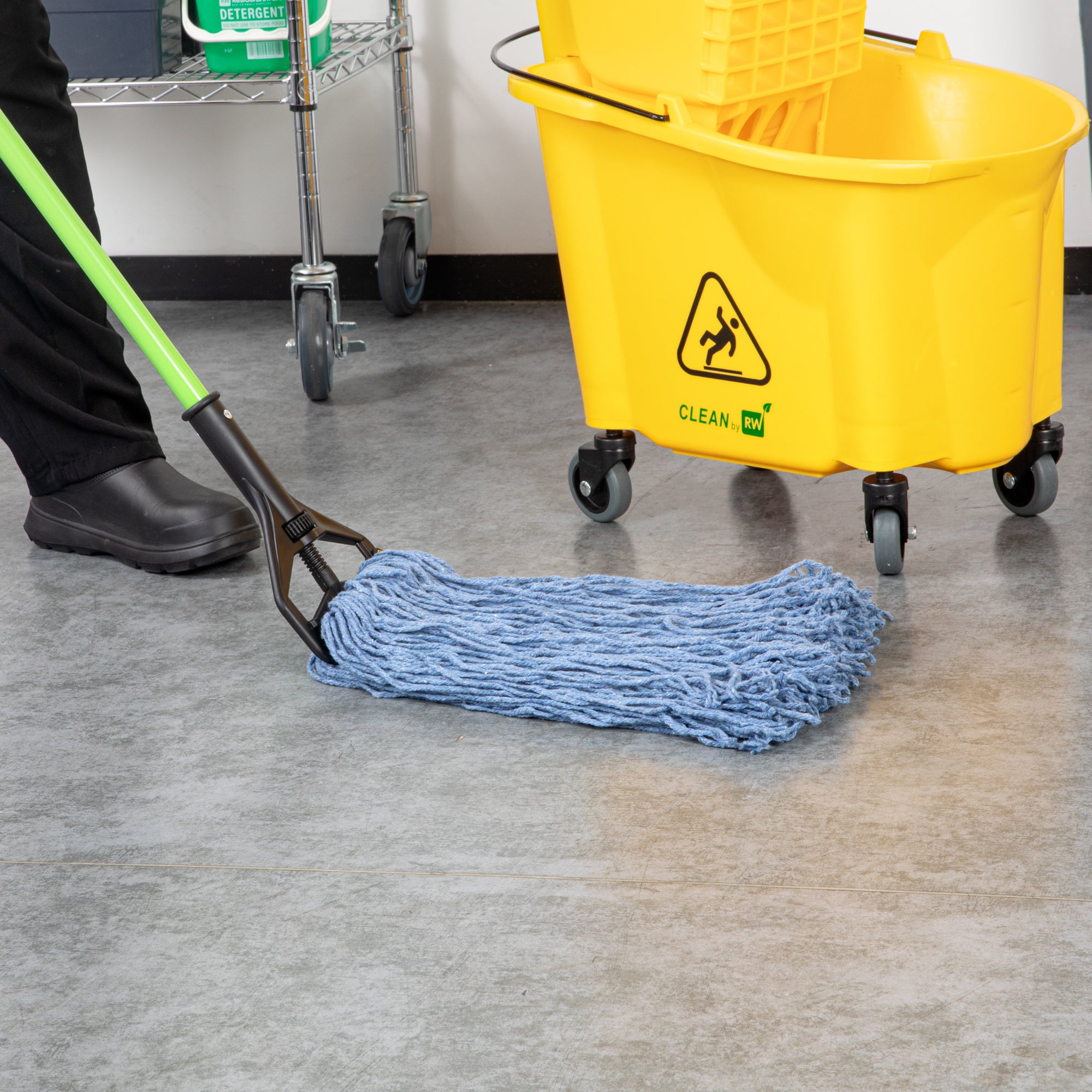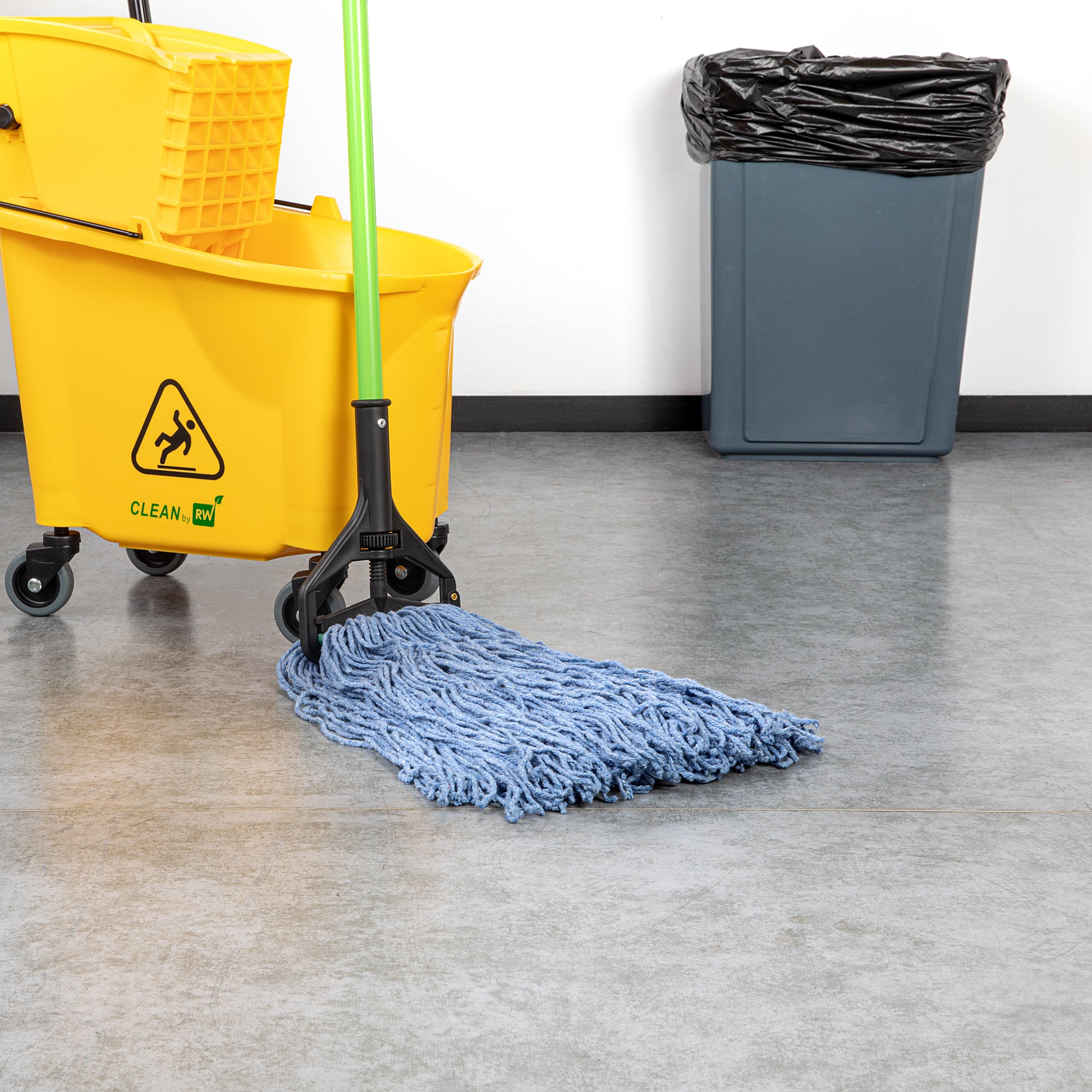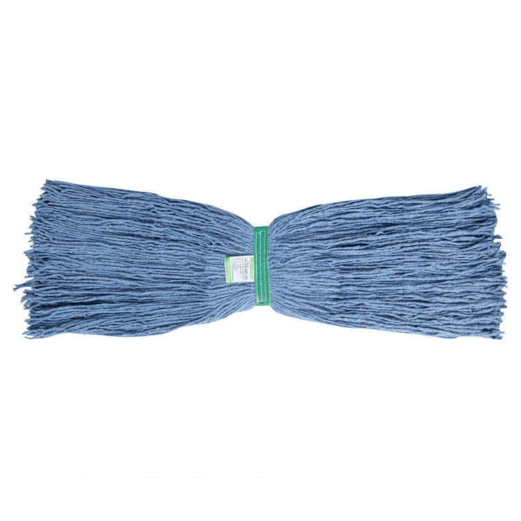 Upgrade your cleaning arsenal with our Clean Tek Professional 24-ounce Blue Cotton Blend Heavy Duty Wet Mop Head. With a 1.25-inch wide headband, this mop head ensures a secure and stable fit on compatible handles (SKUs: RWT1788K, RWT1789G, and RWT1790G), enhancing overall cleaning efficiency and ease of use. Featuring a cut end design, this wet mop head absorbs liquids quickly, making it effective for handling spills and messes. Crafted from a premium blend of cotton and polyester, this washable mop head boasts superior dirt pick up and absorbency, making it ideal for efficient cleaning. This commercial mop head is machine washable and can be easily cleaned for repeated use, ensuring long-lasting performance. Plus, this blue mop head ensures that your floors dry faster without streaking. Measuring 19.69 inches in length by 5.98 inches in width by 1.97 inches in height, this mop head replacement has a capacity of 12 ounces. Sold in a 1 count box. Handles are available and sold separately.