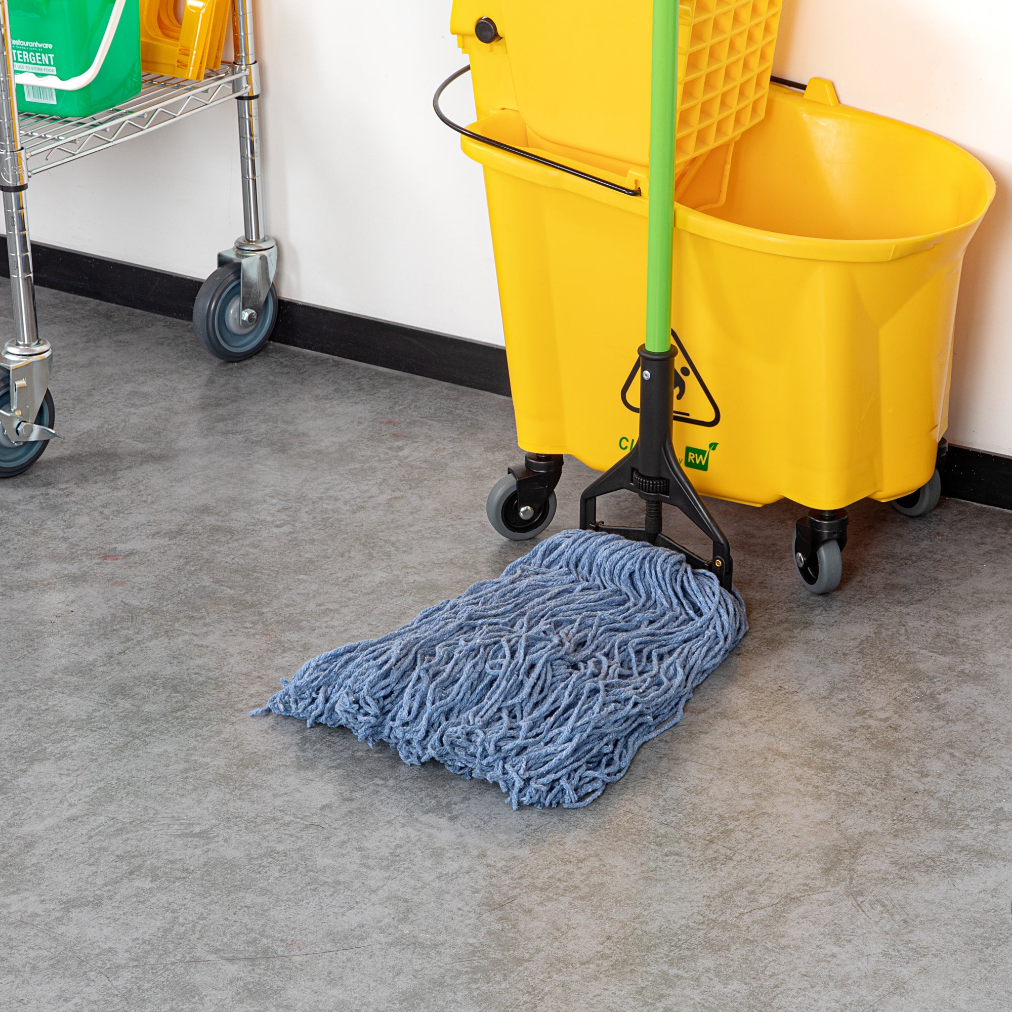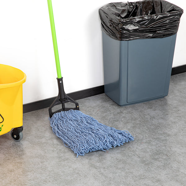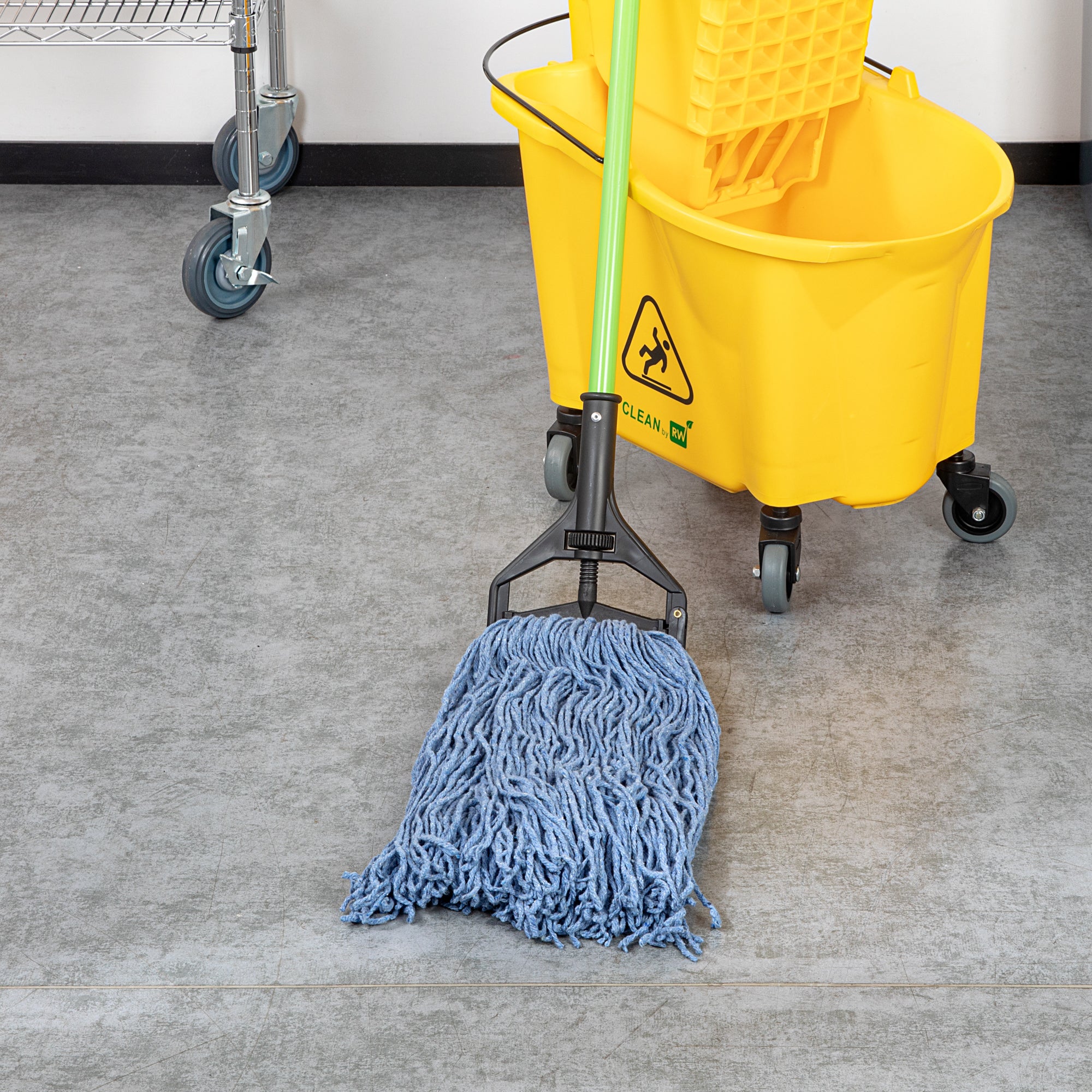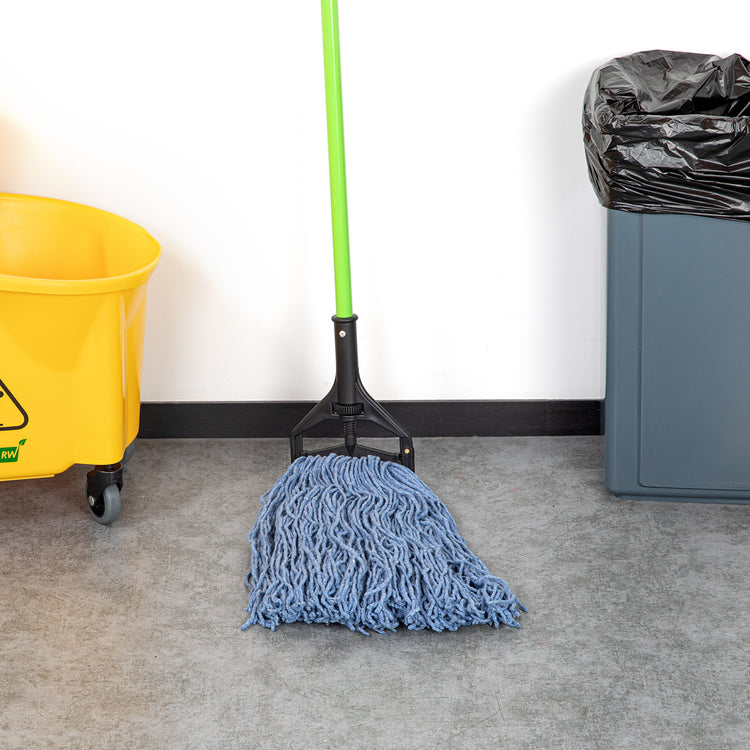Upgrade your cleaning arsenal with our Clean Tek Professional 24-ounce Blue Cotton Blend Heavy Duty Wet Mop Head. With a 1.25-inch wide headband, this mop head ensures a secure and stable fit on compatible handles (SKUs: RWT1788K, RWT1789G, and RWT1790G), enhancing overall cleaning efficiency and ease of use. Featuring a cut end design, this wet mop head absorbs liquids quickly, making it effective for handling spills and messes. Crafted from a premium blend of cotton and polyester, this washable mop head boasts superior dirt pick up and absorbency, making it ideal for efficient cleaning. This commercial mop head is machine washable and can be easily cleaned for repeated use, ensuring long-lasting performance. Plus, this blue mop head ensures that your floors dry faster without streaking. Measuring 19.69 inches in length by 5.98 inches in width by 1.97 inches in height, this mop head replacement has a capacity of 12 ounces. Sold in a 1 count box. Handles are available and sold separately.