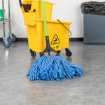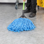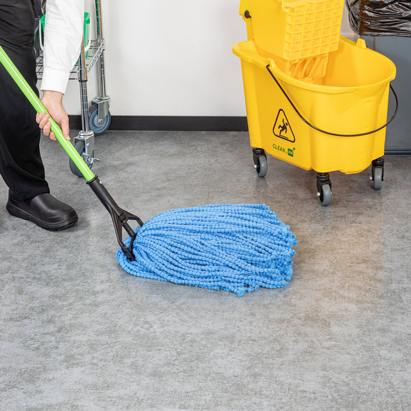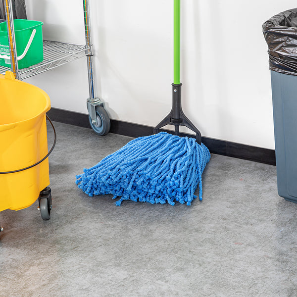 Keep your establishment spotless with our Clean Tek Professional 24-ounce Blue Microfiber Wet Mop Head. Featuring a 1.25-inch wide headband, this mop head ensures a secure fit with its compatible handles (SKU: RWT1788K, RWT1789G, and RWT1790G), making it perfect for heavy-duty cleaning tasks. Featuring a cut end design, this wet mop head absorbs liquids quickly, making it effective for handling spills and messes. Made from premium microfiber, this commercial mop head boasts superior dirt pickup and absorbency for efficient cleaning. The mildew-resistant microfiber fabric of this washable mop head lints less, ensuring a cleaner environment. Designed to be machine washable, this mop head replacement can be easily cleaned for repeated use, ensuring long-lasting performance. This microfiber mop head ensures faster drying without streaking, improving your cleaning results. Measuring 19.69 inches in length by 5.98 inches in width by 1.97 inches in height, this blue mop head has a capacity of 24 ounces. Sold in a 1 count box. Handles are available and sold separately.