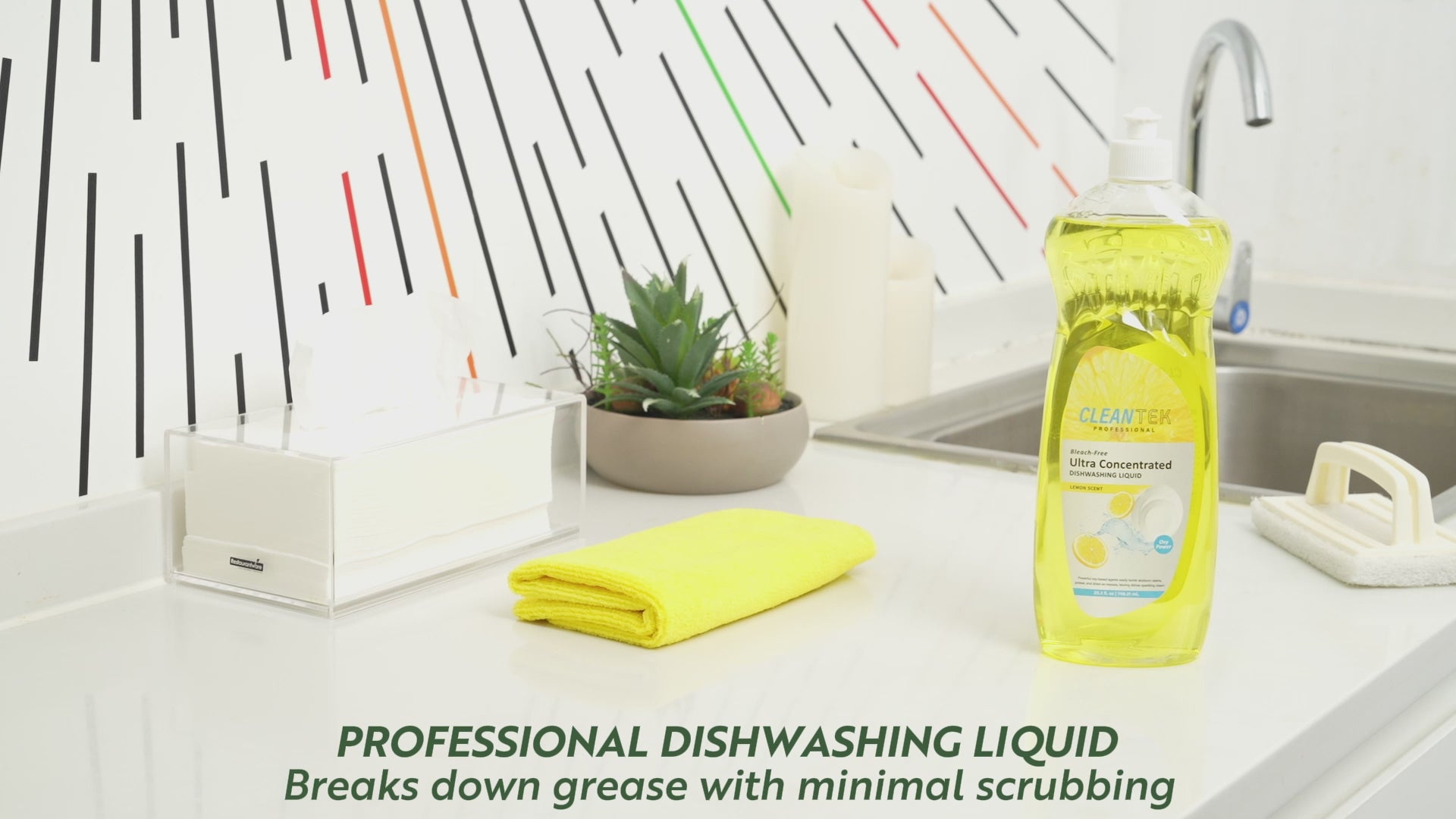 - Quick rinsing formula speeds up kitchen cleanup