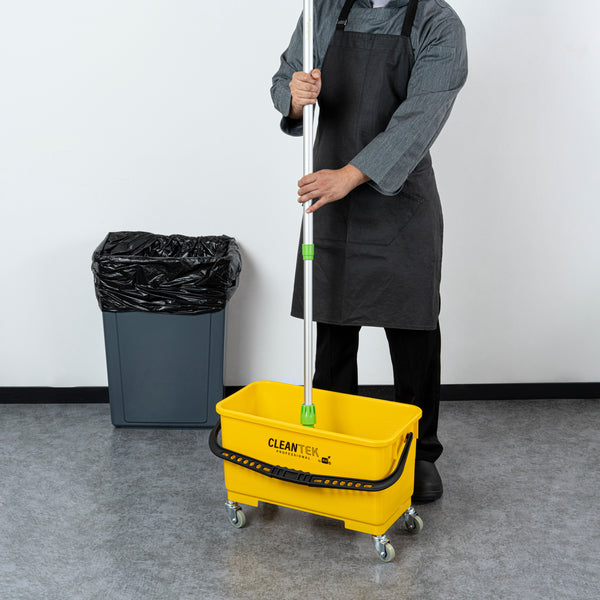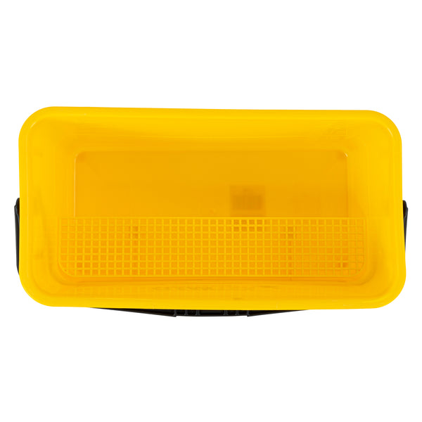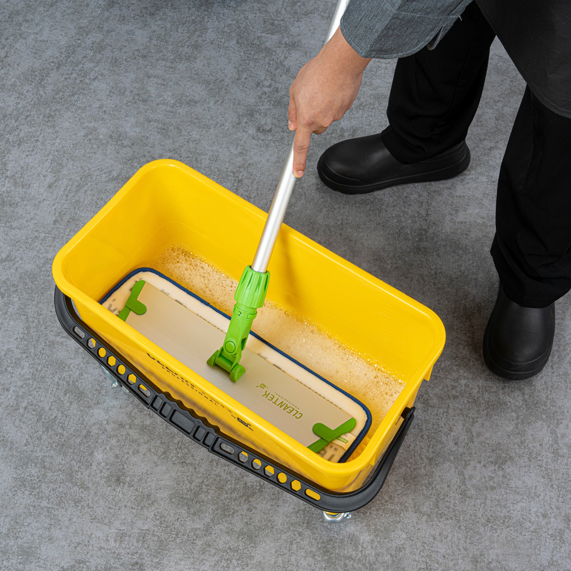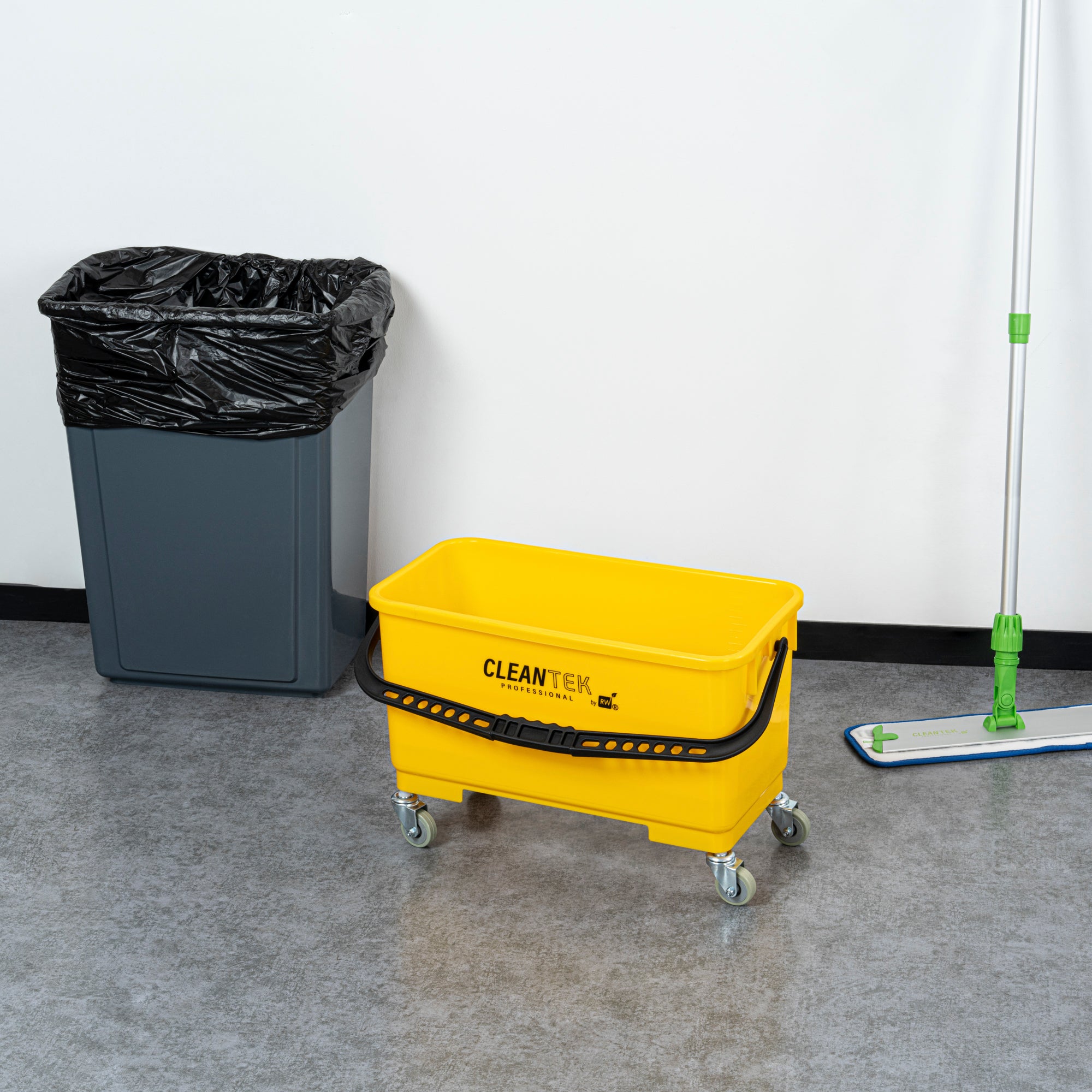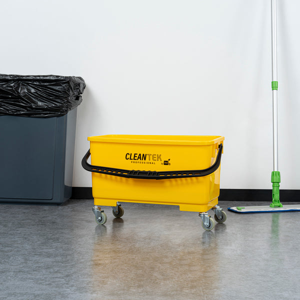 Enhance your cleaning efficiency with our Clean Tek Professional 25-quart Yellow Bucket. This cleaning bucket comes with 4 non-marking casters that glide smoothly for fast transportation without leaving scuff marks on the floors. The sieve of this plastic bucket ensures efficient drainage and filtering, allowing for quick and easy separation of liquids and solids. Crafted from durable plastic, this mop bucket is designed for long-lasting use and can withstand frequent handling and various environmental conditions. This plastic bucket with handle is ideal for washing windows, cleaning cars, finishing floors, and handling a variety of other tasks around the home or workplace. The handle of this yellow bucket is ergonomically designed for comfortable gripping and easy maneuverability, making it convenient to carry and transport. With a capacity of 25 quarts, this plastic cleaning bucket measures 22.05 inches in length by 11.61 inches in width by 13.39 inches in height. Sold in a 1 count box.