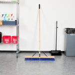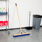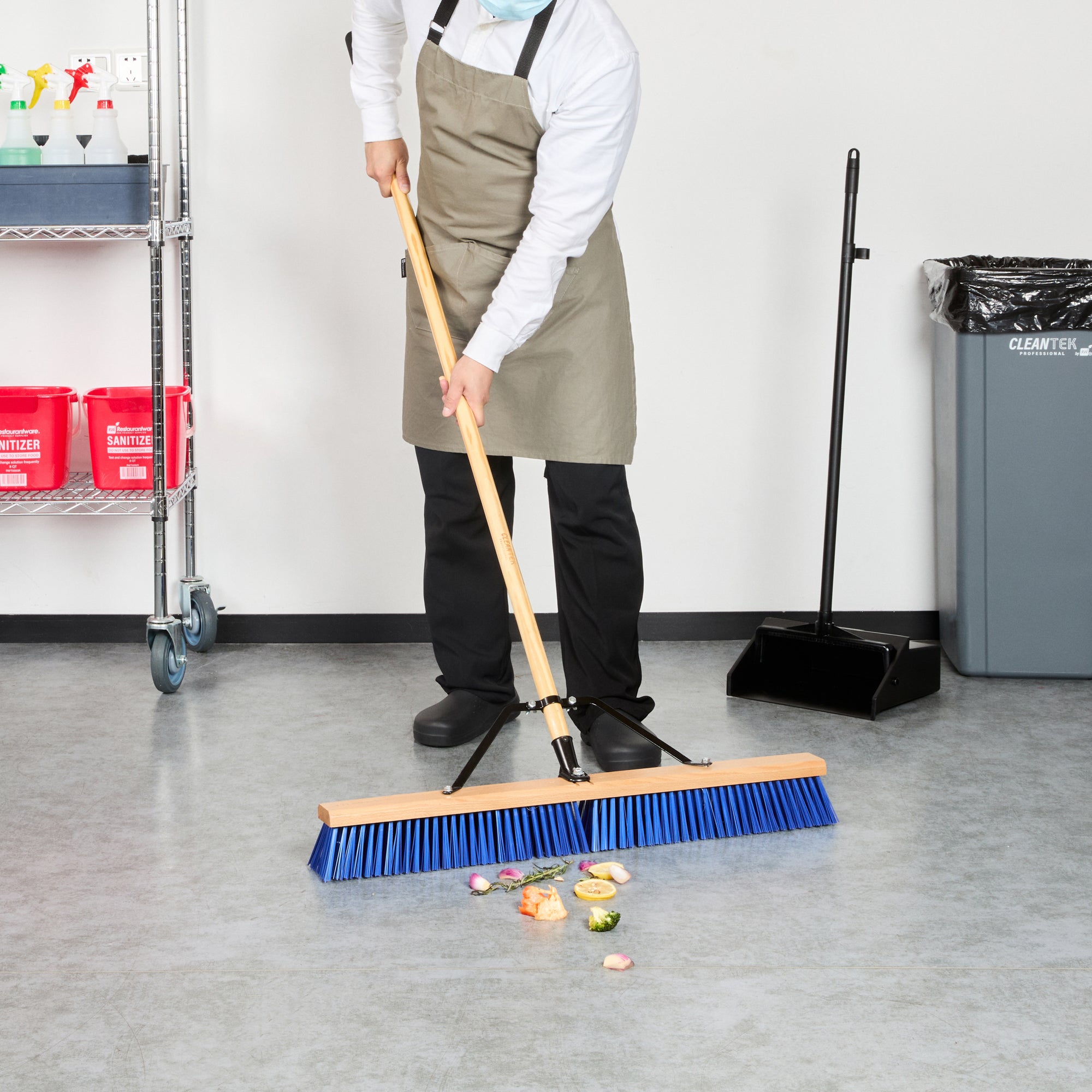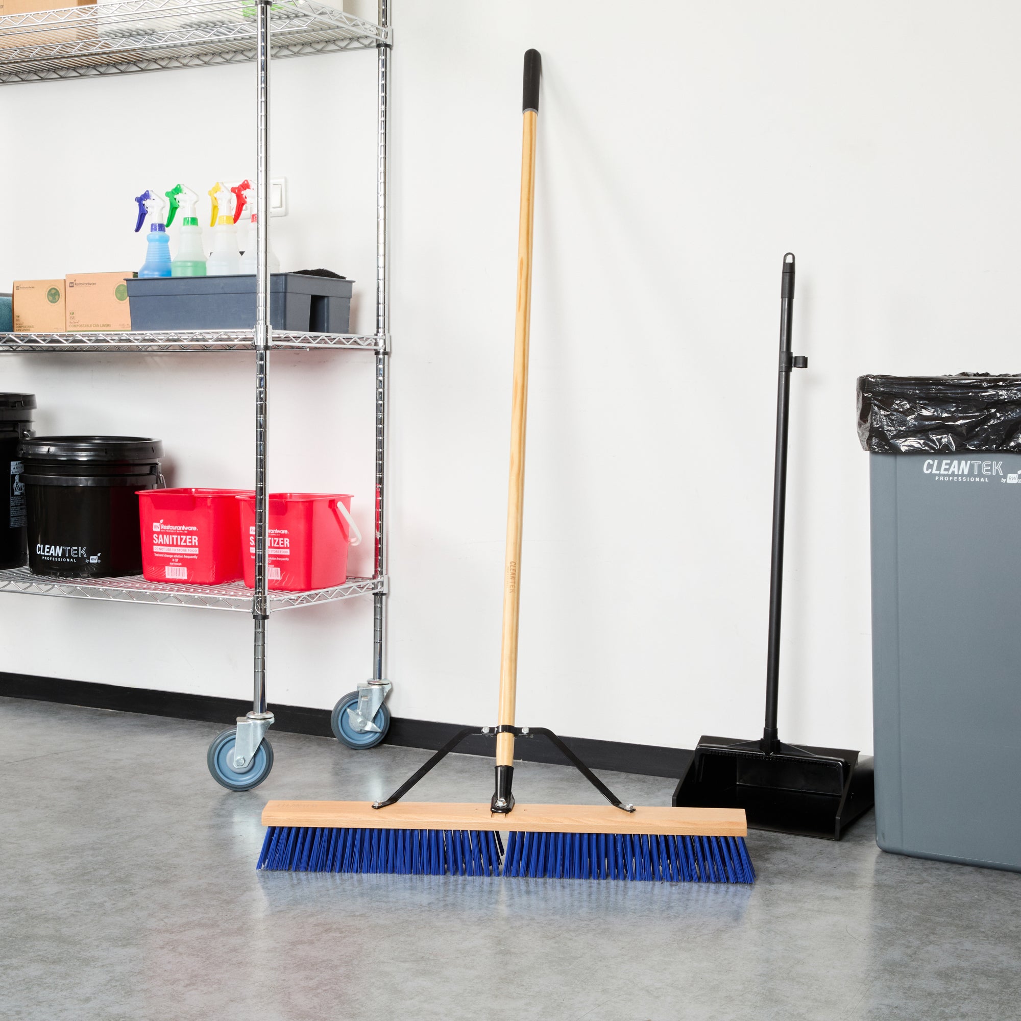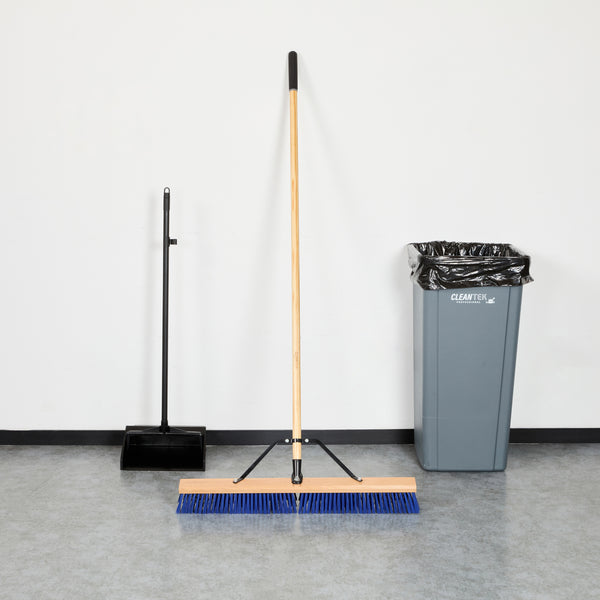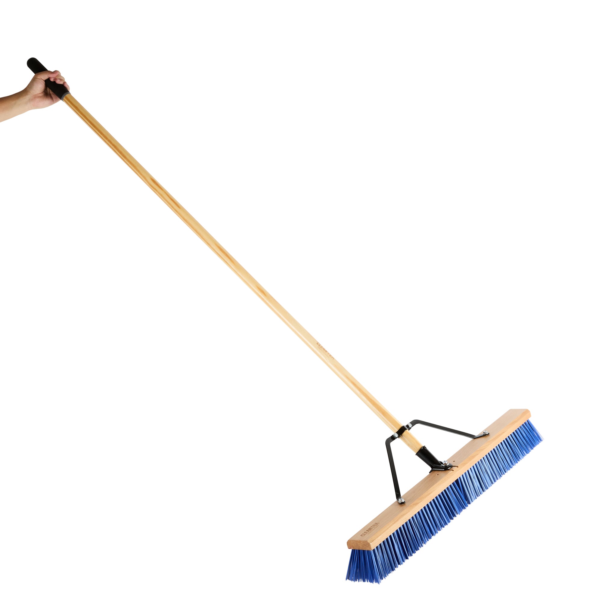 Tackle your toughest cleaning tasks with our Clean Tek Professional 30-inch Contractor / Push Broom. Equipped with heavy flagged plastic bristles, this push broom efficiently dislodges and sweeps away any stubborn dirt with ease. The 60-inch wood handle of this dust broom provides extended reach and comfortable handling, making it perfect for accessing hard-to-reach areas while reducing bending and strain. This heavy-duty broom has an ergonomic design and enables comfortable handling during extended use. The 30-inch long broom head of this contractor broom is perfect for sweeping large areas with ease. Plus, the metal braces on this sweeper broom prevent unthreading, ensuring a secure and stable connection between the handle and bristles. Measuring 64.17 inches in length by 31.5 inches in width by 3.15 inches in height, this heavy-duty dust broom is built to handle substantial cleaning workloads. Sold in a 1 count box.