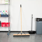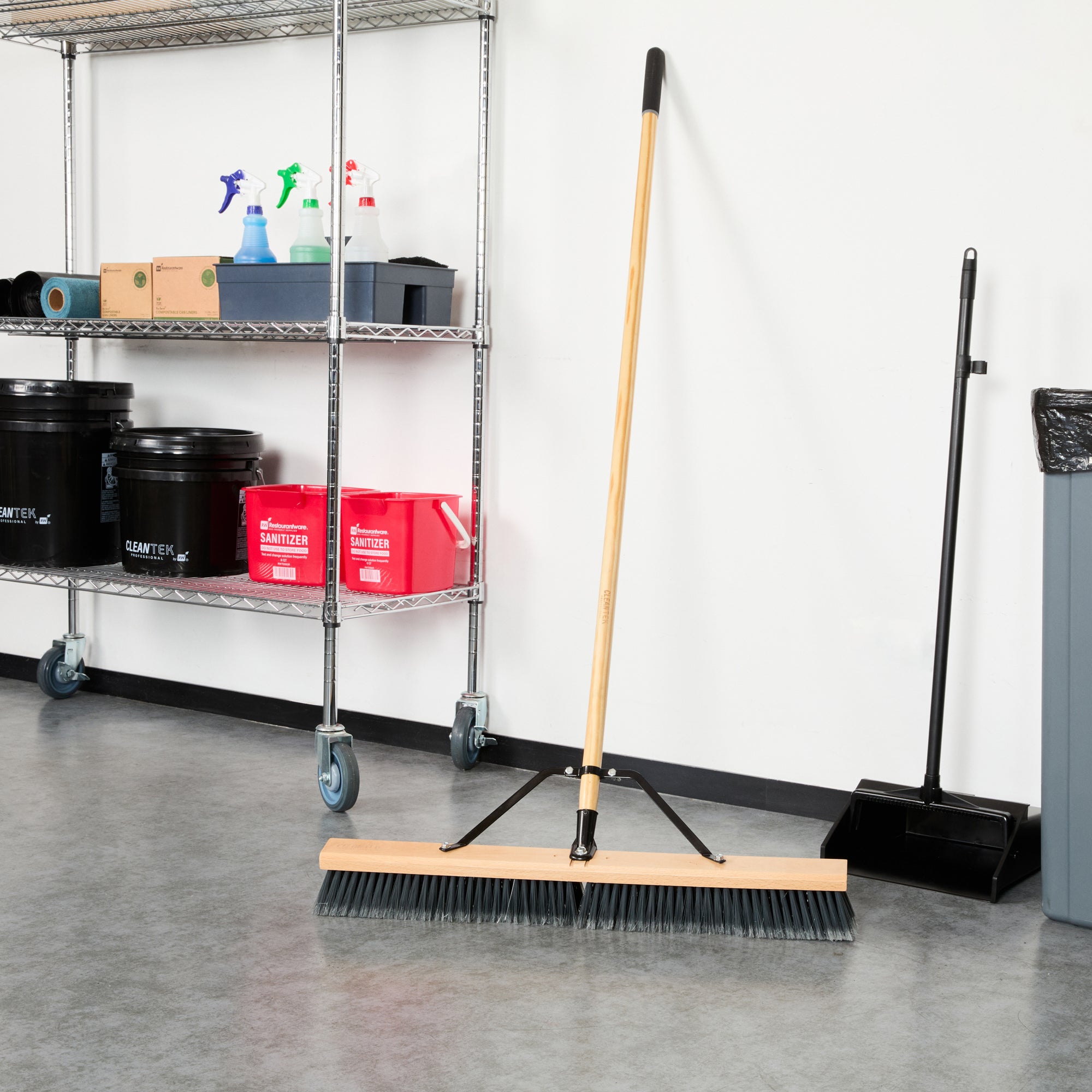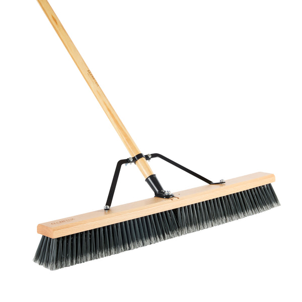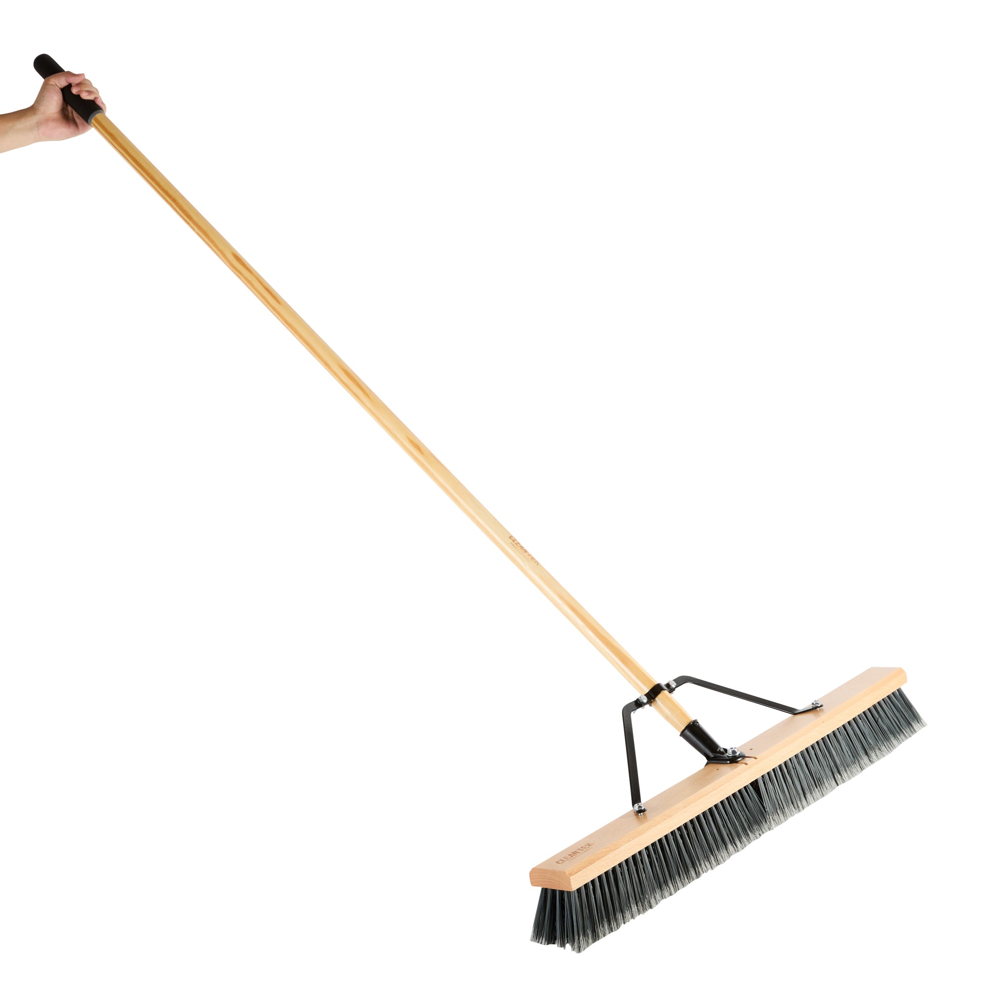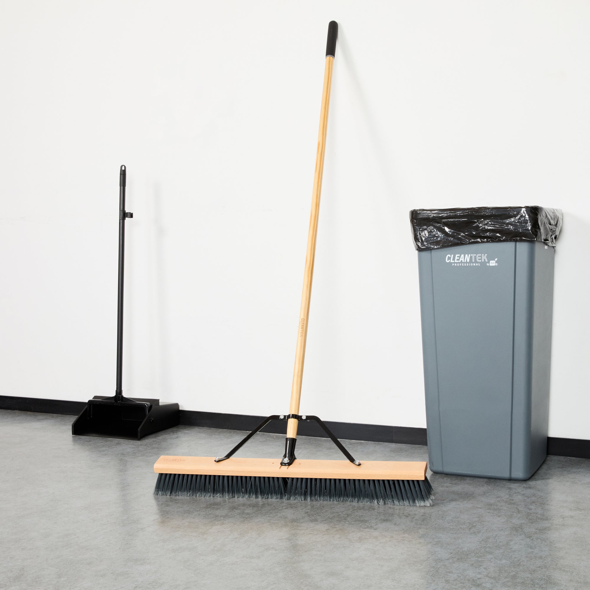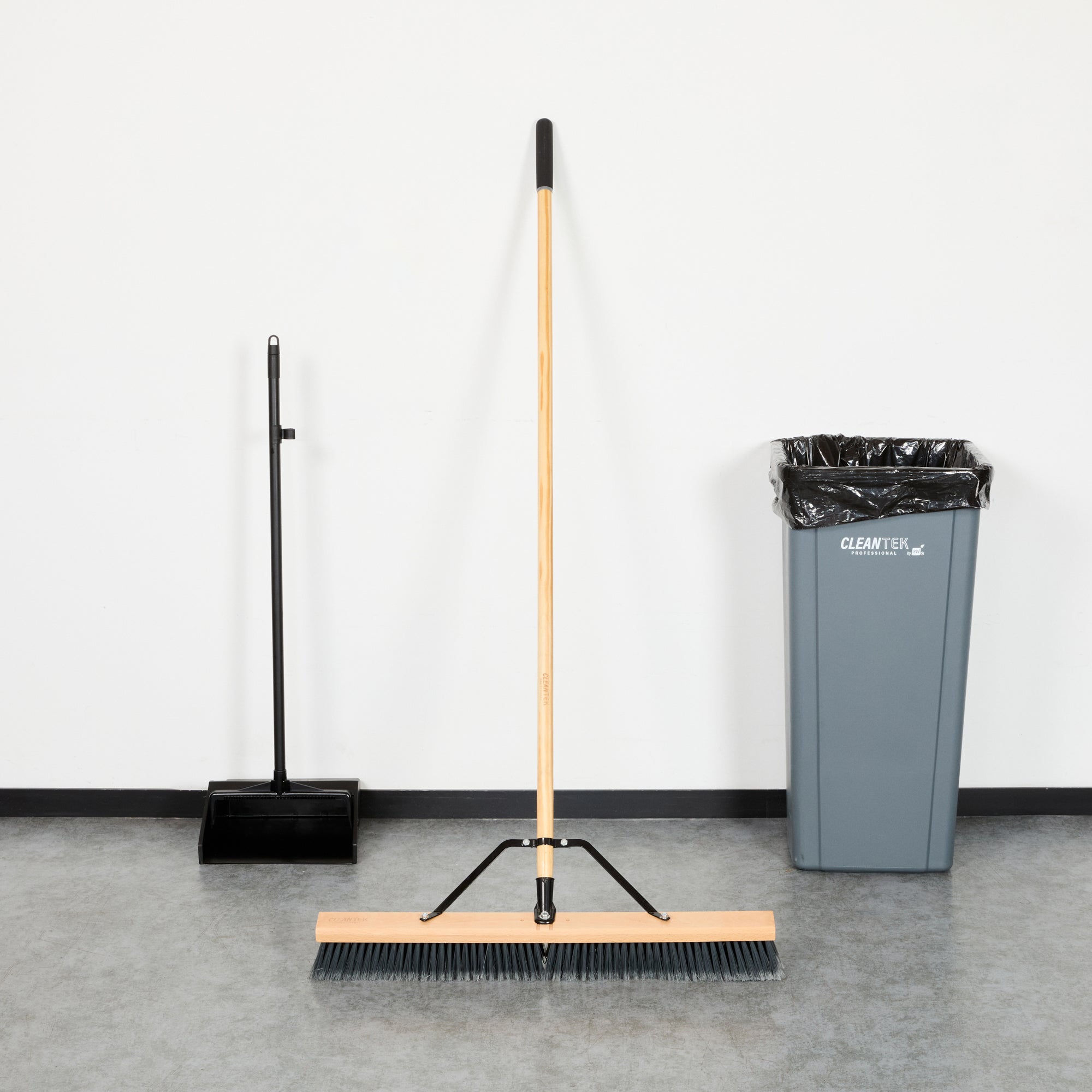Elevate your cleaning routine with our Clean Tek Professional 30-inch Contractor / Push Broom. Equipped with medium flagged plastic bristles, this push broom effectively captures dust and debris from various surfaces. The 60-inch wood handle of this sweeper broom provides extended reach to hard-to-reach areas and minimizing bending and strain. This dust broom has an ergonomic design and offers comfortable handling during extended use. With a 30-inch broom head, this heavy-duty broom efficiently sweeps large surfaces, making it perfect for commercial or industrial use. The metal braces on this broomstick prevent unthreading, ensuring a secure and stable connection between the handle and bristles for consistent reliability. With total dimensions measuring 64.17 inches in length by 31.5 inches in width by 3.15 inches in height, this contractor broom is perfectly sized for efficient cleaning. Sold in a 1 count box.