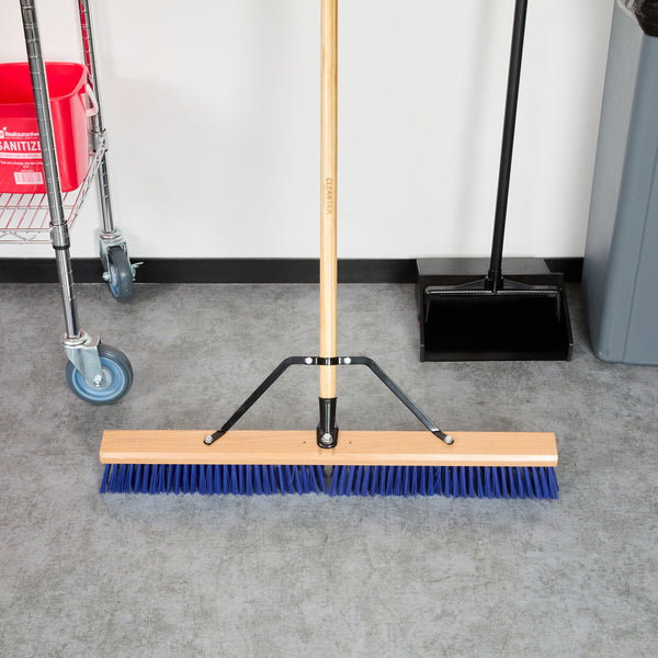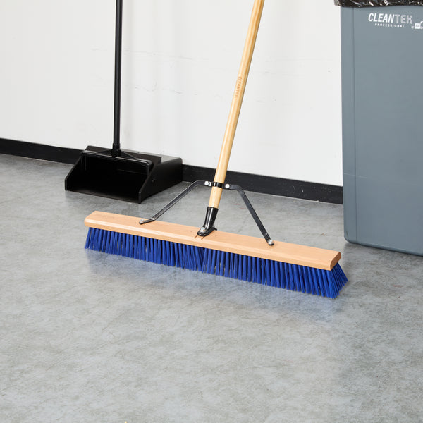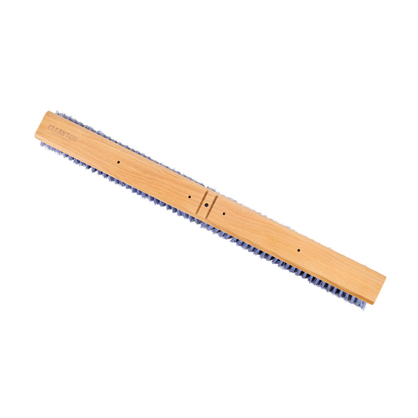 Clean any foodservice establishments with our Clean Tek Professional 30-inch Hardwood Contractor / Push Broom Head. Equipped with heavy flagged bristles, this broom head is designed to efficiently dislodge and sweep larger debris from rough or uneven surfaces. The plastic bristles of this push broom head are durable and provide long-lasting performance. This dust broom head can be easily paired with a compatible handle (SKU: RWT1860B) and brace (SKU: RWT1861B) for a comfortable cleaning experience. Featuring a non-absorbent wood block, this heavy-duty dust broom head ensures longevity even with consistent use. With dimensions measuring 29.92 inches in length by 2.48 inches in width by 3.86 inches in height, this wide broom head is perfect for large cleaning areas. Sold in a 1 count box. Handle and broom brace are available and sold separately.