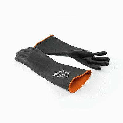 Ensure safe food handling with reliable protective gear. The Clean Tek Professional Chemical Resistance Industrial Rubber Glove offers enhanced chemical resistance, providing a secure way to handle food, acids, and alkalis. These industrial rubber gloves feature a rolled cuff that prevents slips, ensuring uninterrupted task handling for culinary professionals. Their heavy-duty design offers extra protection against cooking spills, making them an essential tool for restaurant kitchens. Measuring 13.78 inches in length, these gloves are crafted from durable rubber, giving them a secure grip and long-lasting performance in demanding environments. Ideal for use as a rubber work glove, they help maintain safety and efficiency in foodservice operations. Equip your kitchen staff with a dependable chemical resistant glove for enhanced safety and productivity. You will receive 1 pair of gloves per order.