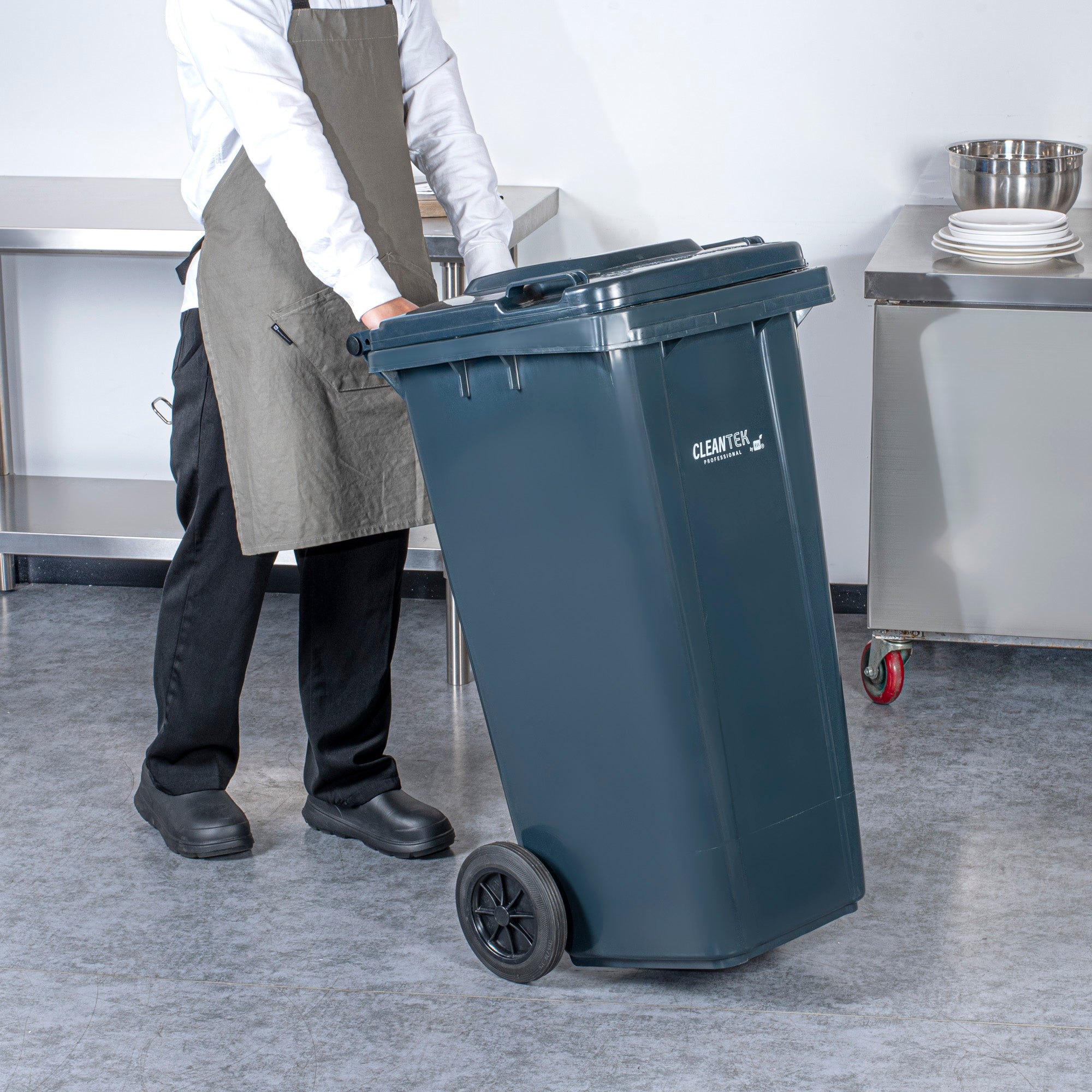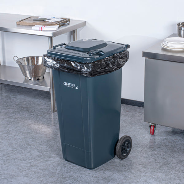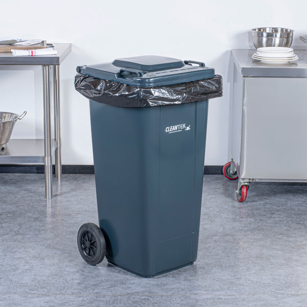 Optimize your waste management with our Clean Tek Professional 32-gallon Rectangle Gray Plastic Wheeled Trash Can. Featuring a hinged lid, this rolling trash bin helps contain odors and maintain a tidy appearance, enhancing cleanliness in any space. Pair this trash bin with wheels with the compatible step-on attachment (SKU: RWT2030S) for hands-free operation, making waste disposal effortless and hygienic. Equipped with heavy-duty wheels, this trash can with wheels easily maneuvers across various surfaces, providing convenience during transportation and disposal. The ergonomic molded-in handle of this outdoor trash can provides a comfortable grip and effortless maneuverability, ensuring reliable steering and enhanced control for both pushing and pulling. Made from premium plastic, this rolling garbage can withstand heavy-duty use at your foodservice establishment. Boasting a 32-gallon capacity, this rolling trash can is perfect for high-volume waste disposal, making it ideal for busy environments where frequent emptying is not feasible. The classic gray color of this trash cart with wheels blends in with most decor. Measuring 22.44 inches in length by 18.9 inches in width by 37.4 inches in height, this plastic bin has an ample capacity of 32 gallons. Sold in a 1 count box. Step-on attachment is available and sold separately.