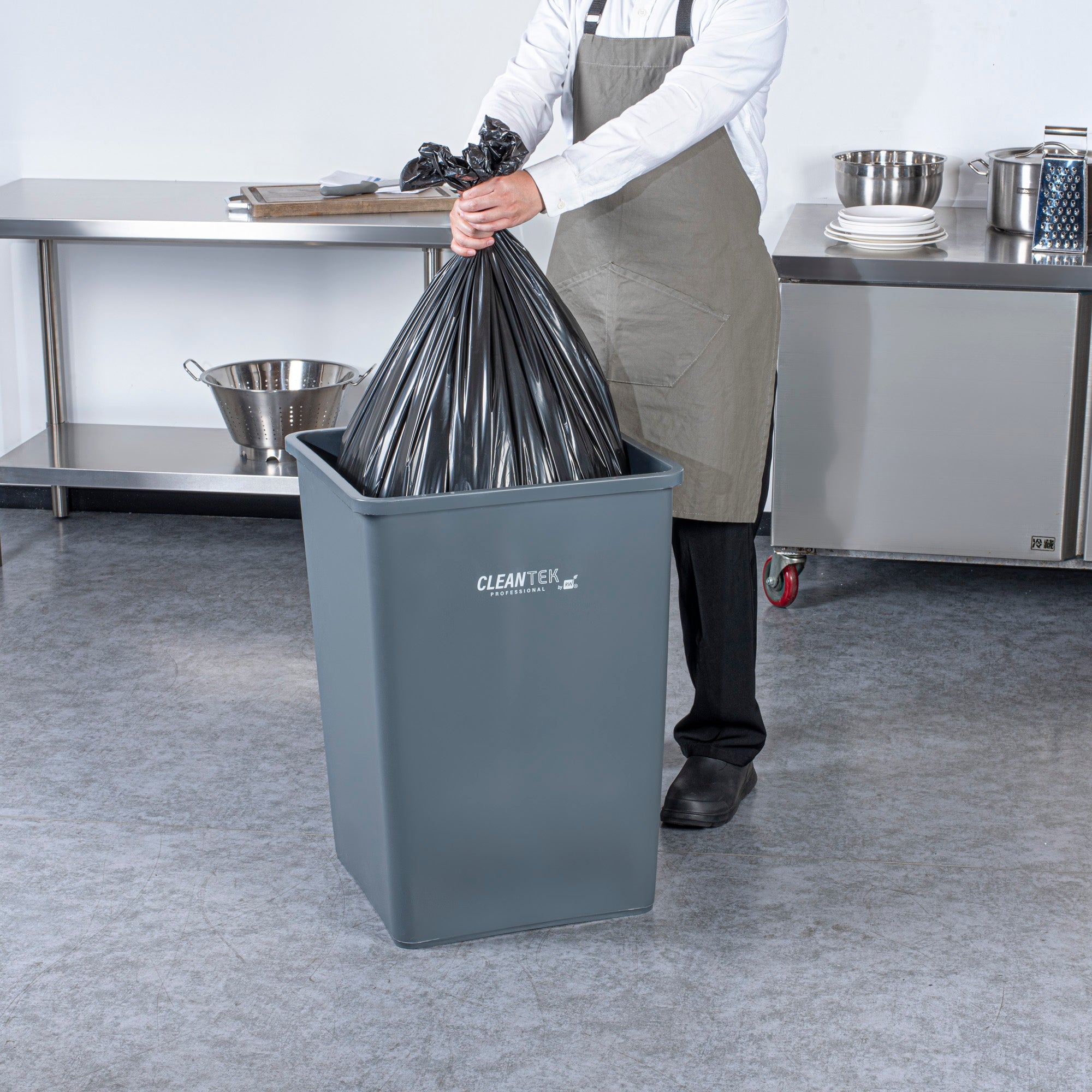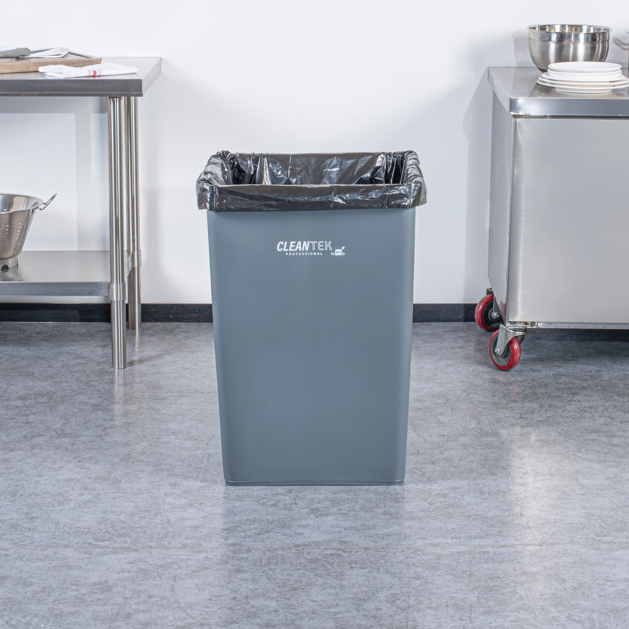 Improve waste management efficiency with our Clean Tek Professional 35-gallon Square Gray Plastic Trash Can. Made from premium HDPE plastic, this trash can withstands heavy-duty use at your foodservice establishment. With its square design, this plastic bin fits neatly into tight corners, maximizing space efficiency in any room. Boasting a 35-gallon capacity, this garbage can provides ample space for high-volume waste disposal. The classic gray color of this outdoor trash can blends in with most decor, seamlessly fitting into any environment. Measuring 19.49 inches in length by 19.49 inches in width by 27.64 inches in height, this garbage bin can hold up to 35 gallons and is perfect for various settings. Sold in a 1 count box.