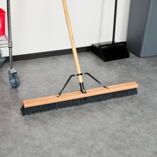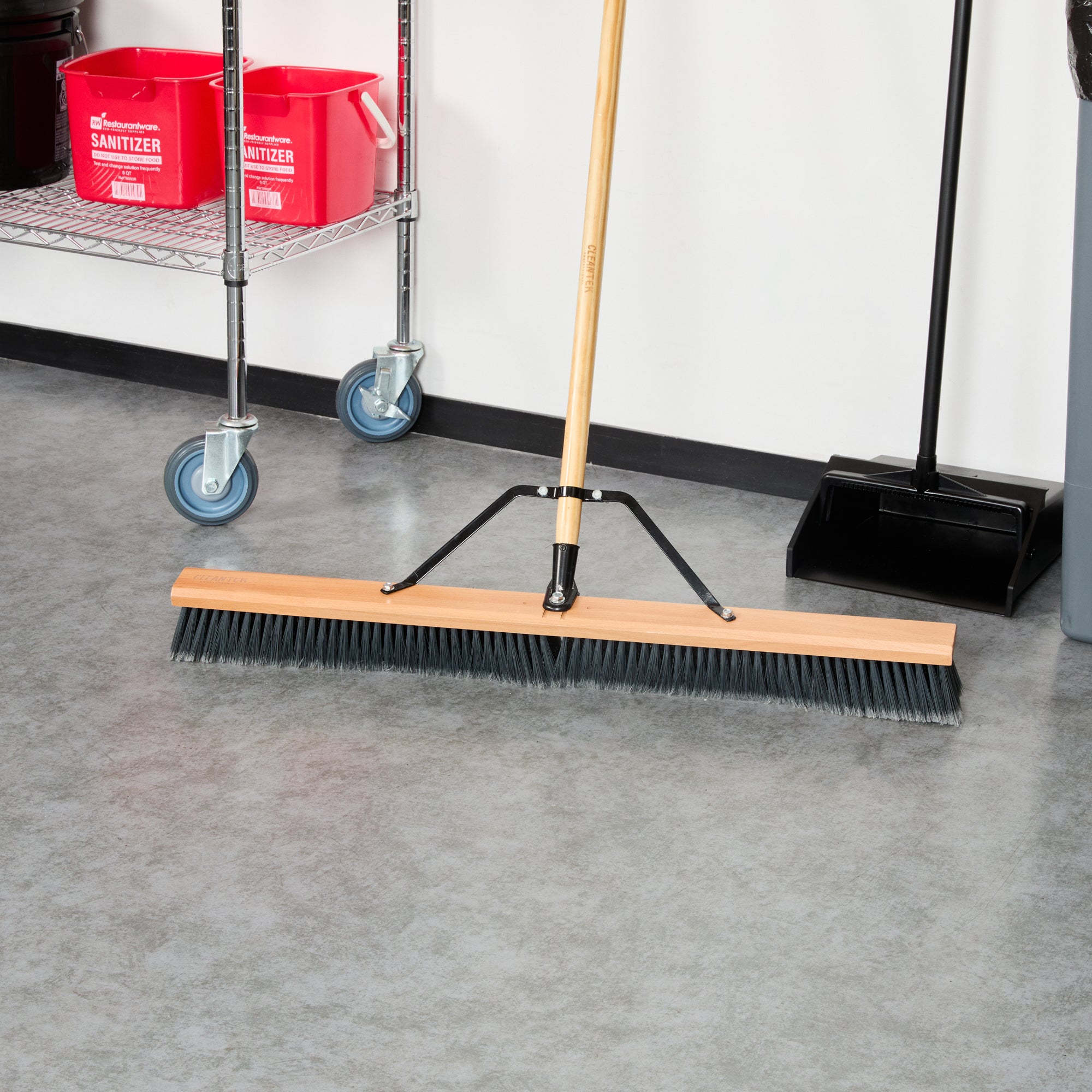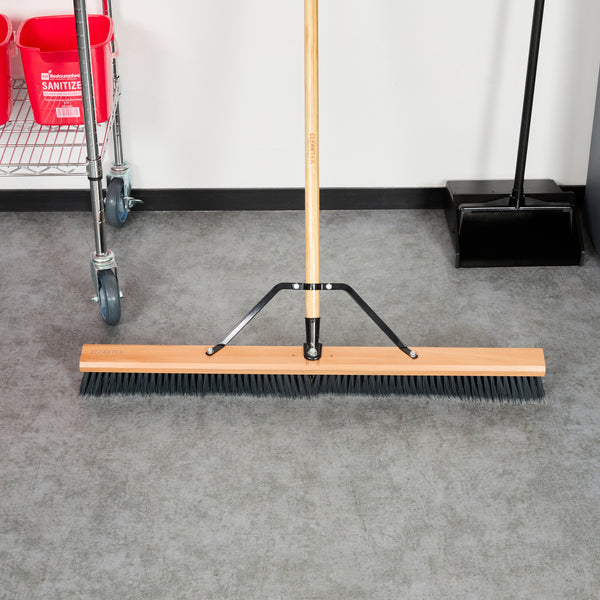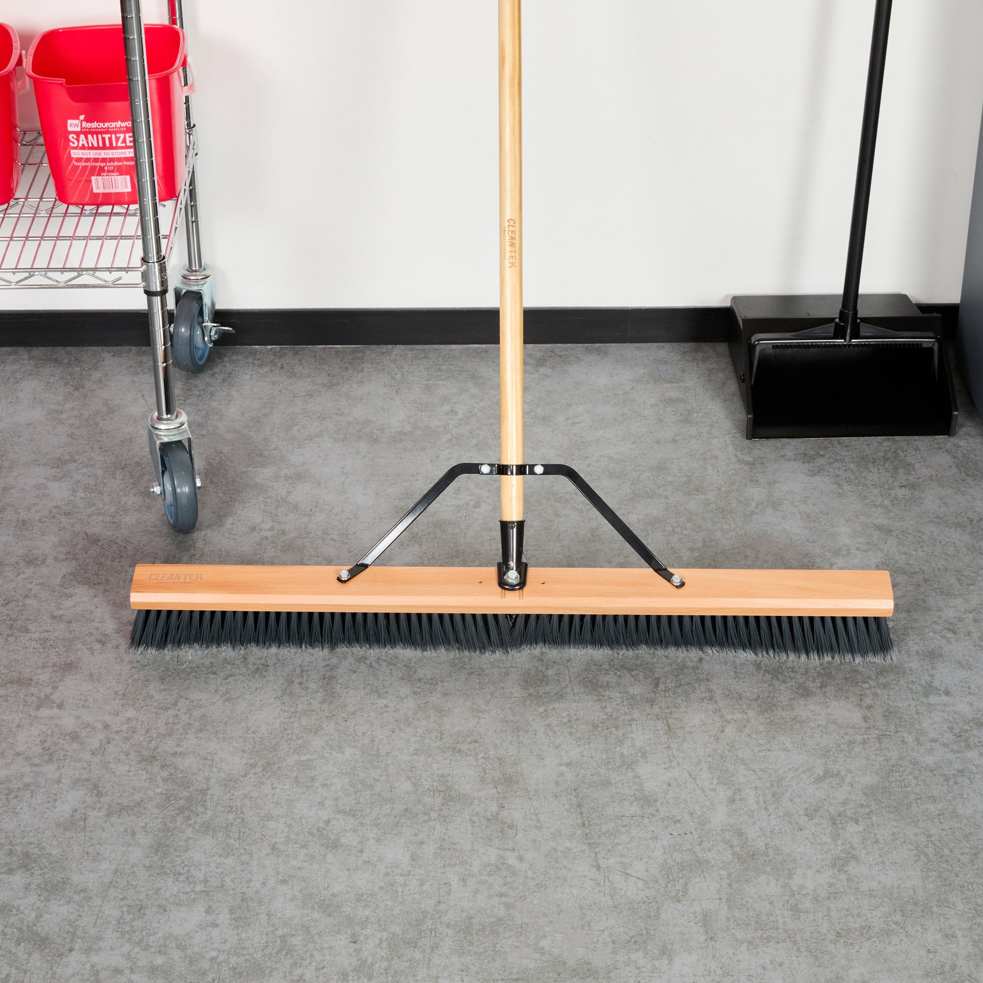 Elevate your cleaning routine with our Clean Tek Professional 36-inch Hardwood Contractor / Push Broom Head. Equipped with medium flagged bristles, this push broom head offers versatile cleaning performance, effectively capturing dust and debris from various surfaces. Pair this broom head with compatible handle (SKU: RWT1860B) and brace (SKU: RWT1861B) for robust cleaning performance. The durable bristles on this heavy-duty push broom head provide long-lasting use at your foodservice establishments or warehouse. With a non-absorbent wood block, this dust broom head ensures durability and longevity with consistent use. Measuring 35.83 inches in length by 2.48 inches in width by 3.86 inches in height, this wide broom head is ideal for tackling large areas with ease. Sold in a 1 count box. Handle and broom brace are available and sold separately.