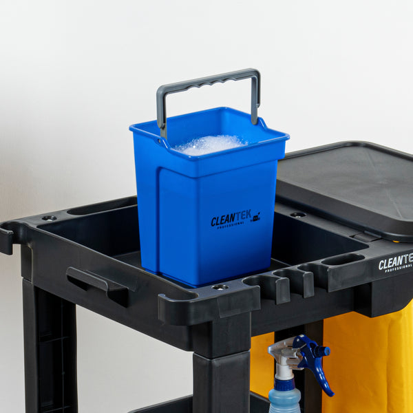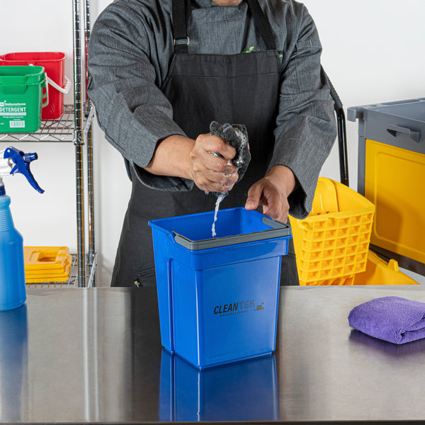 Effortlessly tackle your cleaning tasks with our Clean Tek Professional 4-quart Blue Cleaning Bucket. Made from sturdy plastic, this cleaning bucket is built to withstand heavy use and resist damage, ensuring long-lasting durability. This plastic pail is compact in size, making it easy to store and maneuver in tight spaces, providing convenience for various tasks. The bright blue color of this plastic bucket with handle makes it easily identifiable, reducing the chance of misplacement or mix-ups. Featuring an attached handle, this plastic bucket with handles is easy to carry and maneuver, offering added convenience for transporting and using the bucket. With a capacity of 4 quarts, this blue bucket measures 7.09 inches in length by 6.3 inches in width by 8.46 inches in height, making it ideal for all your cleaning needs. Sold in a 1 count box.