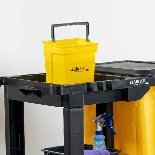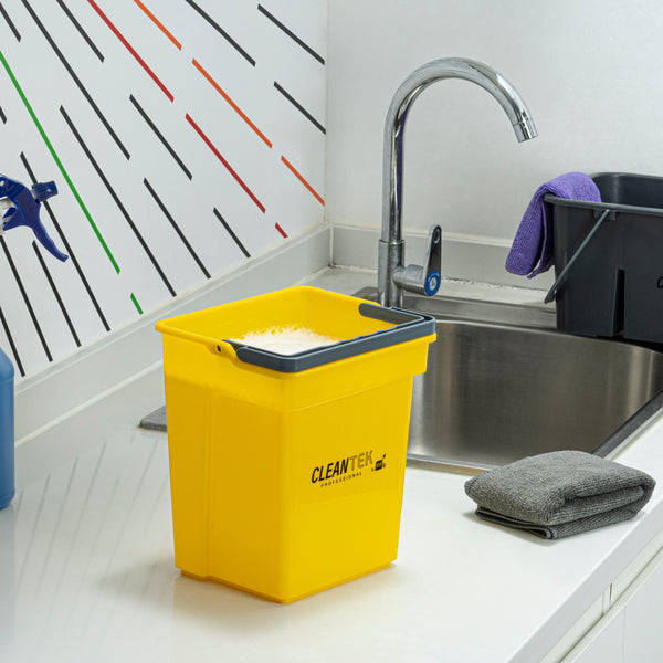 Streamline your cleaning tasks with our Clean Tek Professional 4-quart Yellow Cleaning Bucket. Made from sturdy plastic, this cleaning bucket is built to withstand heavy use and resist damage, ensuring long-lasting durability. The compact size of this plastic pail makes it easy to store and maneuver, fitting into tight spaces and making it convenient for various tasks. Bright yellow in color, this plastic bucket with handle is easily identifiable, reducing the chance of misplacement or mix-ups in busy environments. Equipped with an attached handle, this plastic bucket ensures easy carrying and maneuvering, providing added convenience for transporting and using the bucket. With a capacity of 4 quarts, this yellow bucket measures 7.09 inches in length by 6.3 inches in width by 8.46 inches in height. Sold in a 1 count box.