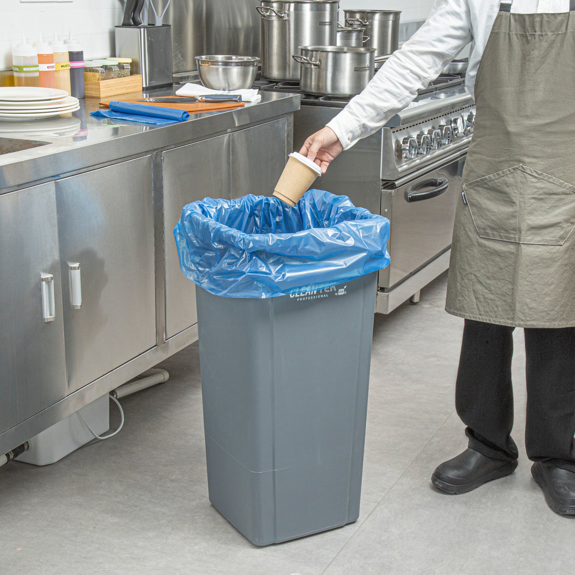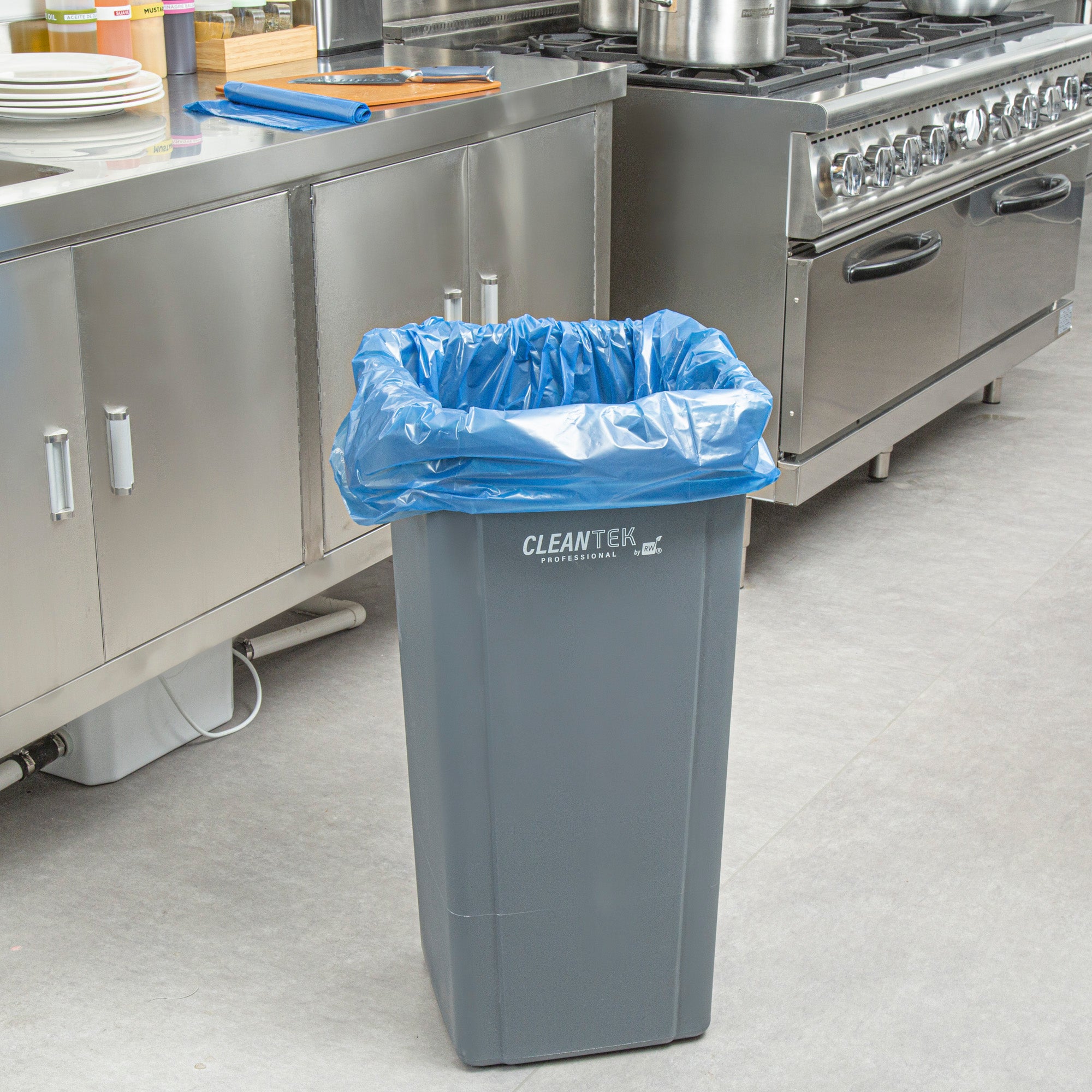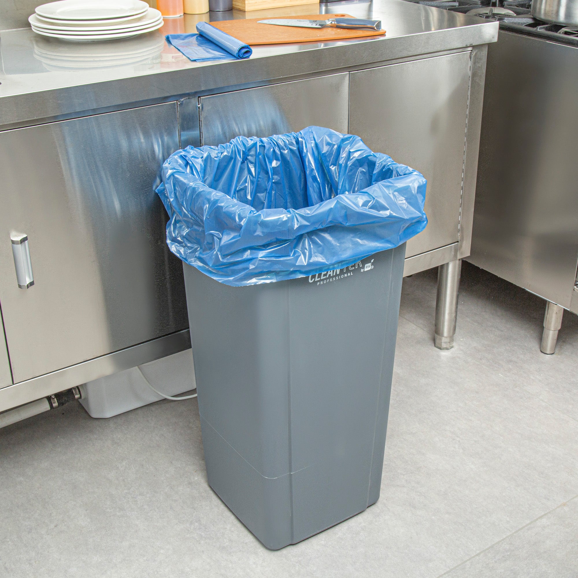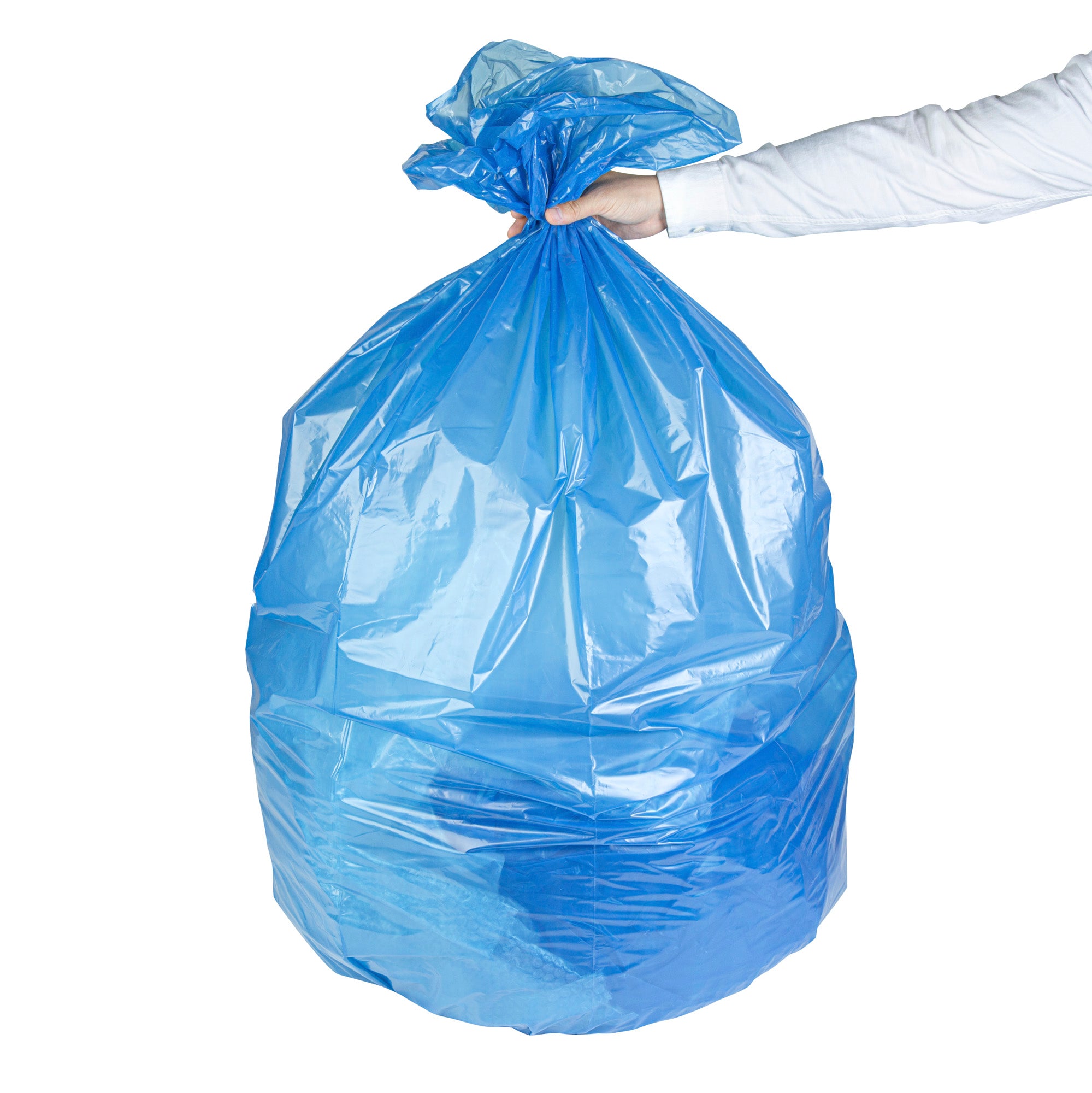 Streamline waste management with these versatile and durable bags. Clean Tek Professional Puncture-Resistant High-Capacity Blue Garbage Bags are crafted from robust plastic material that boasts linear low density, ensuring resistance against rough transport conditions, making them ideal for handling jagged or sharp waste. Designed with a leakproof construction, these blue garbage bags efficiently prevent spills during deliveries. Featuring heavy-duty construction, these bags support bulky kitchen waste, while their star seal bottom trash bag design enhances their carrying capacity and prevents unwanted leaks. With dimensions of 40 inches in length and 46 inches in width, these bags are perfect for accommodating larger volumes of refuse, aligning with the needs of eco-conscious businesses seeking recyclable solutions. Enhance your establishment's waste disposal system with these heavy-duty recycling bags. Each order includes 100 Clean Tek Professional Puncture-Resistant High-Capacity Blue Garbage Bags.