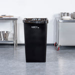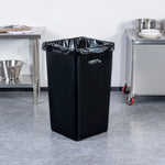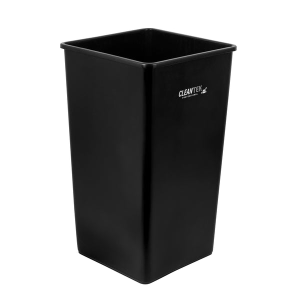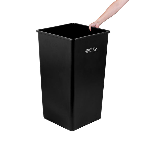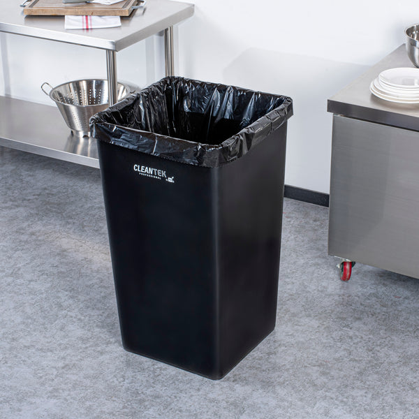 Optimize waste management at your foodservice establishment with our Clean Tek Professional 50-gallon Square Black Plastic Trash Can. Made from premium HDPE plastic, this outdoor trash can withstands heavy-duty use and ensures longevity. The square design of this trash can allows it to fit neatly into tight corners, maximizing space efficiency in any room. Boasting a 50-gallon capacity, this garbage can provides ample storage for large volumes of waste, ideal for high-traffic areas. The classic black color of this garbage bin blends in seamlessly with most decor, maintaining a neat appearance. Measuring 19.49 inches in length by 19.49 inches in width by 34.13 inches in height, this plastic bin can hold up to 50 gallons and offers substantial storage without taking up unnecessary space. Sold in a 1 count box.