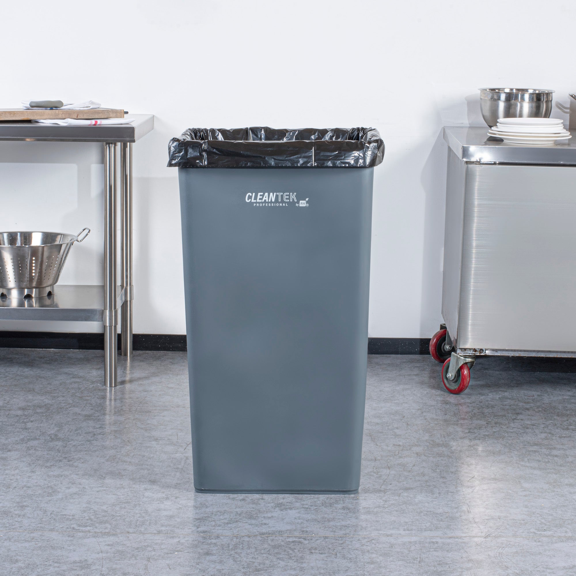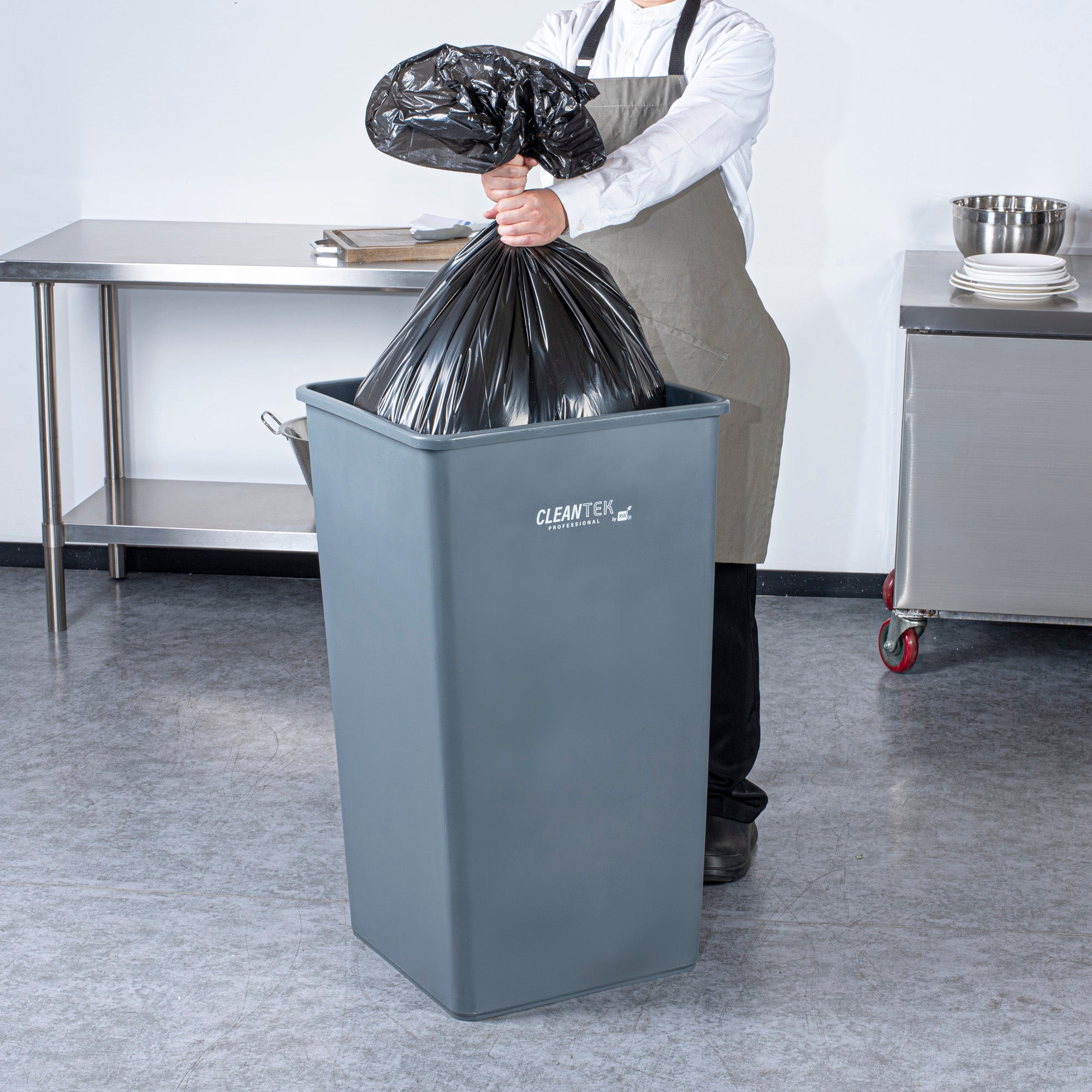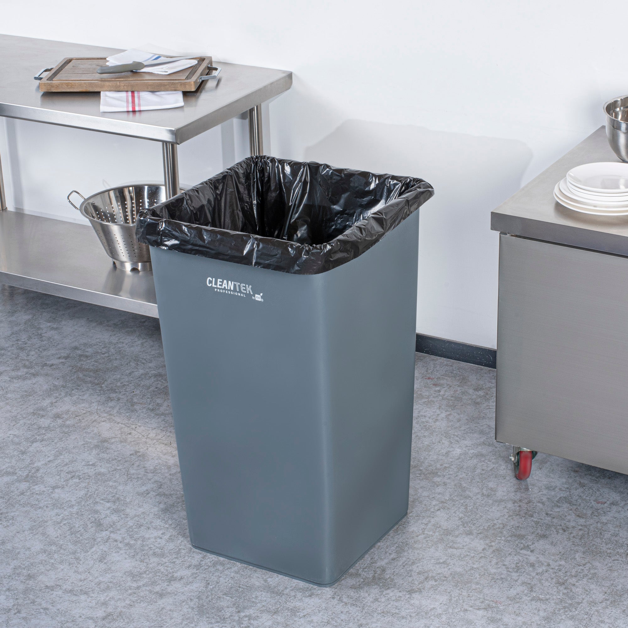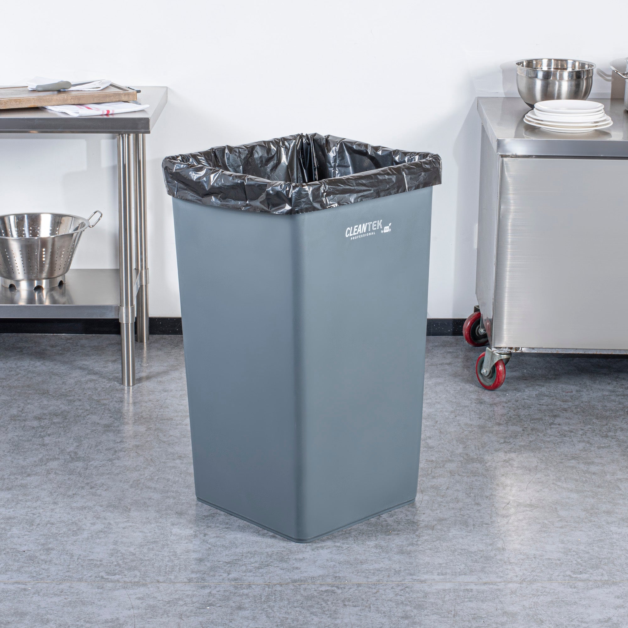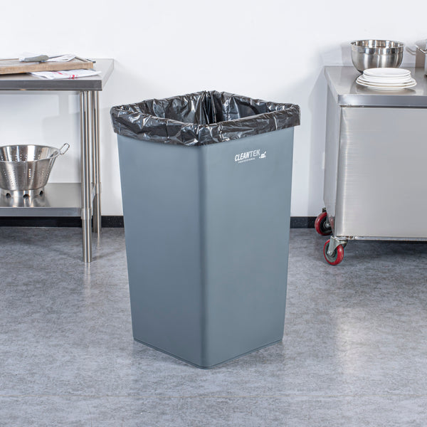 Optimize your waste management with our Clean Tek Professional 50-gallon Square Gray Plastic Trash Can. Made from premium HDPE plastic, this garbage can is designed to withstand heavy-duty use in foodservice establishments. The square design of this garbage bin ensures it fits neatly into tight corners, maximizing space efficiency in any room. Boasting a 50-gallon capacity, this trash can provides ample storage for large volumes of waste, making it ideal for high-traffic areas. The classic gray color of this outdoor trash can blends seamlessly with most decor, offering a professional look. Measuring 19.49 inches in length by 19.49 inches in width by 34.13 inches in height, this plastic bin has a capacity of 50 gallons and is the perfect solution for maintaining cleanliness in your establishment. Sold in a 1 count box.