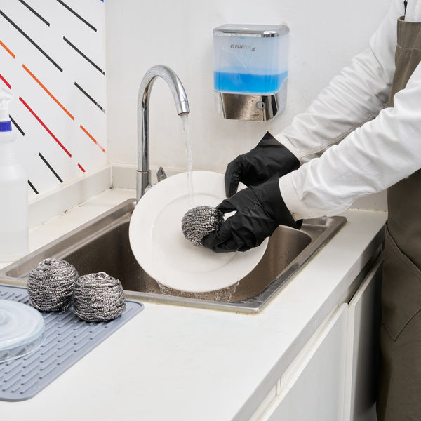 Ensure impeccable cleanliness with corrosion-resistant cleaning tools. The Clean Tek Professional Stainless Steel Scrubber offers a reliable solution for heavy-duty kitchen cleaning tasks, thanks to its durable stainless steel construction that resists corrosion and harsh cleaning chemicals. This stainless steel scrubber, measuring 3.15 inches in length, provides a secure grip that simplifies handling during challenging scouring tasks, making it an essential metal scouring pad for commercial kitchens. Its heavy-duty design excels in removing baked-on food from cookware, ensuring that pots, pans, and grills are left spotless and ready for use. Packaged in a convenient 100-count box, these scrubbers are perfect for high-volume kitchens, reducing the need for frequent reordering and providing foodservice professionals with a dependable grill scrubber. Enhance your kitchen's efficiency and maintain impeccable hygiene with this versatile cleaning tool. Sold in a 10 count box.