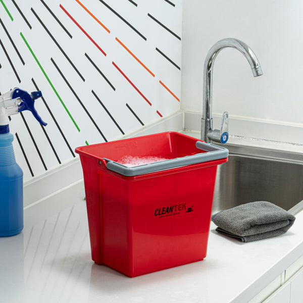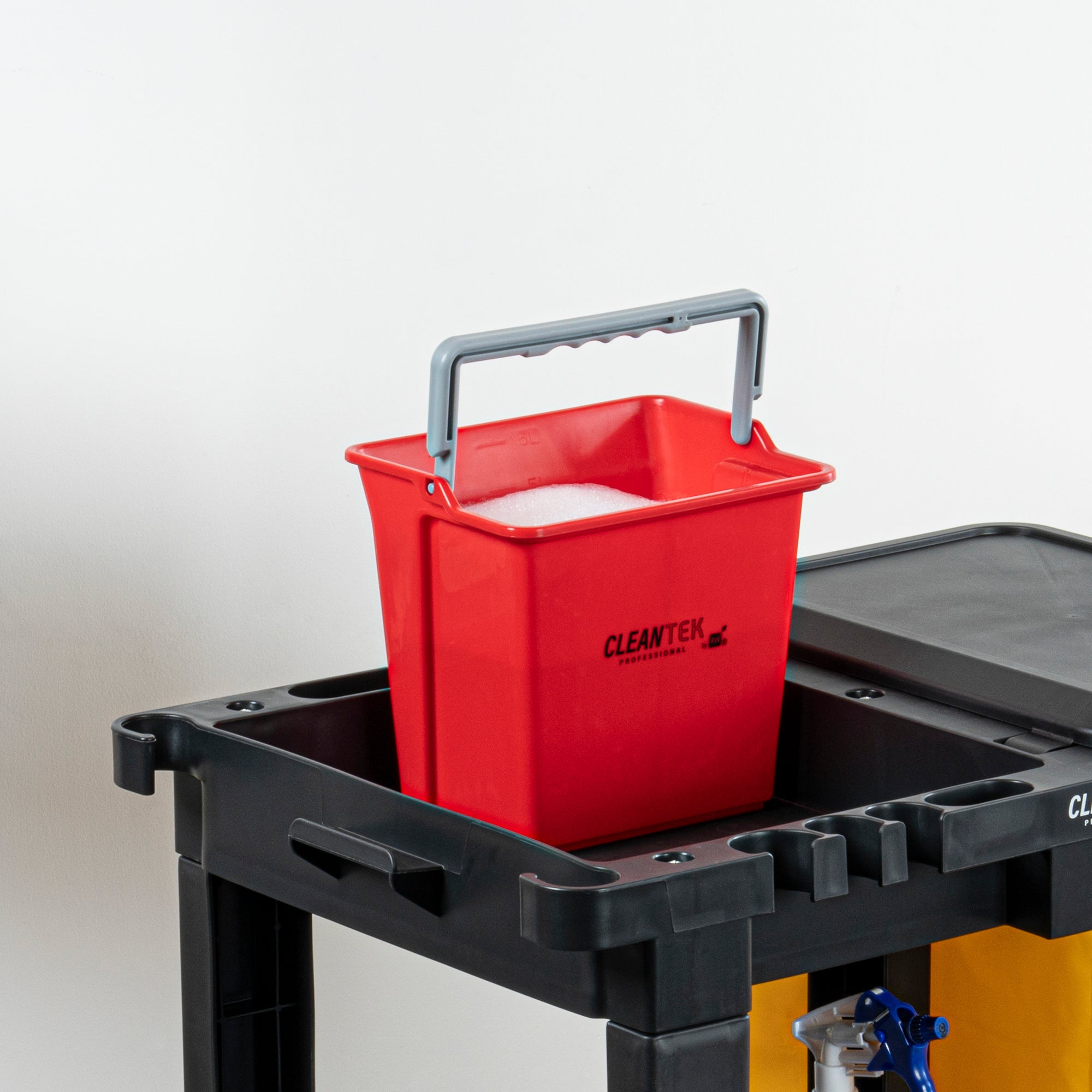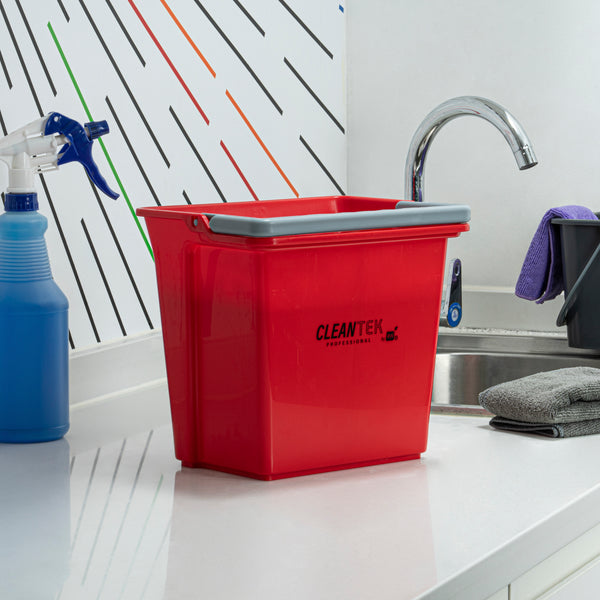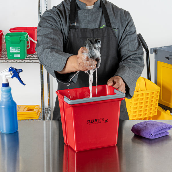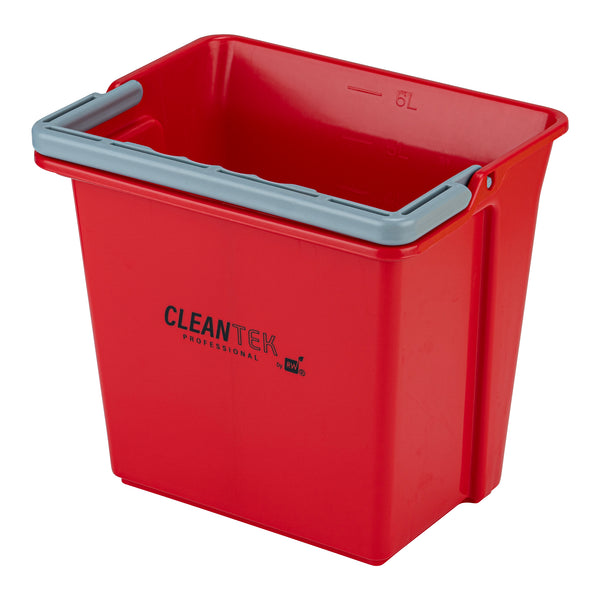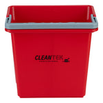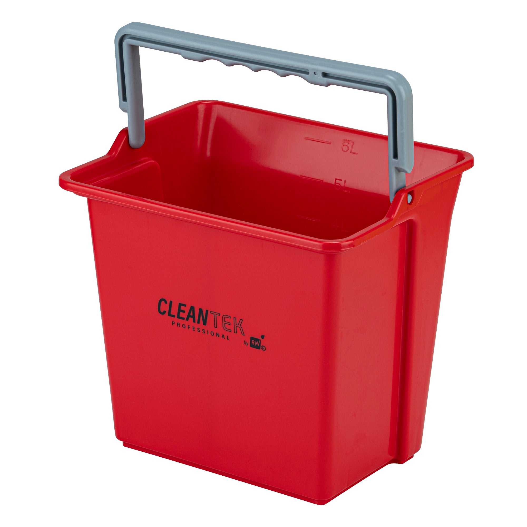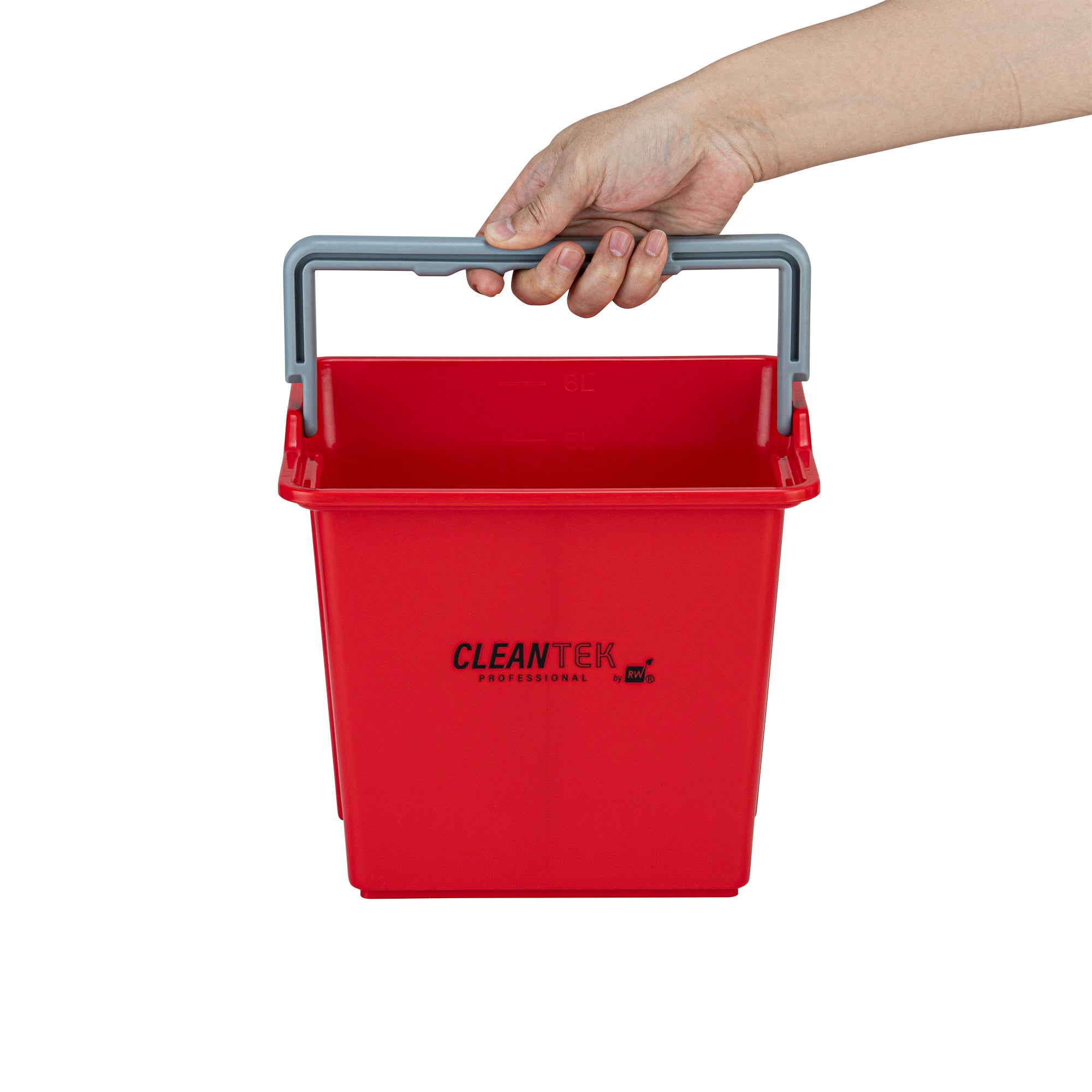 Enhance your cleaning efficiency with our Clean Tek Professional 6-quart Red Cleaning Bucket. This cleaning bucket is made from sturdy plastic, ensuring it withstands heavy use and resists damage for long-lasting durability. Ideal for foodservice environments, this compact plastic pail is easy to store and maneuver, fitting into tight spaces to accommodate various tasks. The bright red color of this plastic bucket with handle helps to easily identify the bucket, reducing the chance of misplacement or mix-ups in busy kitchens. Equipped with an attached handle, this plastic bucket ensures easy carrying and maneuvering, providing added convenience for transporting and using the bucket. This red bucket measures 9.37 inches in length by 7.09 inches in width by 8.66 inches in height and can hold up to 6 quarts, making it perfect for professional cleaning tasks. Sold in a 1 count box.