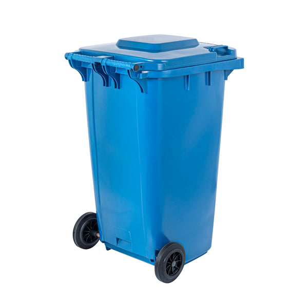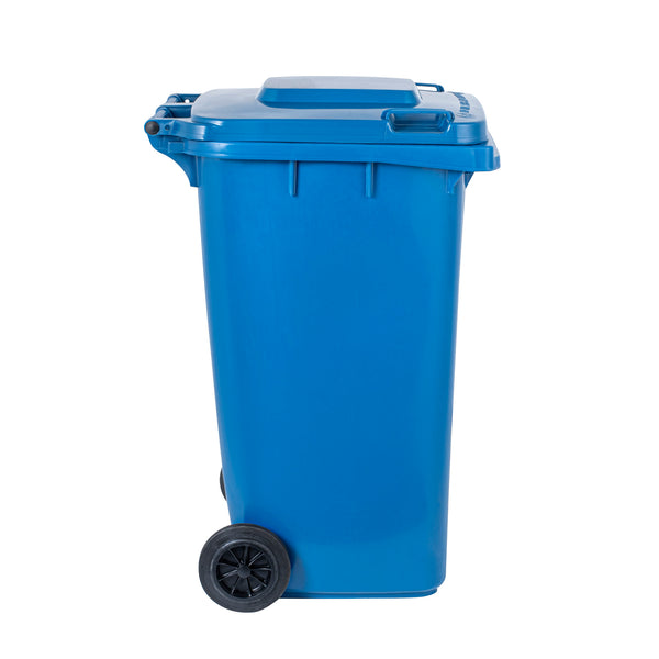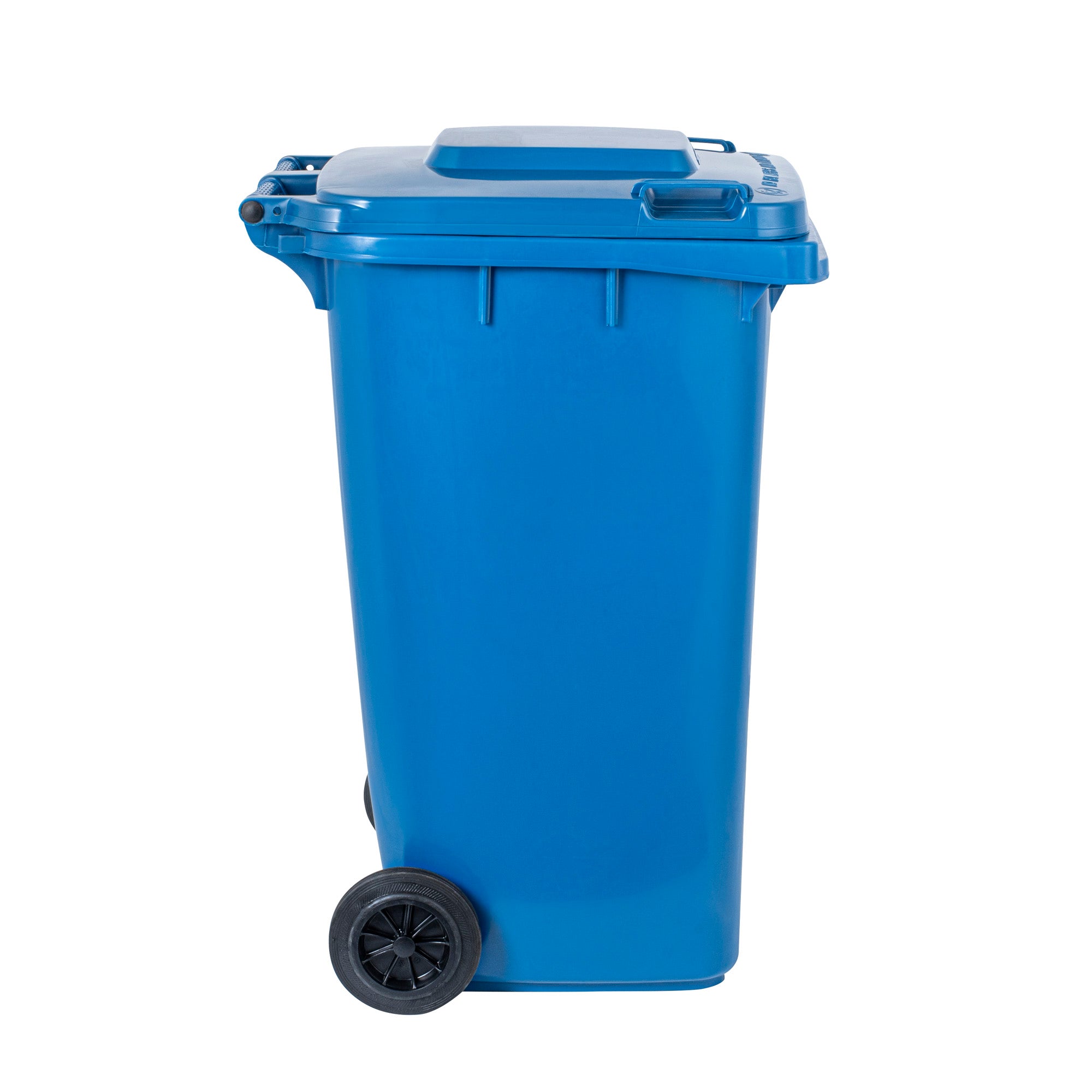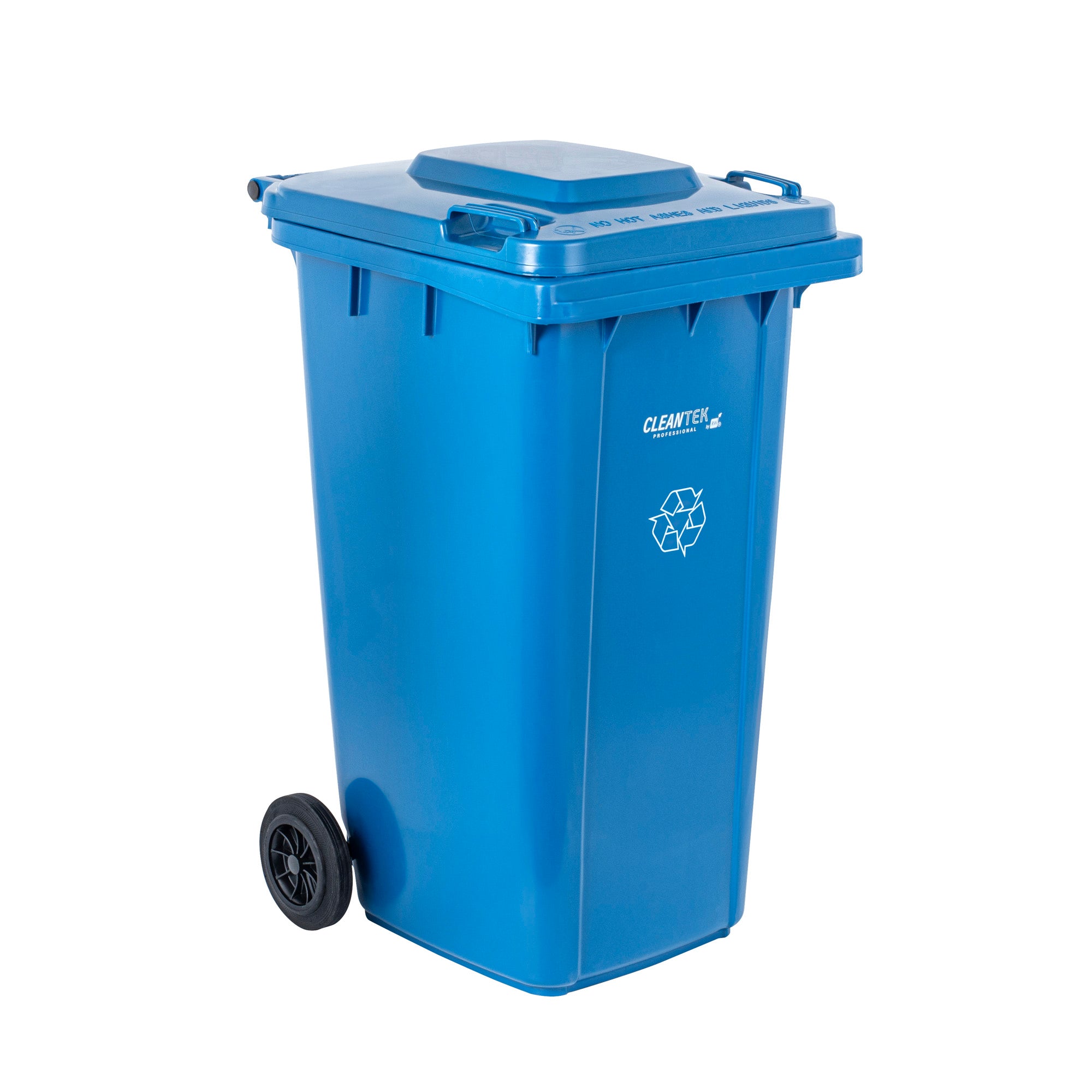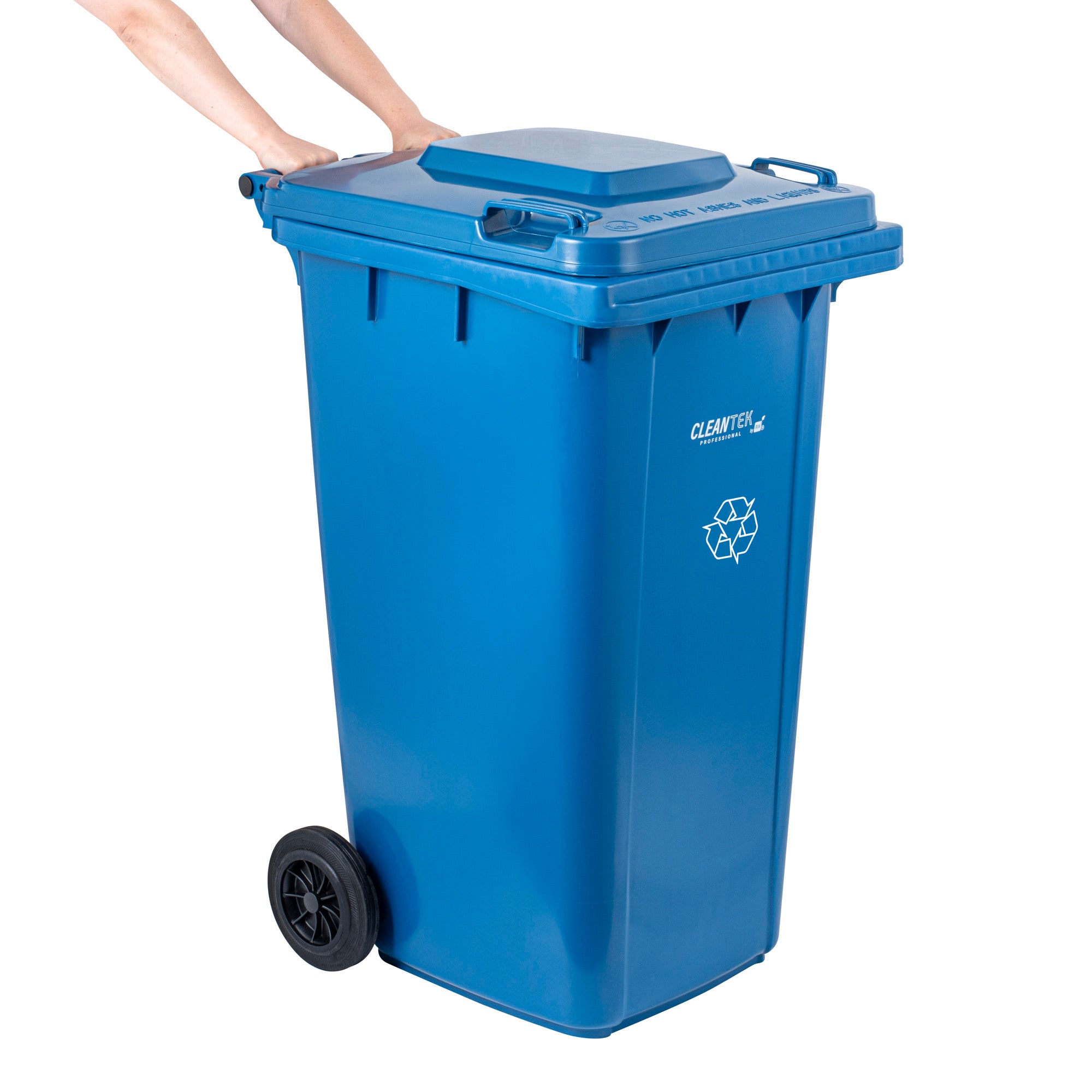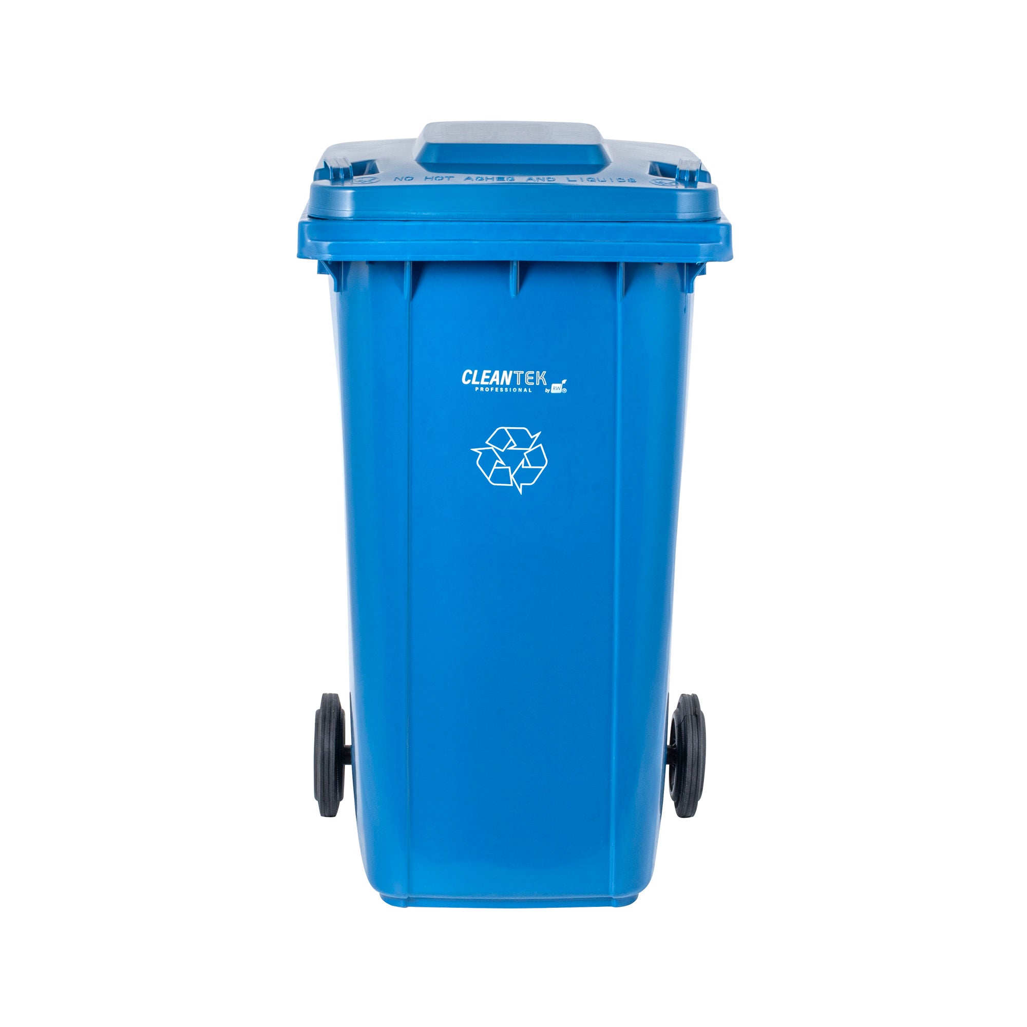 Ensure a cleaner, more efficient workspace with our Clean Tek Professional 64-gallon Rectangle Blue Plastic Wheeled Recycling Bin. This trash can with wheels comes with a hinged lid to help contain odors and maintain a tidy appearance, ensuring that waste is kept out of sight and enhancing cleanliness in any space. Pair this rolling trash bin with the compatible step-on attachment (SKU: RWT2029S) for hands-free operation, making waste disposal effortless and hygienic. Equipped with heavy-duty wheels, this rolling garbage can can easily be maneuvered across various surfaces, providing convenience during transportation and disposal. The ergonomic molded-in handle of this plastic bin provides a comfortable grip and effortless maneuverability, ensuring reliable steering and enhanced control for both pushing and pulling. Made from premium plastic, this outdoor trash can is durable and withstands heavy-duty use at your foodservice establishment. Boasting a 64-gallon capacity, this garbage can with wheels is perfect for high-volume waste disposal, making it ideal for busy environments where frequent emptying is not feasible. The bright blue coloring and universal "recycling" symbol help promote proper waste disposal and encourage recycling efforts. Measuring 28.54 inches in length by 23.03 inches in width by 42.91 inches in height, this trash bin with wheels can hold up to 64 gallons. Sold in a 1 count box. Step-on attachment is available and sold separately.